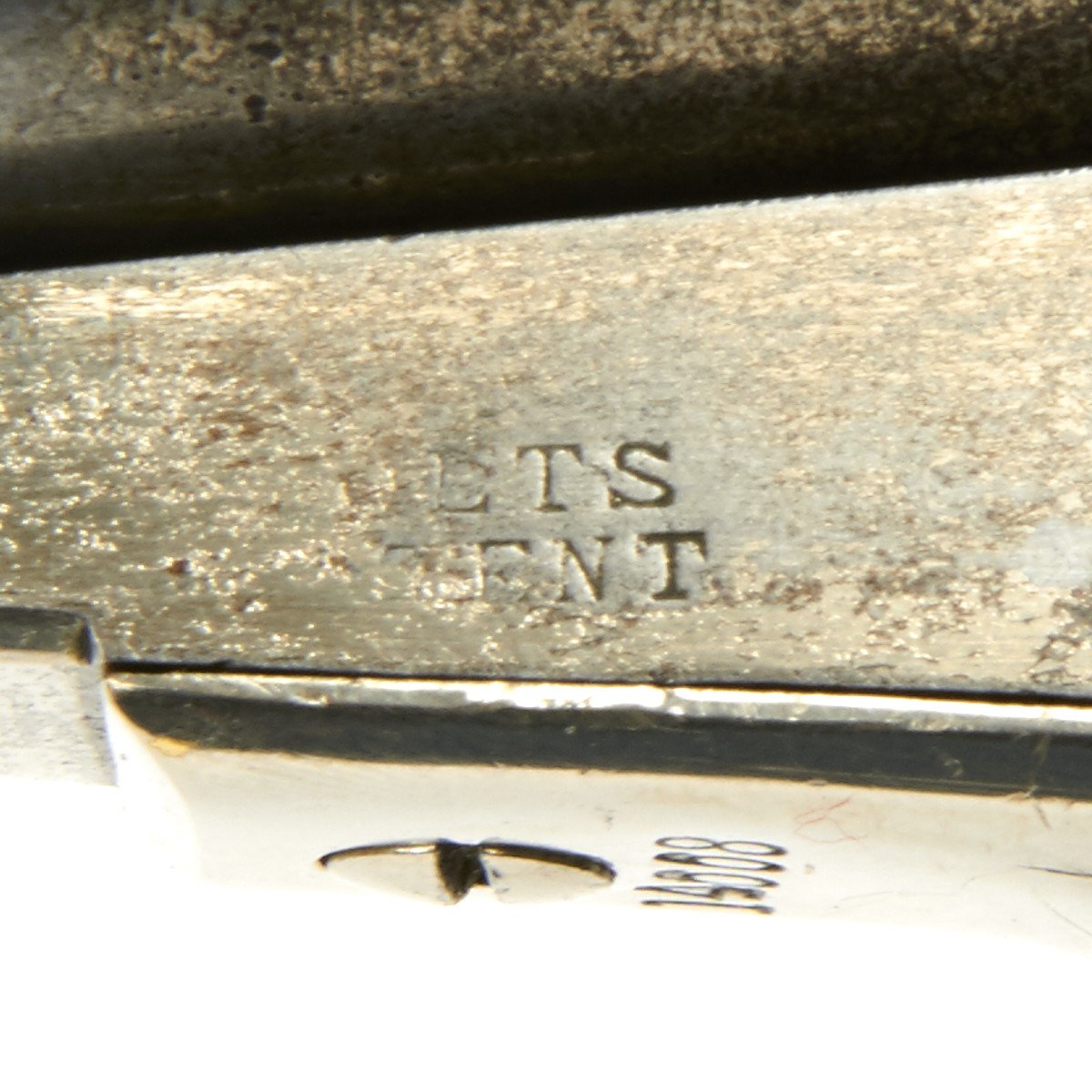 Cylinder nipples all intact and four of the cylinder pins are still visible. Mechanics very strong and crisp. Sidearm has strong half cock and full cock positions with tight indexing. Equipped with a four-screw frame made to fit a shoulder stock and has the recoil shield cutouts on the frame and has the small notch in the iron buttplate. Screws are original and not buggered up. The revolver features a clear COLTS PATENT stamp on the left side of the frame. Exterior surface shows scattered light wear marks, all proper and normal for this sidearm’s age and use. Overall, this Colt exhibits a very pleasing bright finish.