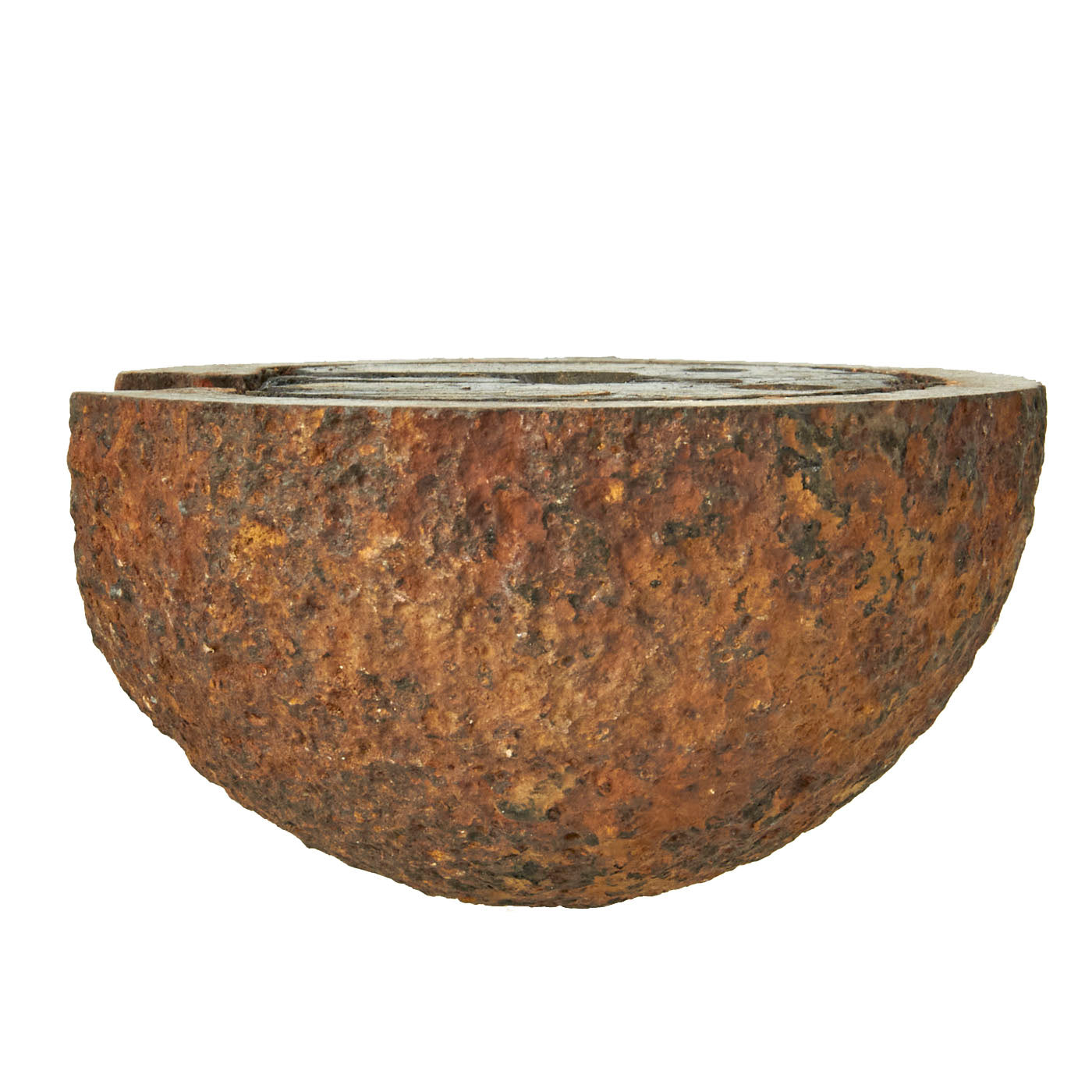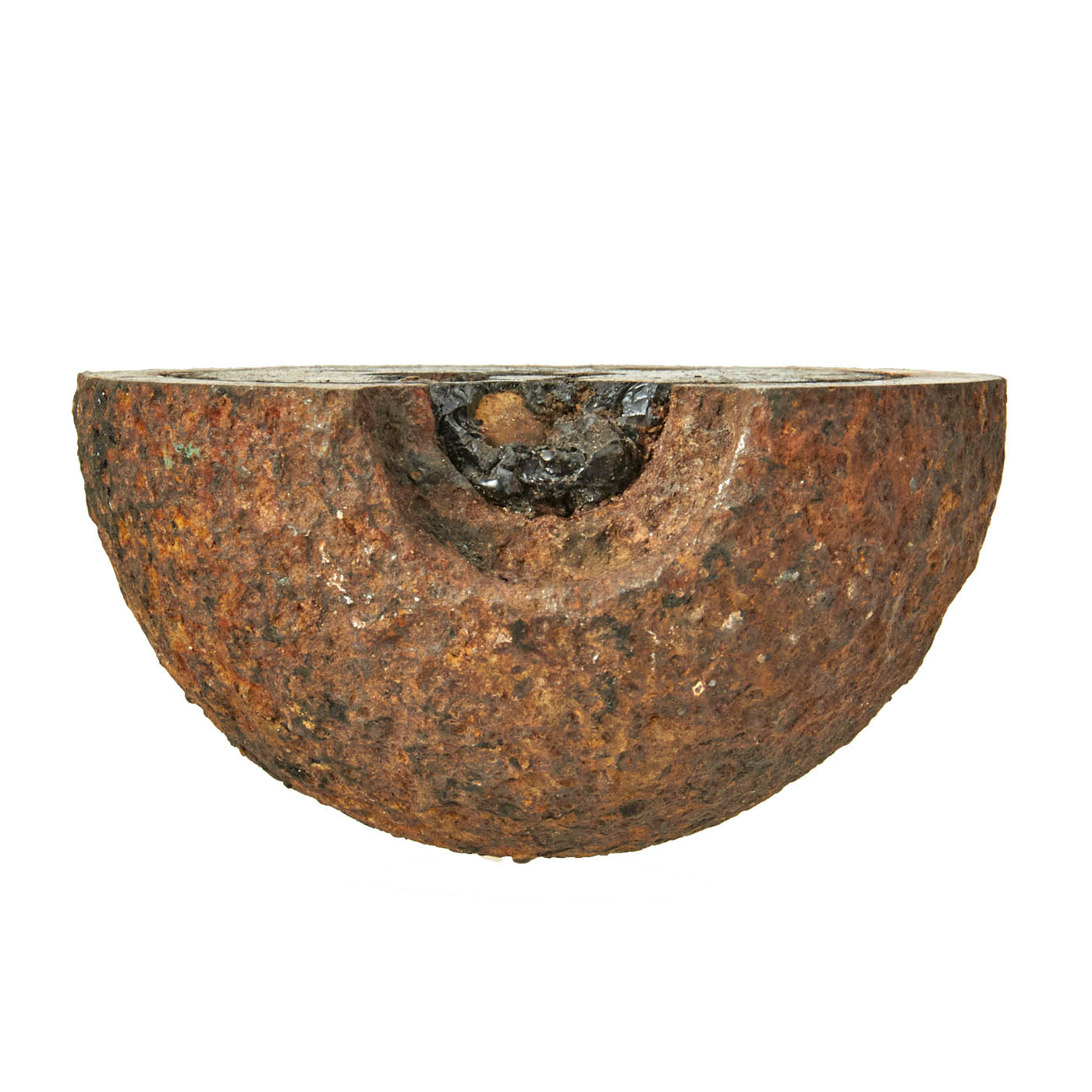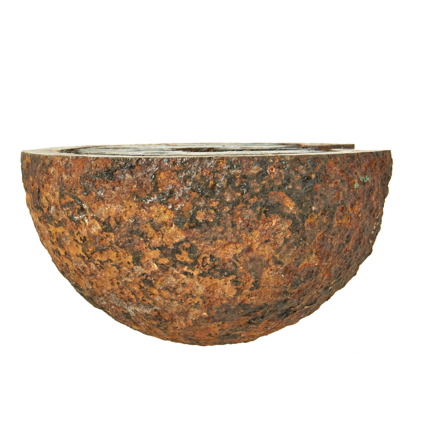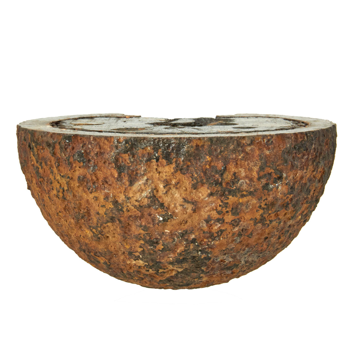 Original Item: Only One Available. Very well done cutaway display made from a Confederate cannonball. This is a 4.52” Shell used with the twelve pound Napoleon Artillery Piece. The shell, originally fitted with a fuse which is not present, and still filled with the original shot!