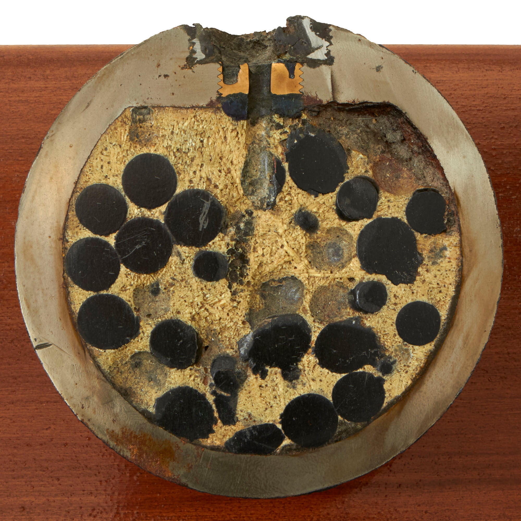 The cannonball is somewhat rusted, with the usual scaling and pitting scars seen on excavated ordnance. This has resulted in it being slightly larger than spec, as the rust scaling expands in size compared to the cast iron it is made of. It's definitely a nice looking example, with a great patina!
