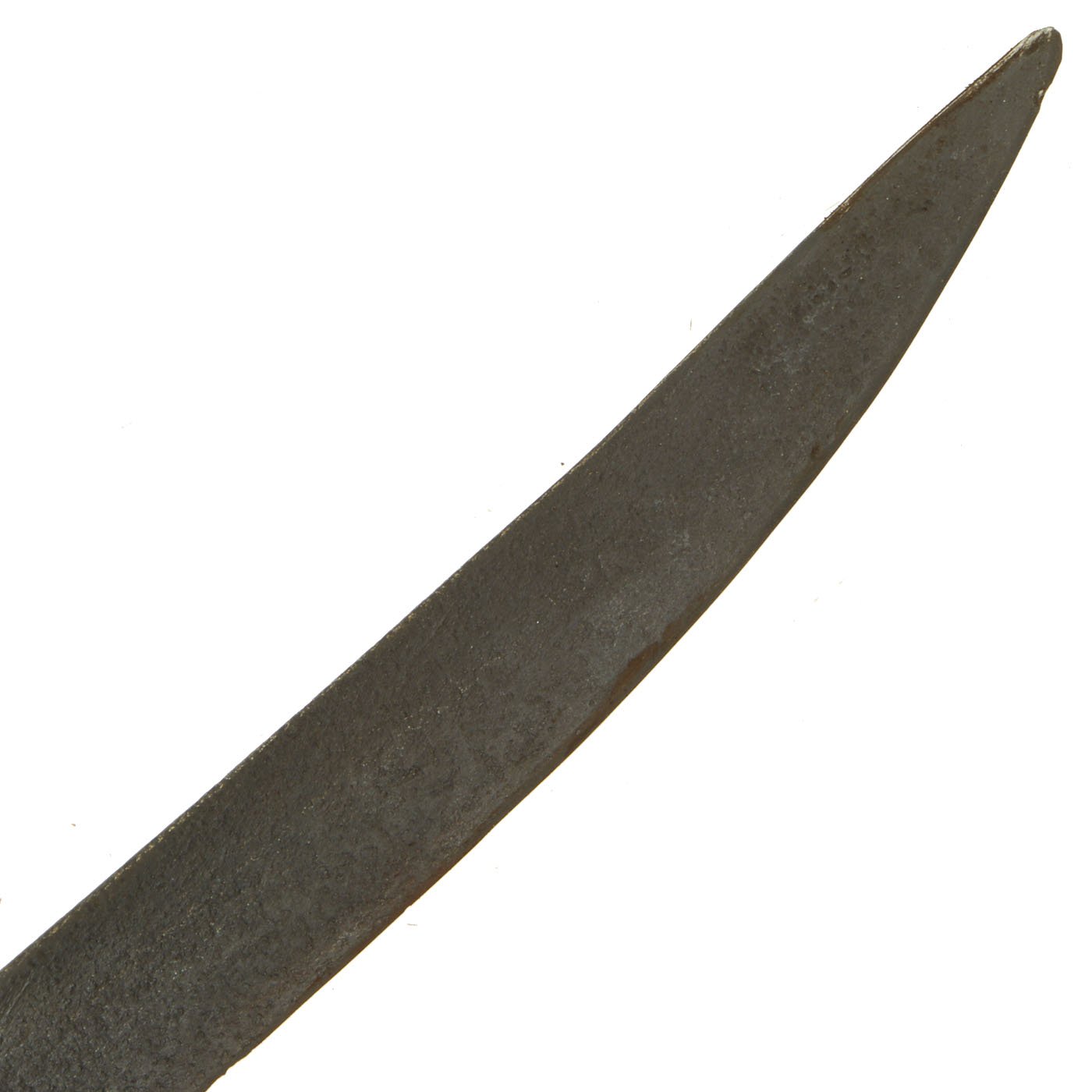 Blade Measures 34" , with an overall sword length of 40”. The blade is overall brown/gray with pitting throughout. The blade does exhibit some dings to the edge.