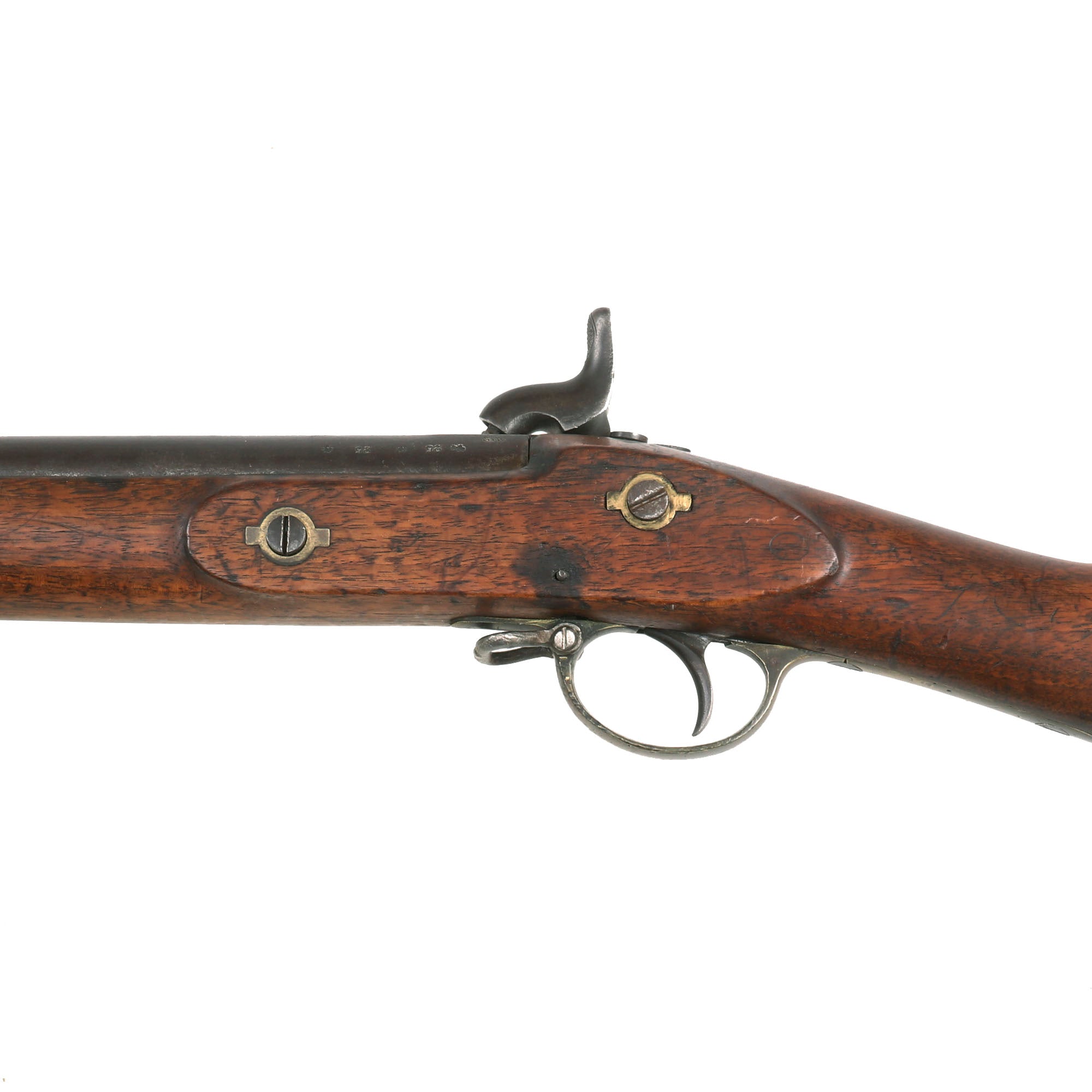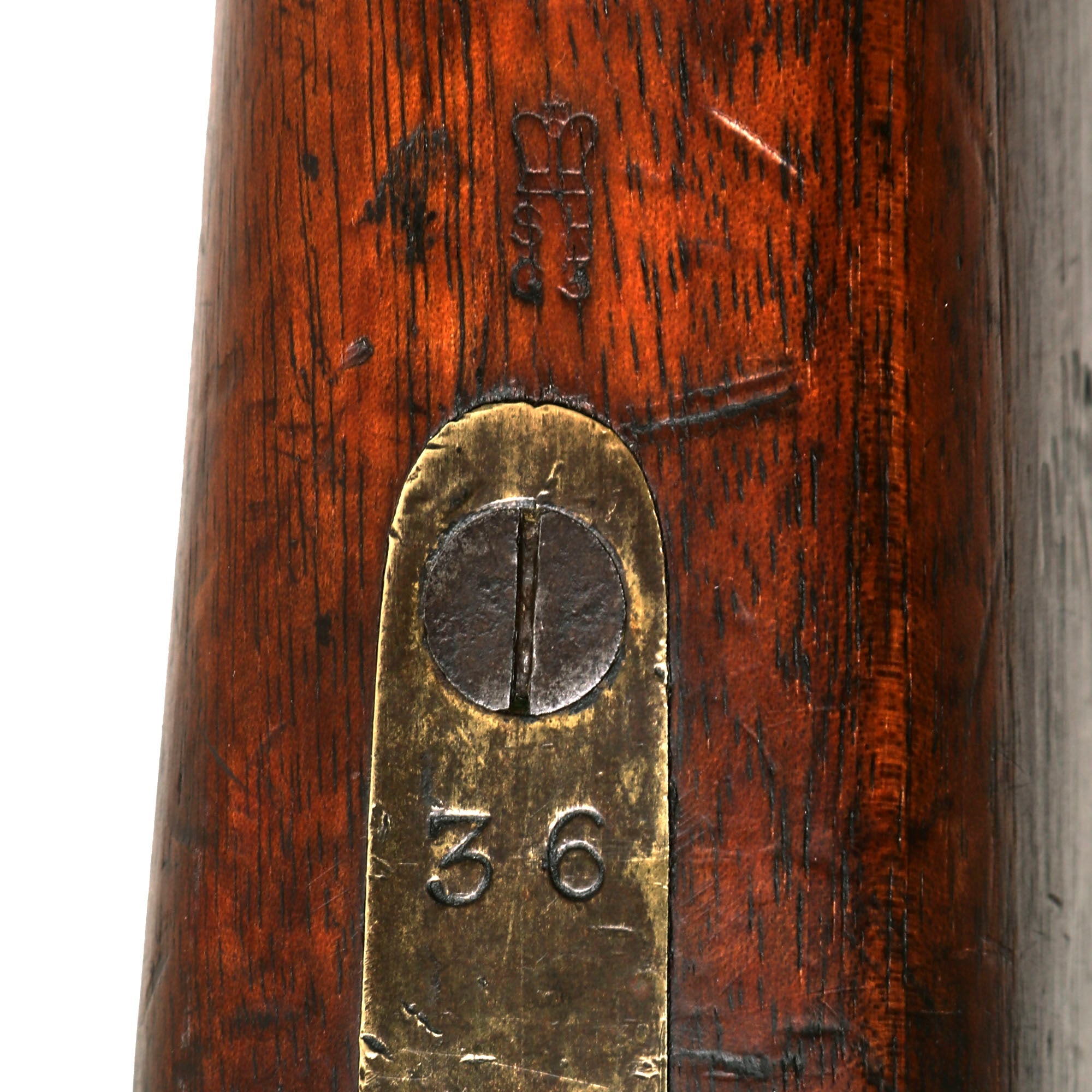We found no specific State markings on this rifle, however after 1863 conditions were such that little time was available for such niceties upon importation. Given the how faint the markings on the wood are, it's very likely that the markings may also have been worn away. We speculate it probably arrived in 1862 or 1863, having been produced in 1862.