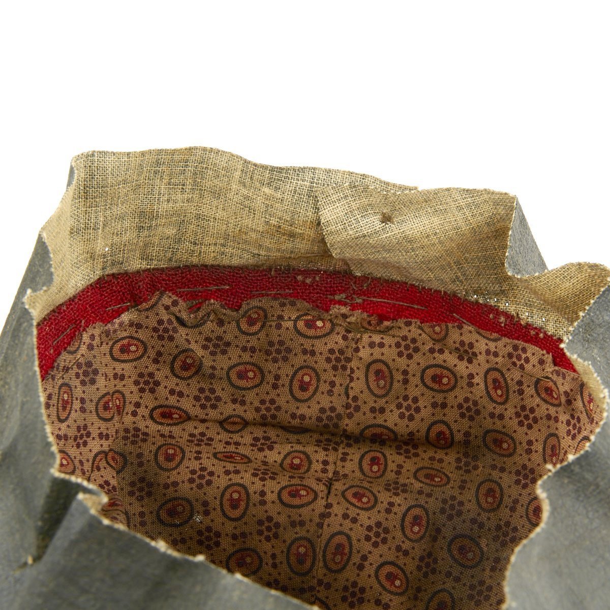 The lining is cotton shirting in a red and orange pattern the same as a civilian shirt, as local mills also made cotton shirting. The sweatband is made from black painted cotton/canvas is 1.5 inches wide.