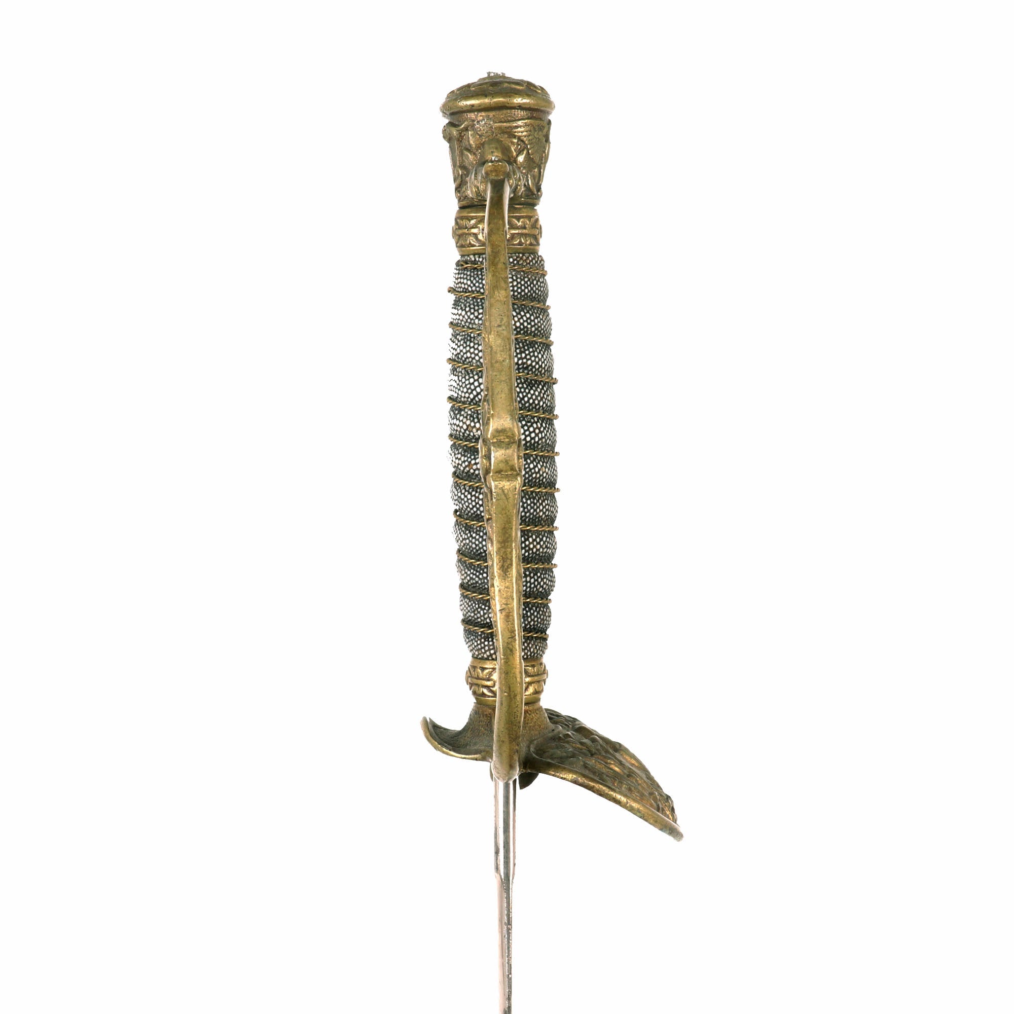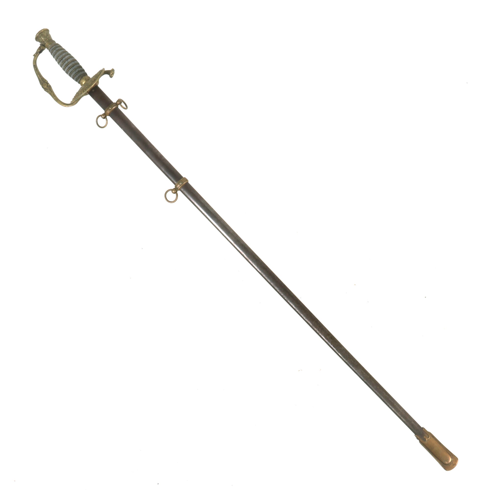 This officer's sword was adopted on August 28, 1860 acting upon the officer who would rarely if ever be called upon to wield a sword in battle. It was not mandatory until after the close of the Civil War, however in 1872, this sword became mandatory for all officers except medical staff, paymasters, mounted officers of infantry, cavalry & light artillery.
