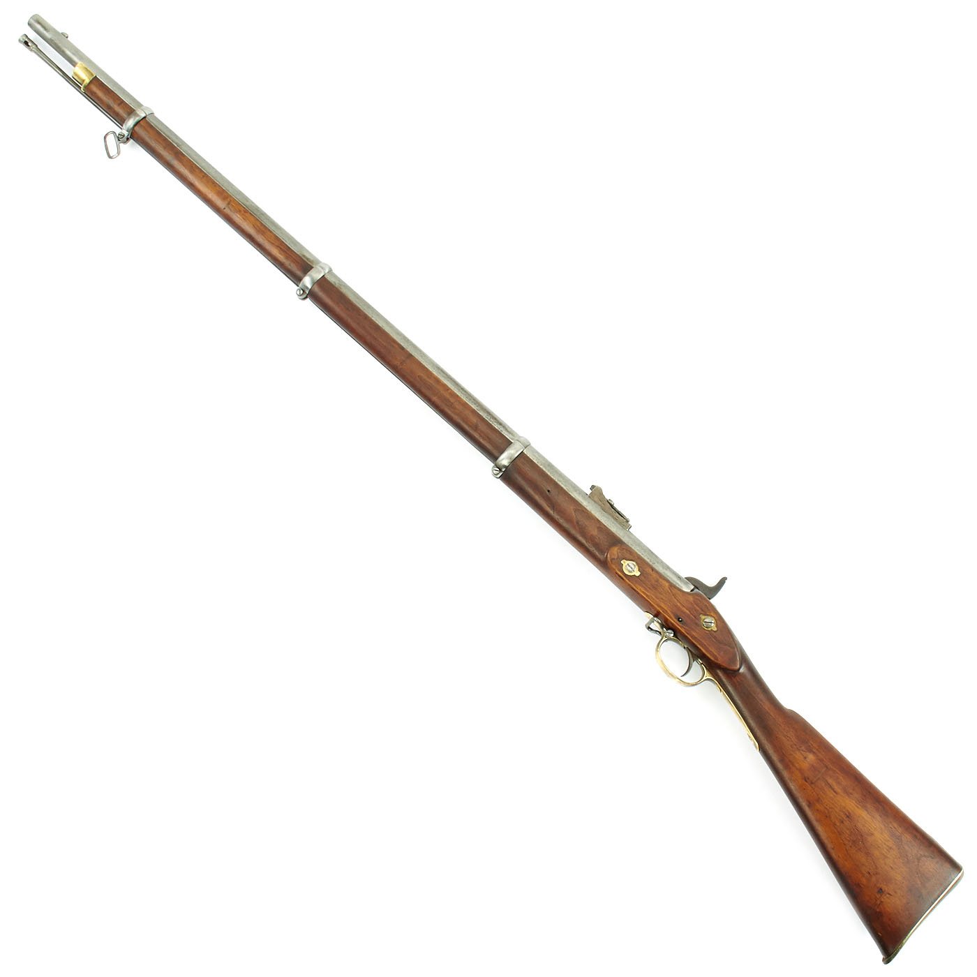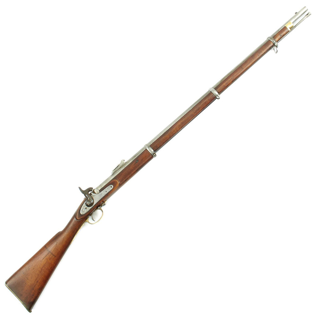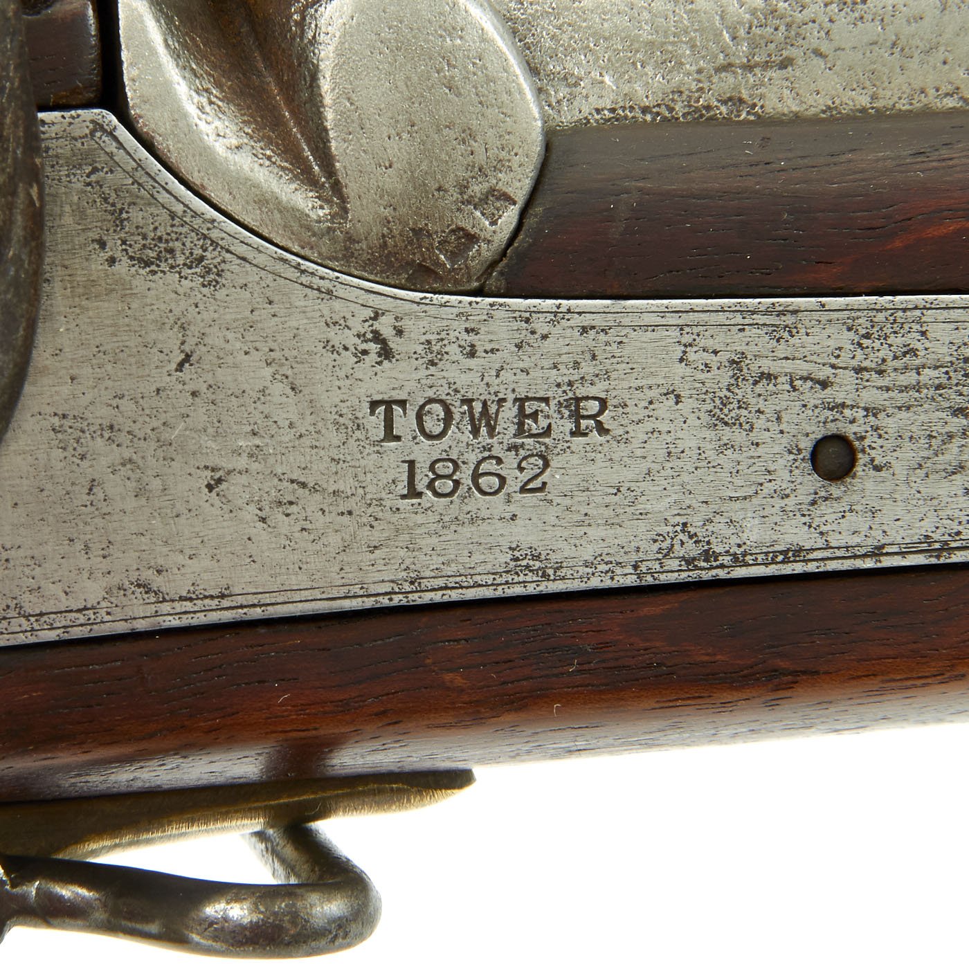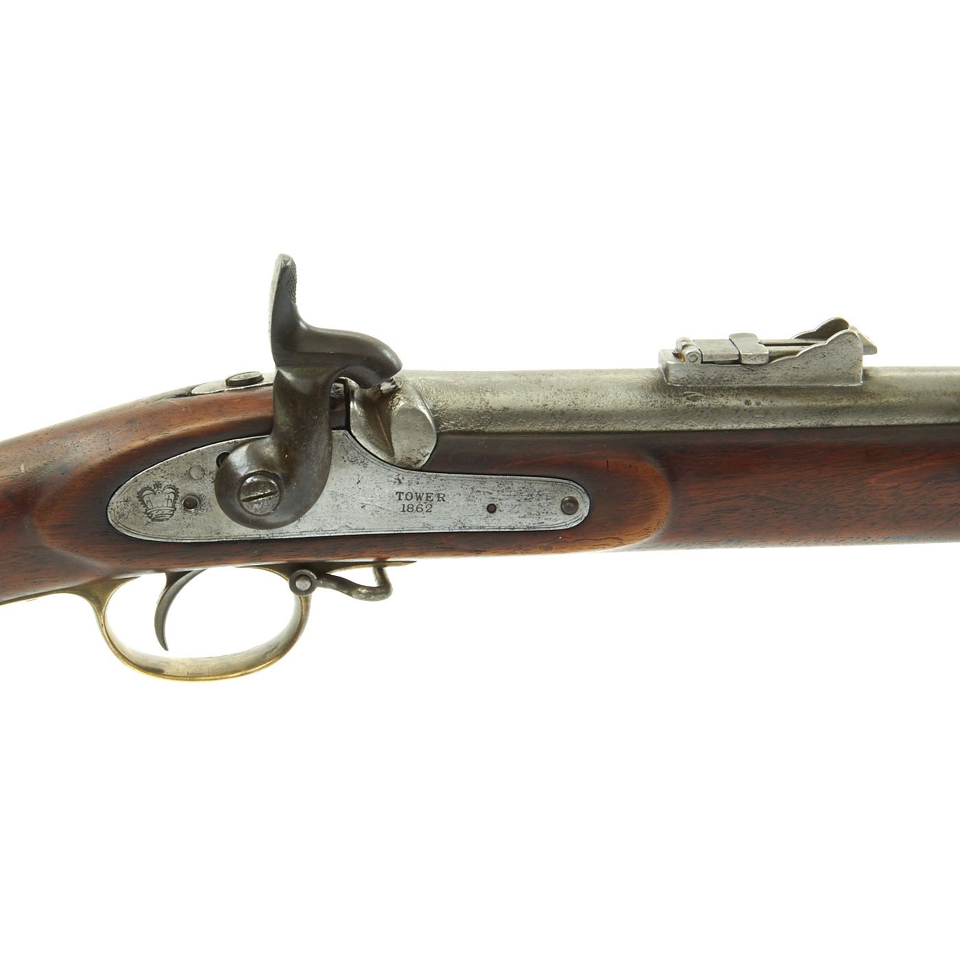 Original Item: Only One Available. This is another rifle from the old U.S. Collection that has been in very long term storage and recently discovered, now fully cleaned and restored. Offered here is a very nice example of the 3rd Model Pattern 1853 Enfield Rifle Musket as produced in Birmingham, England with brass butt plate, trigger guard and nose cap. The three steel barrel bands are held on with screw pressure, as typical of the 3rd model. The lock is marked TOWER / 1862 below the cap bolster, and it is marked with a QUEEN'S CROWN to the rear of the hammer. However, there is no V.R. under the crown. This indicates that this weapon was not intended for a British Military contract but was aimed at the Overseas market, most specifically the United States, who were embroiled in its most terrible Civil War.