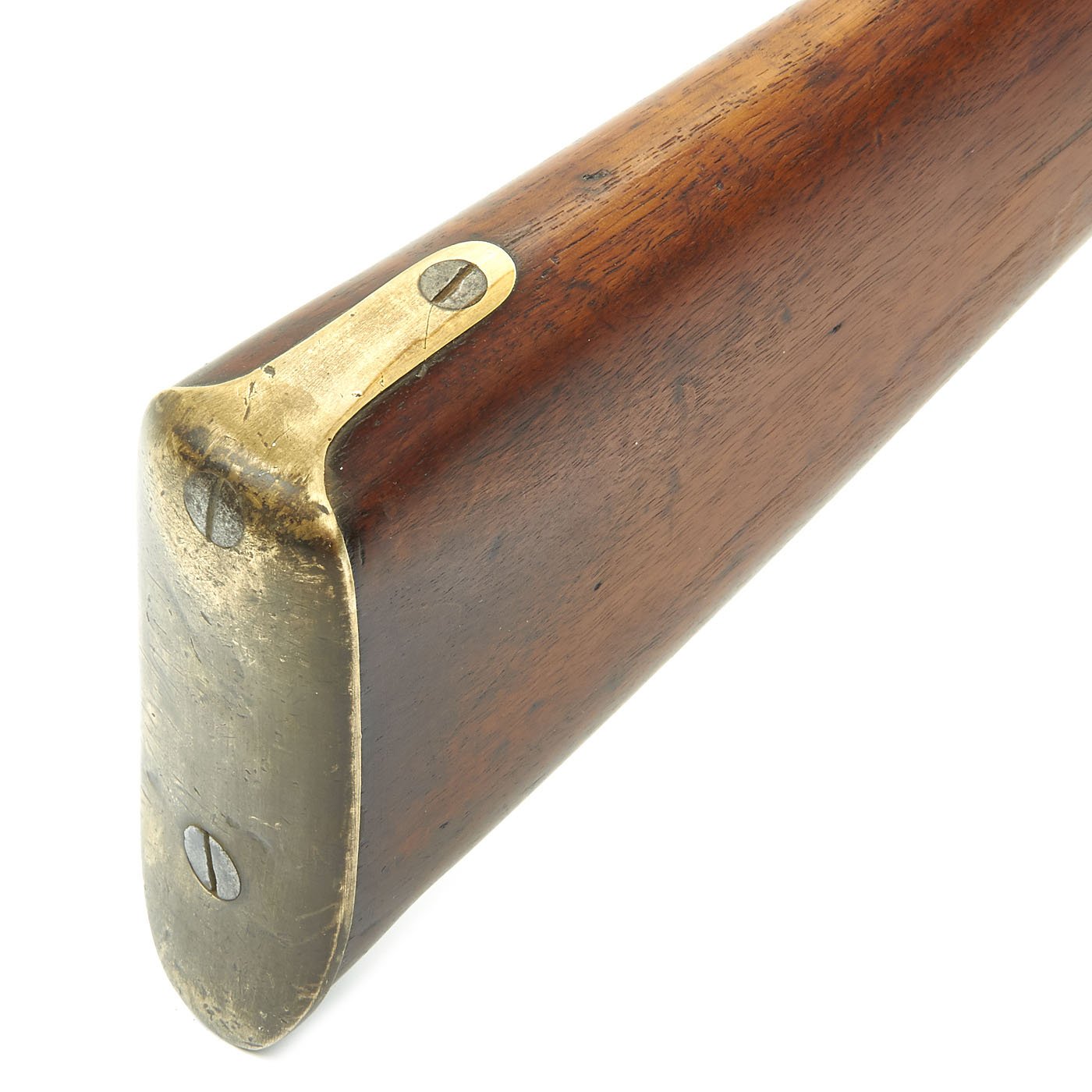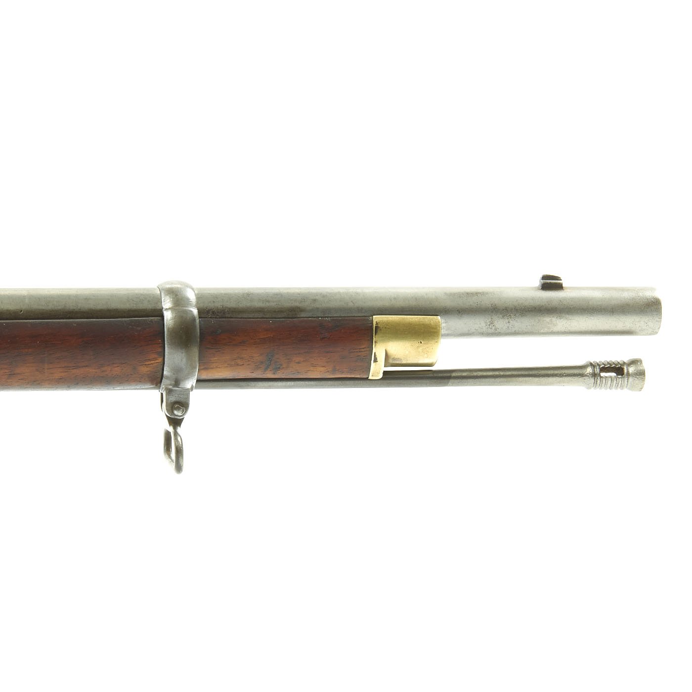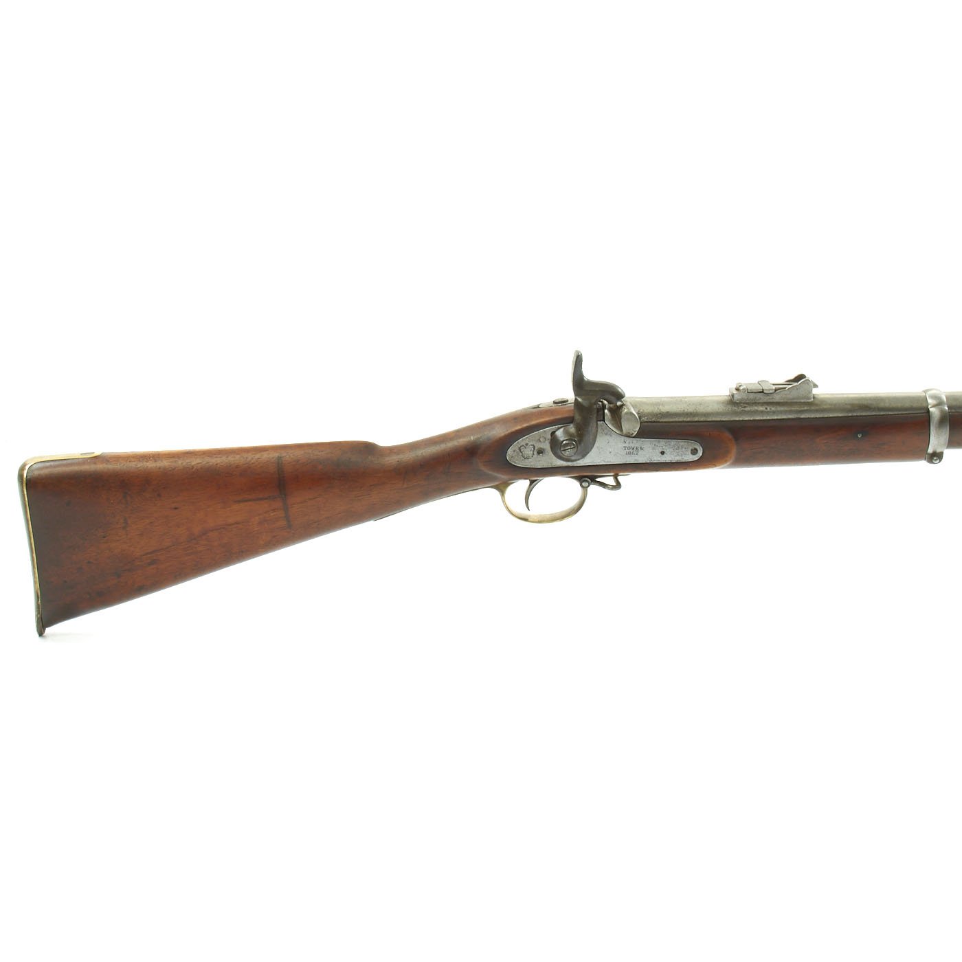 Original Item: Only One Available. This is another rifle from the old U.S. Collection that has been in very long term storage and recently discovered, now fully cleaned and restored. Offered here is a very nice example of the 3rd Model Pattern 1853 Enfield Rifle Musket as produced in Birmingham, England with brass butt plate, trigger guard and nose cap. The three steel barrel bands are held on with screw pressure, as typical of the 3rd model. The lock is marked TOWER / 1862 below the cap bolster, and it is marked with a QUEEN'S CROWN to the rear of the hammer. However, there is no V.R. under the crown. This indicates that this weapon was not intended for a British Military contract but was aimed at the Overseas market, most specifically the United States, who were embroiled in its most terrible Civil War.