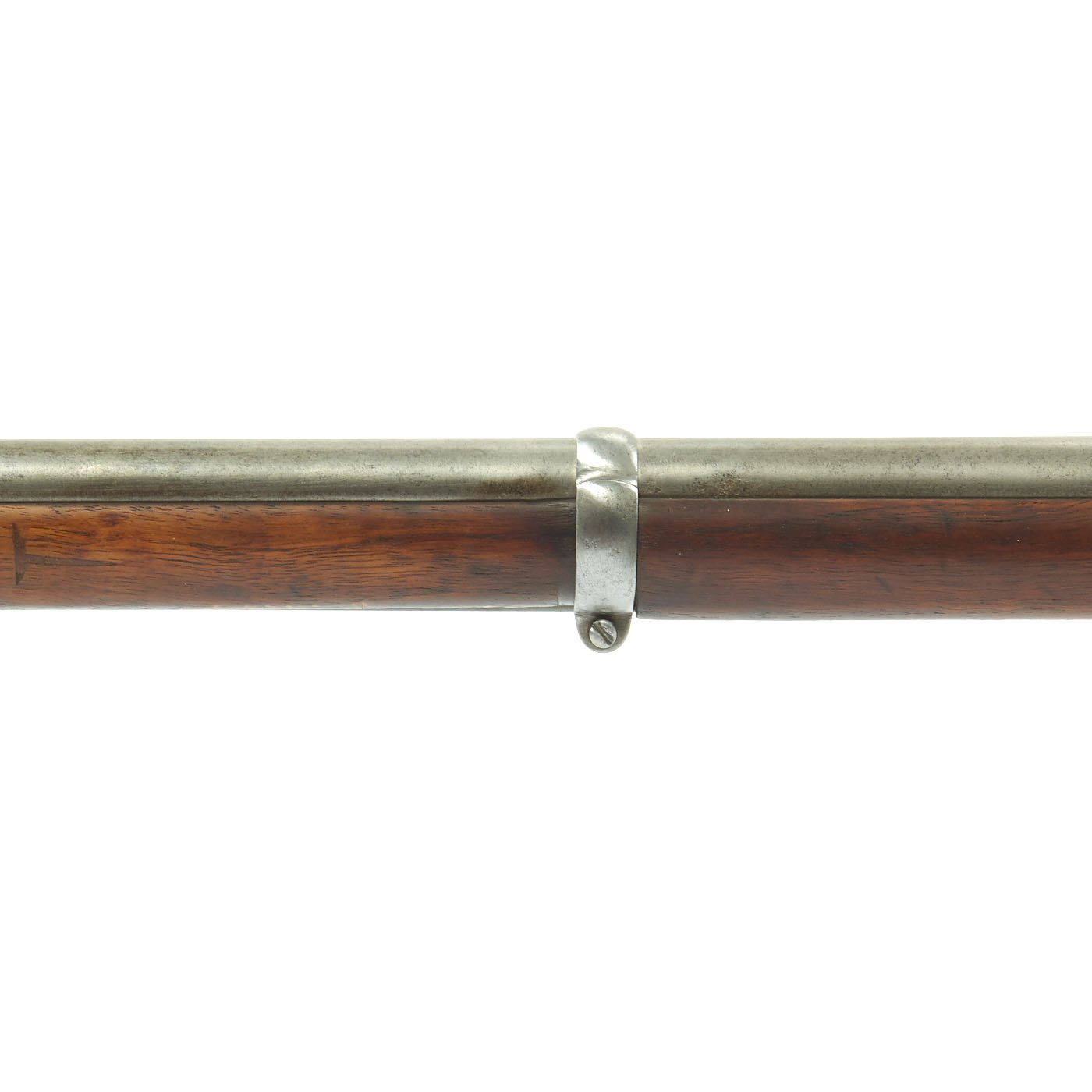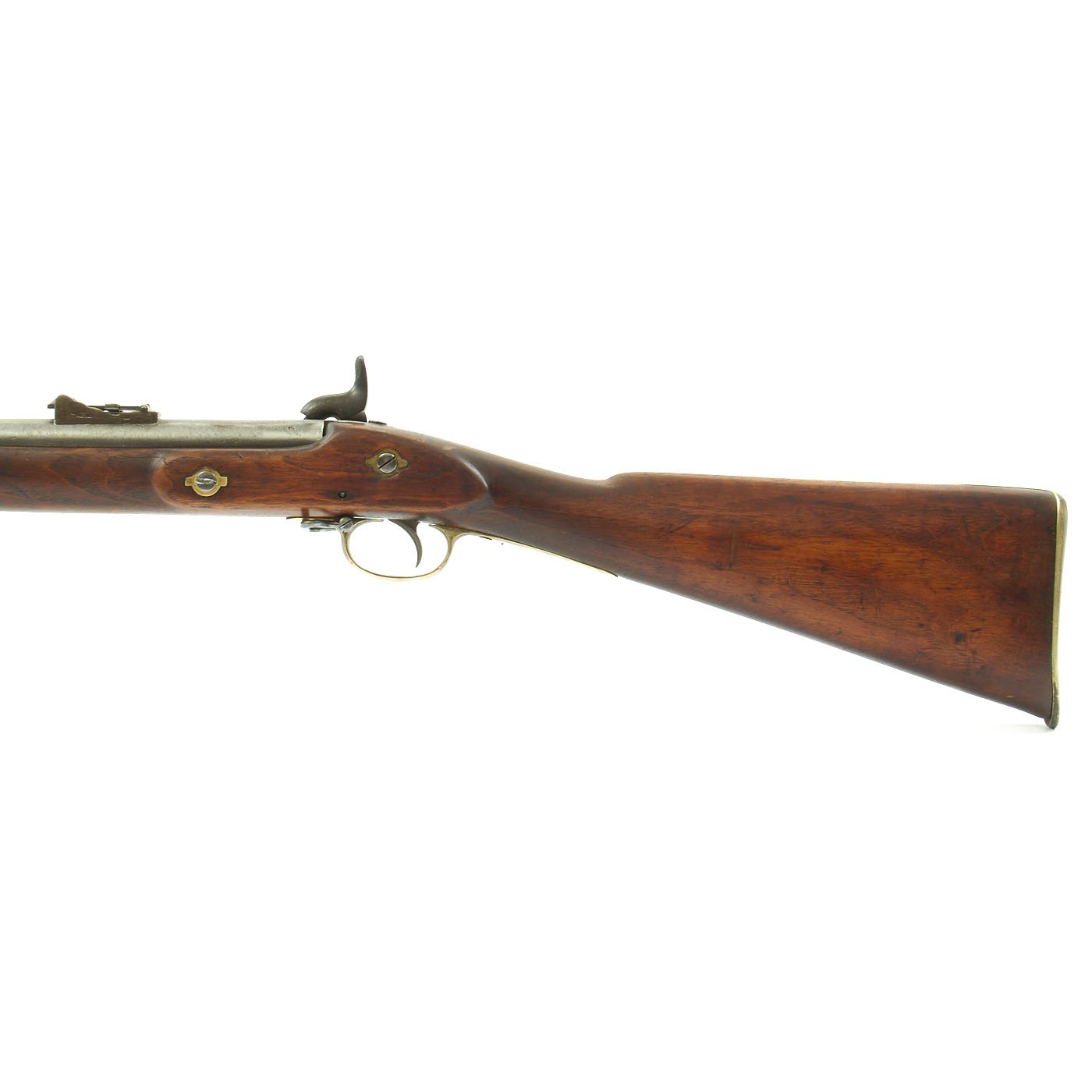 A similar Short Rifle edition of this same weapon, dated 1861, appears on the Cover of THE CONFEDERATE ENFIELD by Captain Steven W. Knott, U.S.N. (Ret). with a write up on pages 44 and 45. In addition there is a photograph of the proof marks of this known Confederate Soldier's Rifle on the Title page of the book which are completely identical to those on this weapon. This excellent book states that the Confederate Buying Agents, Josiah Gorgas and Caleb Huse purchased over 350,000 European Rifles between 1861 and 1865, over 250,000 of these were the Percussion Enfield Rifled Muskets and 100,000 were Austrian Percussion arms.