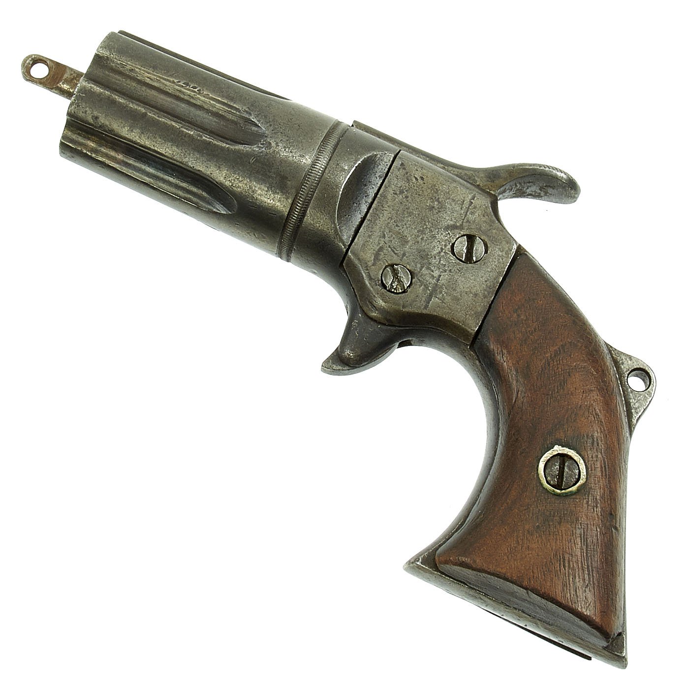 Original Item: Only One Available. Made by NORTH & COUCH of Middleton in Connecticut and patented on June 29th 1859. These are very unusual and now quite rare. Intended for either personal defense or to be used as a "TRAP GUN" it is constructed utilizing SIX clustered .31 Caliber barrels that discharge all at once in one volley. The weapon resembling a revolver has a percussion hammer and a sheathed trigger that can be discharged by hand.