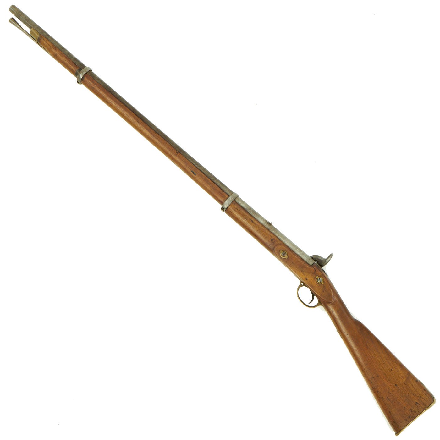Original Item: Only One Available. Offered here is a nice example of the 4th Model Pattern 1853 Enfield Rifle Musket, as produced in England with brass butt plate, trigger guard and nose cap. The two steel barrel bands are held on with screw pressure, and are the "Baddeley" type with recessed screws, typical of the 4th model. These were designed to prevent the exposed screws on the bands from snagging on the uniform and other rigging worn by the soldiers.