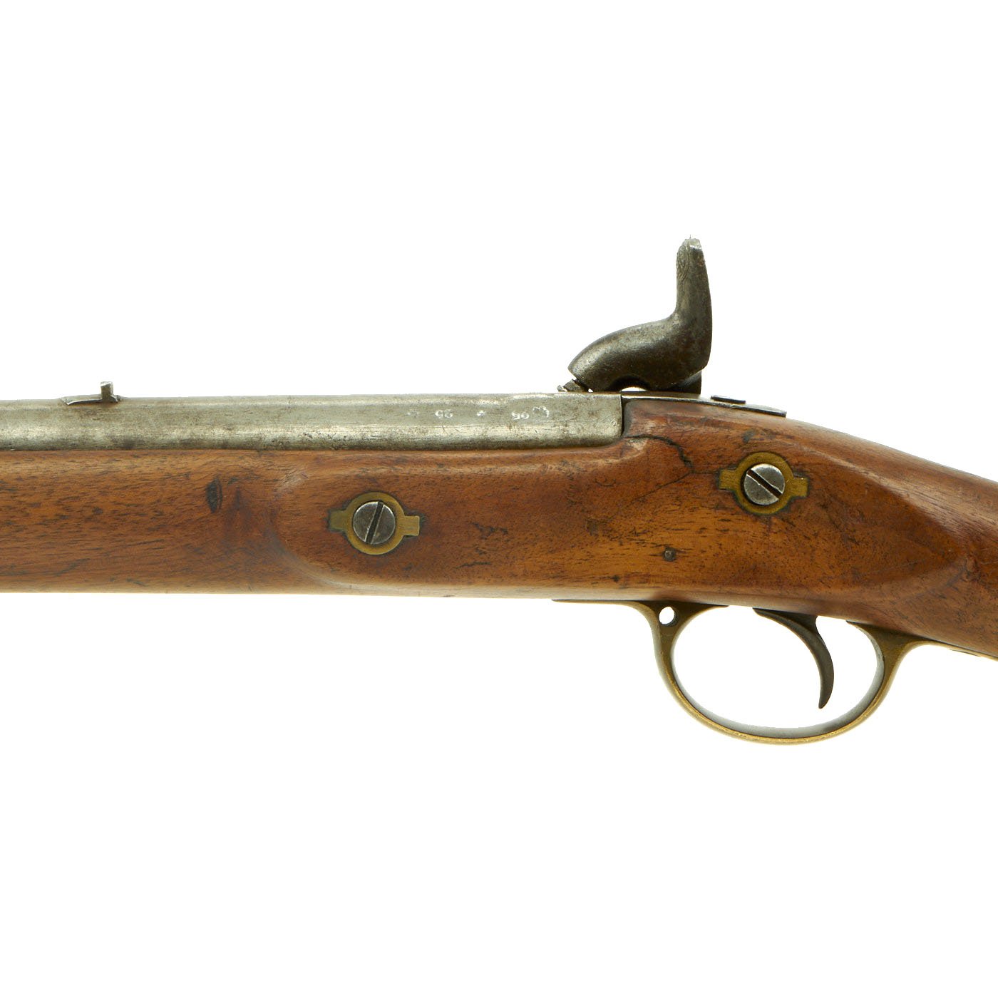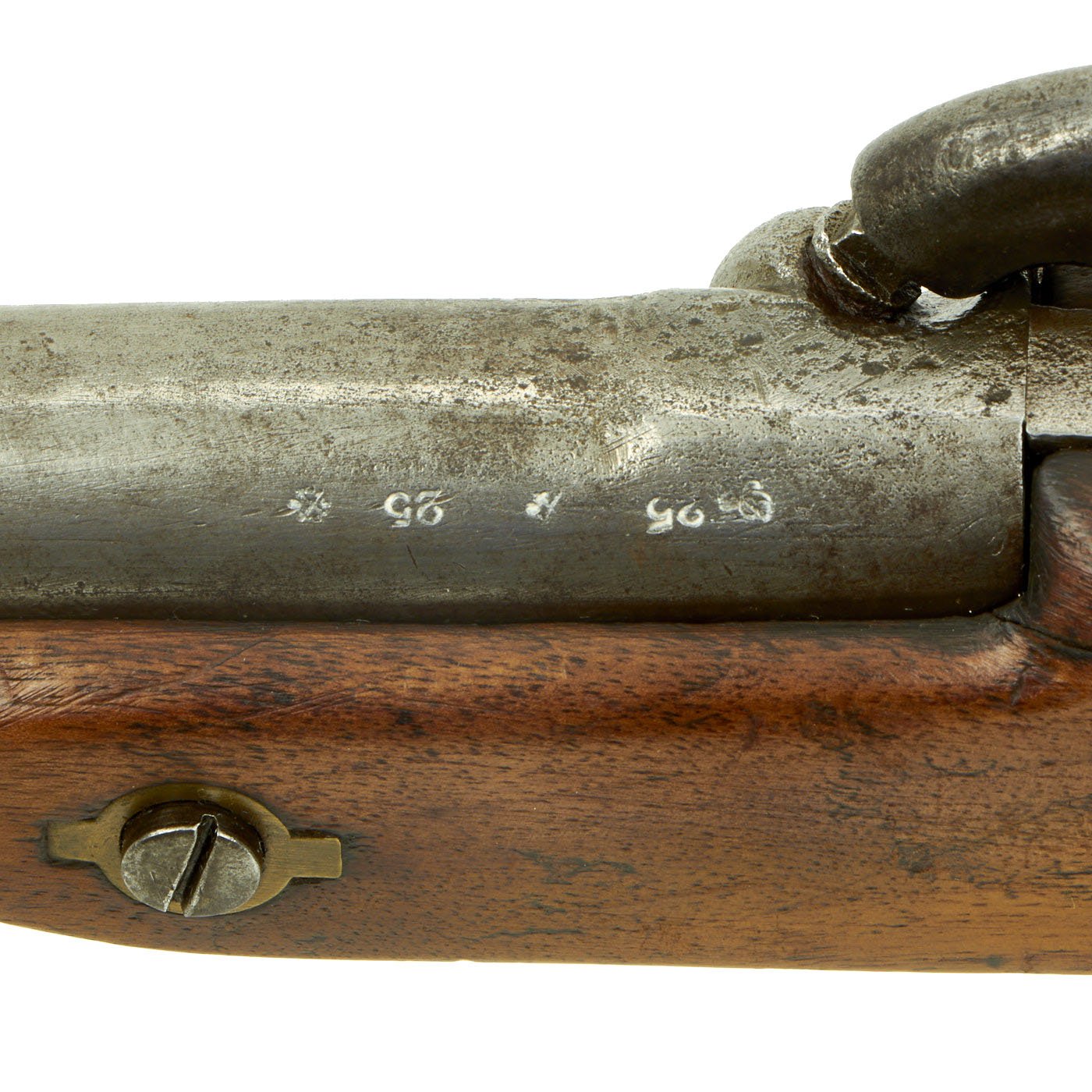A similar Short Rifle edition of this same weapon, dated 1861, appears on the Cover of THE CONFEDERATE ENFIELD by Captain Steven W. Knott, U.S.N. (Ret). with a write up on pages 44 and 45. In addition there is a photograph of the proof marks of this known Confederate Soldier's Rifle on the Title page of the book which are completely identical to those on this weapon. This excellent book states that the Confederate Buying Agents, Josiah Gorgas and Caleb Huse purchased over 350,000 European Rifles between 1861 and 1865, over 250,000 of these were the Percussion Enfield Rifled Muskets and 100,000 were Austrian Percussion arms.