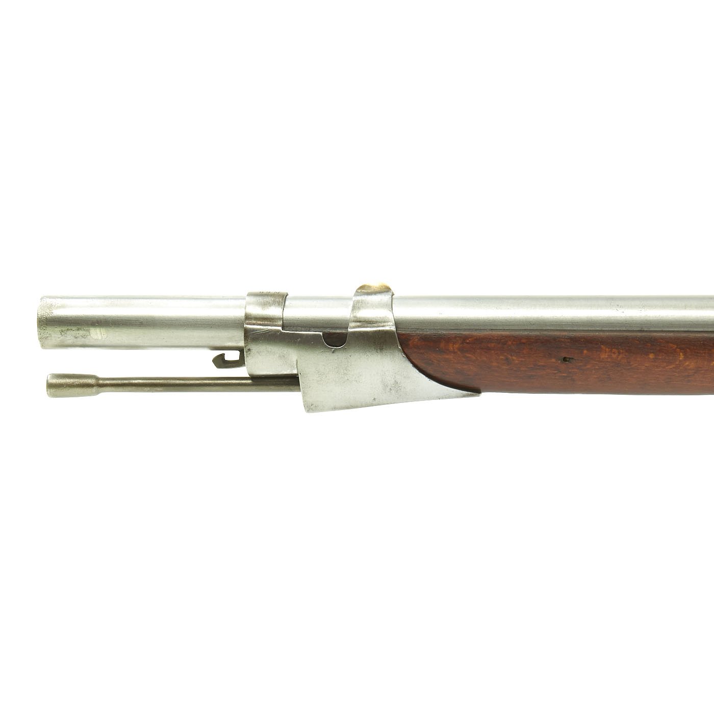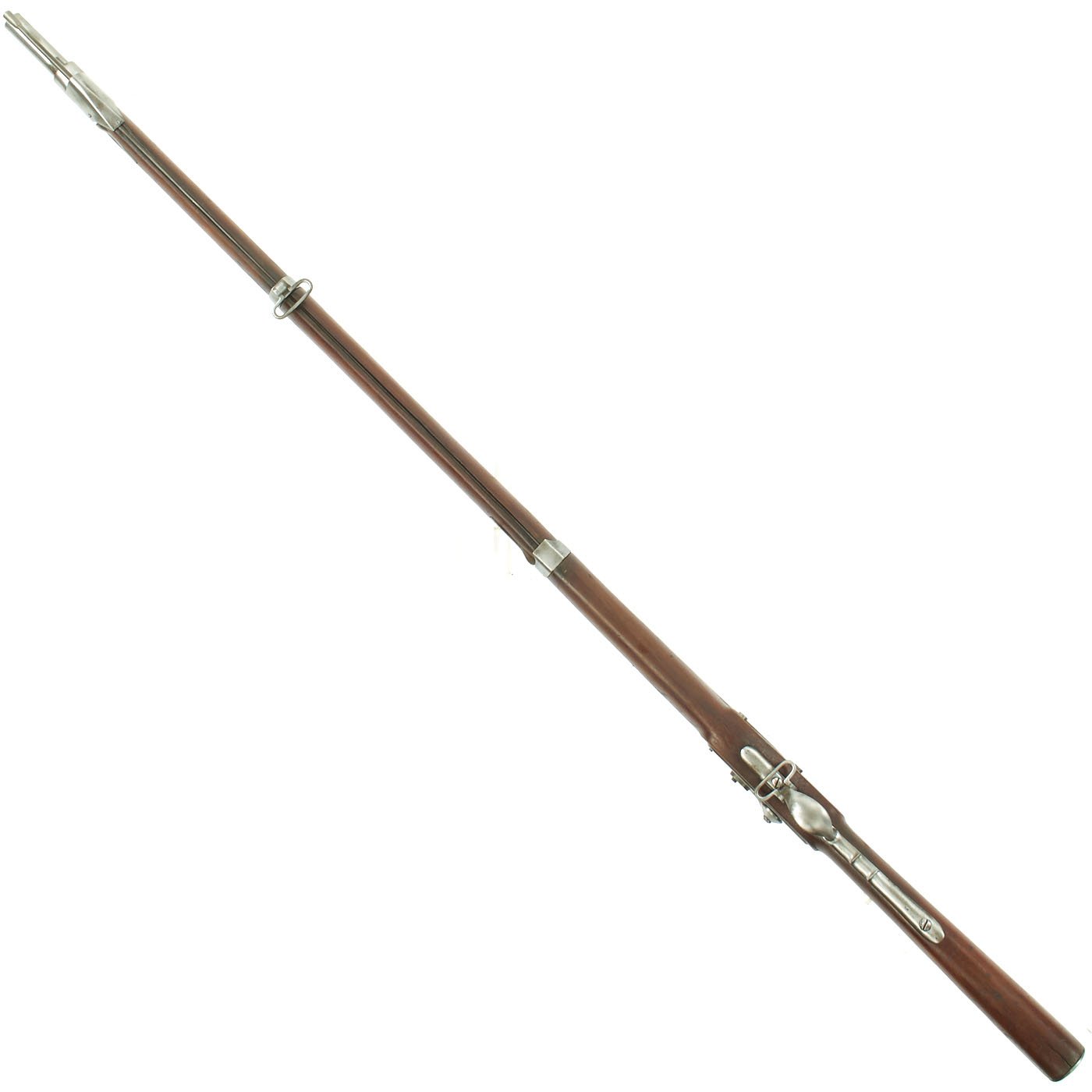 Original Item: Only One Available. This is an AUSTRIAN AUGUSTIN MODEL 1842 Percussion Musket, originally issued in tube lock, but converted to percussion in the 1850s. It was most likely subsequently sold to the United States and probably imported just prior to the U.S. Civil War where many of these weapons saw service mostly on the Confederate side. The musket complete with original period double ended ramrod.