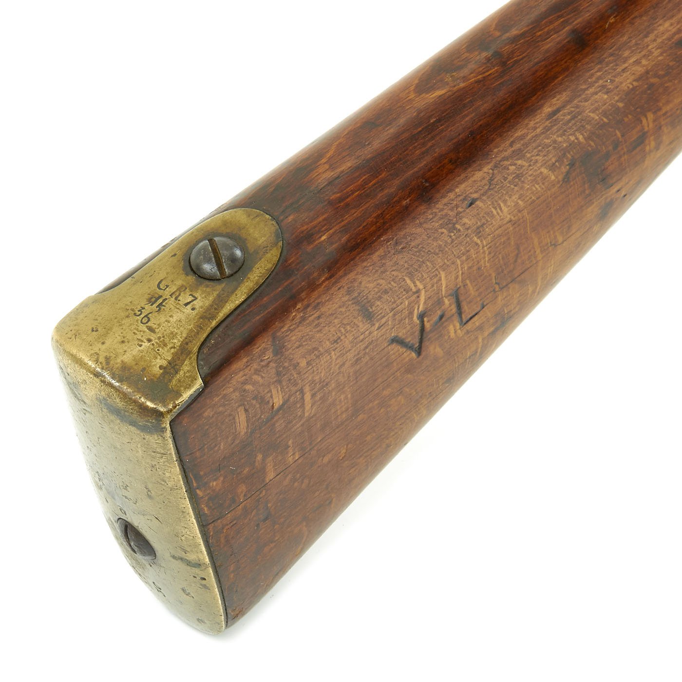 It also features brass mounts, including a "Jaeger" style trigger guard, with a nice cheek rest on the left side of the butt stock. The rifle is also Regimentally marked on the Butt Plate G.R.7. / 11 / 36., making this a great chance for further research. It retains its ramrod and despite being in storage for over 100 years, this is in rather good condition having only been wiped over. It is however missing both sling swivels. Offered as is it appears fully sound and functional. Lock holds and half cock and fires at full.
