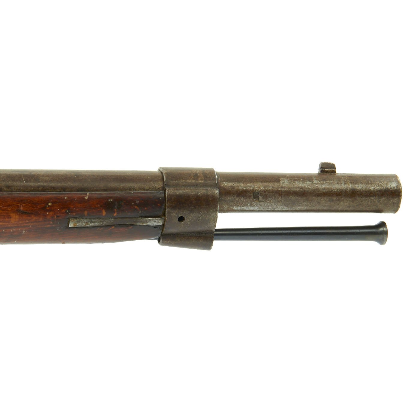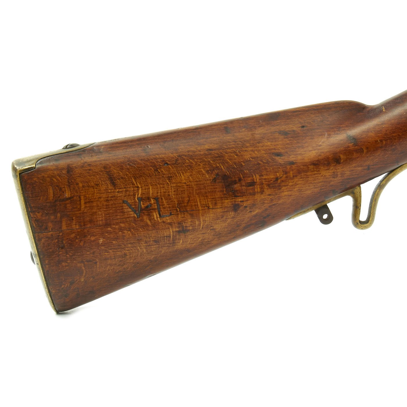 Original item: Only One Available. The rifle is a Muster 1849 Austro-Hungarian Army (k.k. Army) Kammerbuchse (chamber rifle), original produced using the somewhat bizarre System Augustin "Tube Lock". This utilized a semi-enclosed flash pan and "tube" for a more reliable ignition system. It was however short lived, and in 1854 the Lorenz rifle was developed using the much less complex percussion lock system. After this large quantities of the Kammerbuchse rifles were converted to caplock in Liège, Belgium, prior to shipment to America (probably for Federal use) during the Civil War.