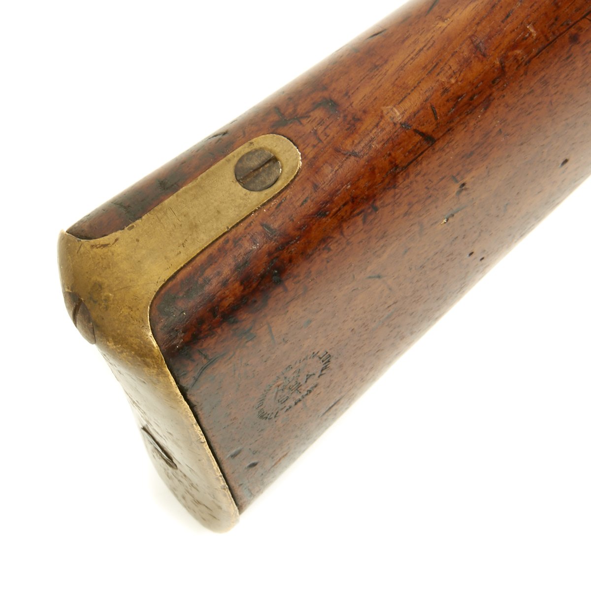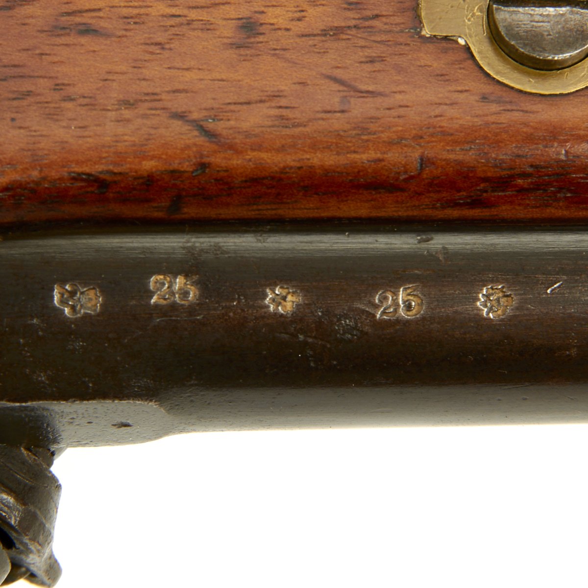 An identical Short Rifle edition of this same weapon, dated 1862, appears on the Cover of THE CONFEDERATE ENFIELD by Captain Steven W. Knott, U.S.N. (Ret). with a writeup on pages 44 and 45. In addition there is a photograph of the proof marks of this known Confederate Soldier's Rifle on the Title page of the book which are completely identical to those on this weapon. This excellent book states that the Confederate Buying Agents, Josiah Gorgas and Caleb Huse purchased over 350,000 European Rifles between 1861 and 1865, over 250,000 of these were the Percussion Enfield Rifled Muskets and 100,000 were Austrian Percussion arms.