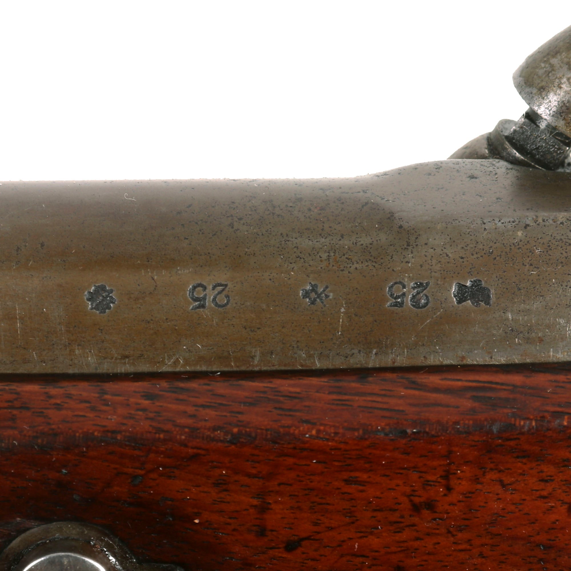 A similar Short Rifle edition of this same weapon, dated 1861, appears on the Cover of THE CONFEDERATE ENFIELD by Captain Steven W. Knott, U.S.N. (Ret). with a write up on pages 44 and 45. In addition there is a photograph of the proof marks of this known Confederate Soldier's Rifle on the Title page of the book which are completely identical to those on this weapon. This excellent book states that the Confederate Buying Agents, Josiah Gorgas and Caleb Huse purchased over 350,000 European Rifles between 1861 and 1865, over 250,000 of these were the Percussion Enfield Rifled Muskets and 100,000 were Austrian Percussion arms.