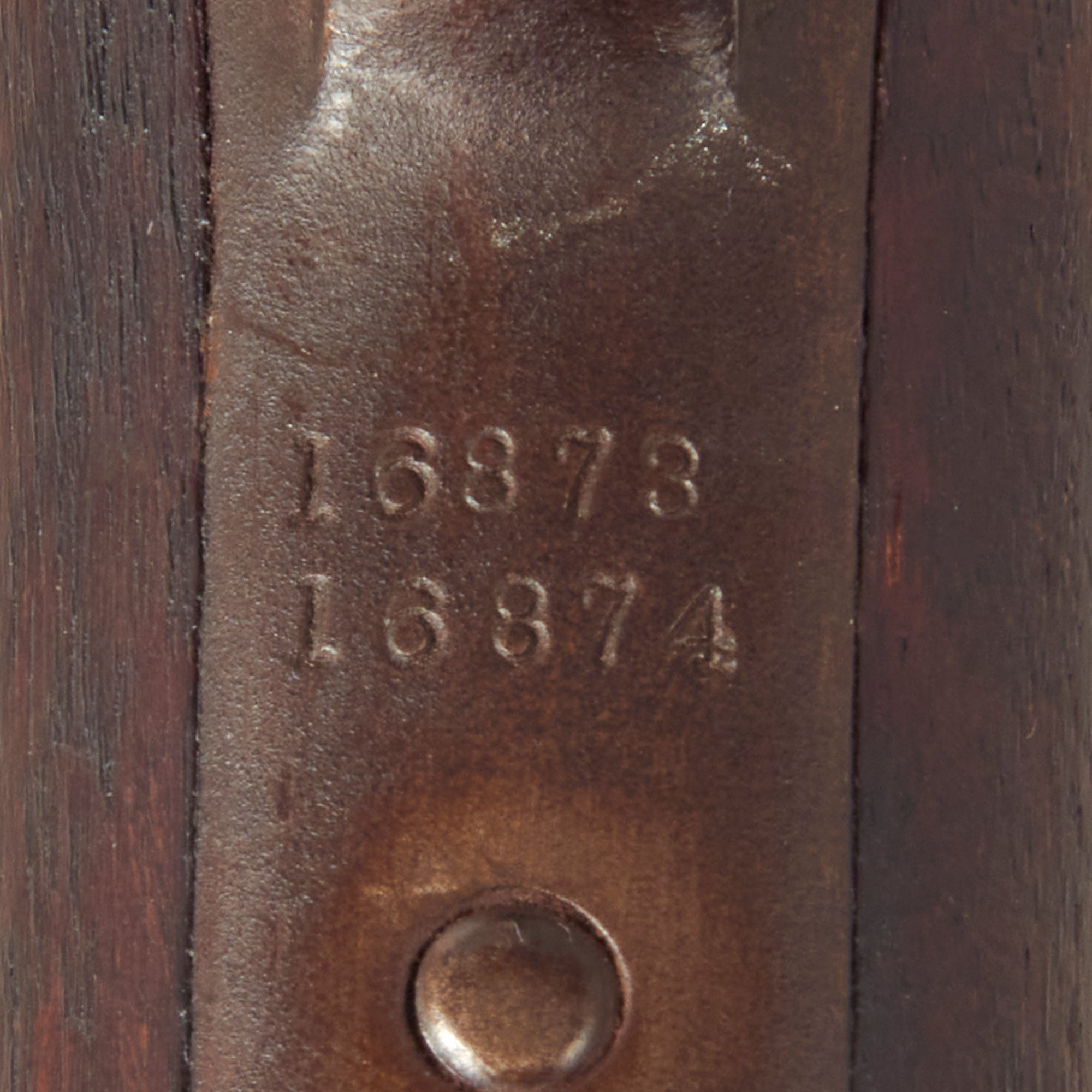 Even better, the is that a fantastic shoulder stock is included and is marked with serial numbers 16873 and 16874 on the butt plate and attaching iron, indicating it was fit to work with this revolver, as well as the next serial number revolver. Originally shoulder stocks were shipped from the factory with right / left pair of revolvers, which is why shoulder stocks should have two serial numbers marked on it. However, this shoulder stock is not 100% authentic. It has replacement wood and is paired with what we believe to be original metal hardware (with the exception of the sling swivel, which is a replacement). This was not an uncommon practice if the wood of the stock split or was damaged. Another expert we know suggested it may even all be a reproduction from the 1960s. Regardless, its a stunning shoulder stock which perfectly fits the pistol, has correct font stamped serial numbers and by itself is worth at $3000 a minimum.