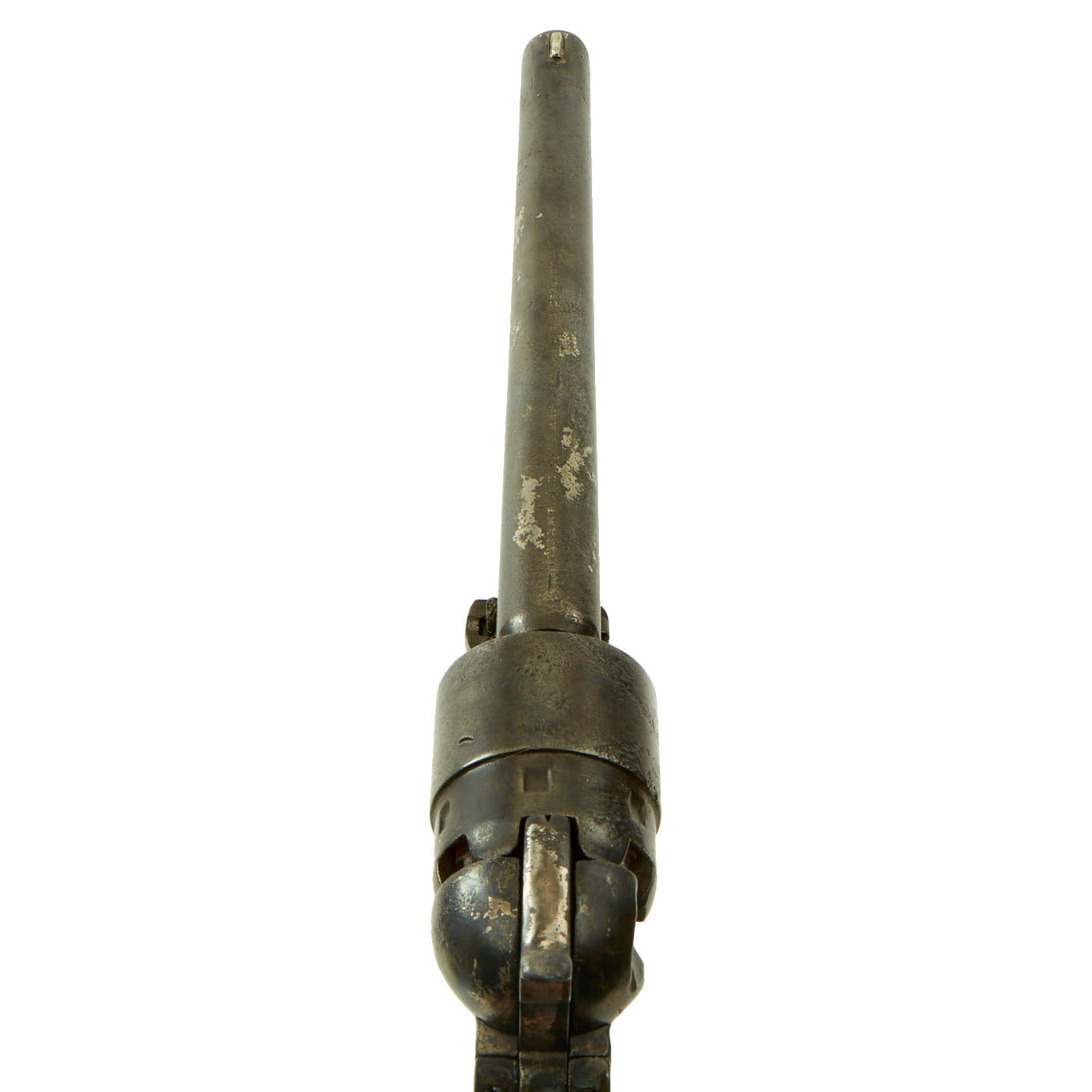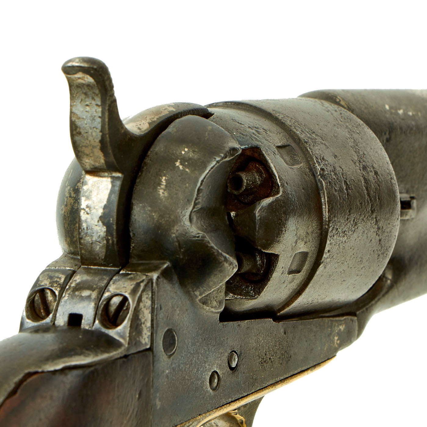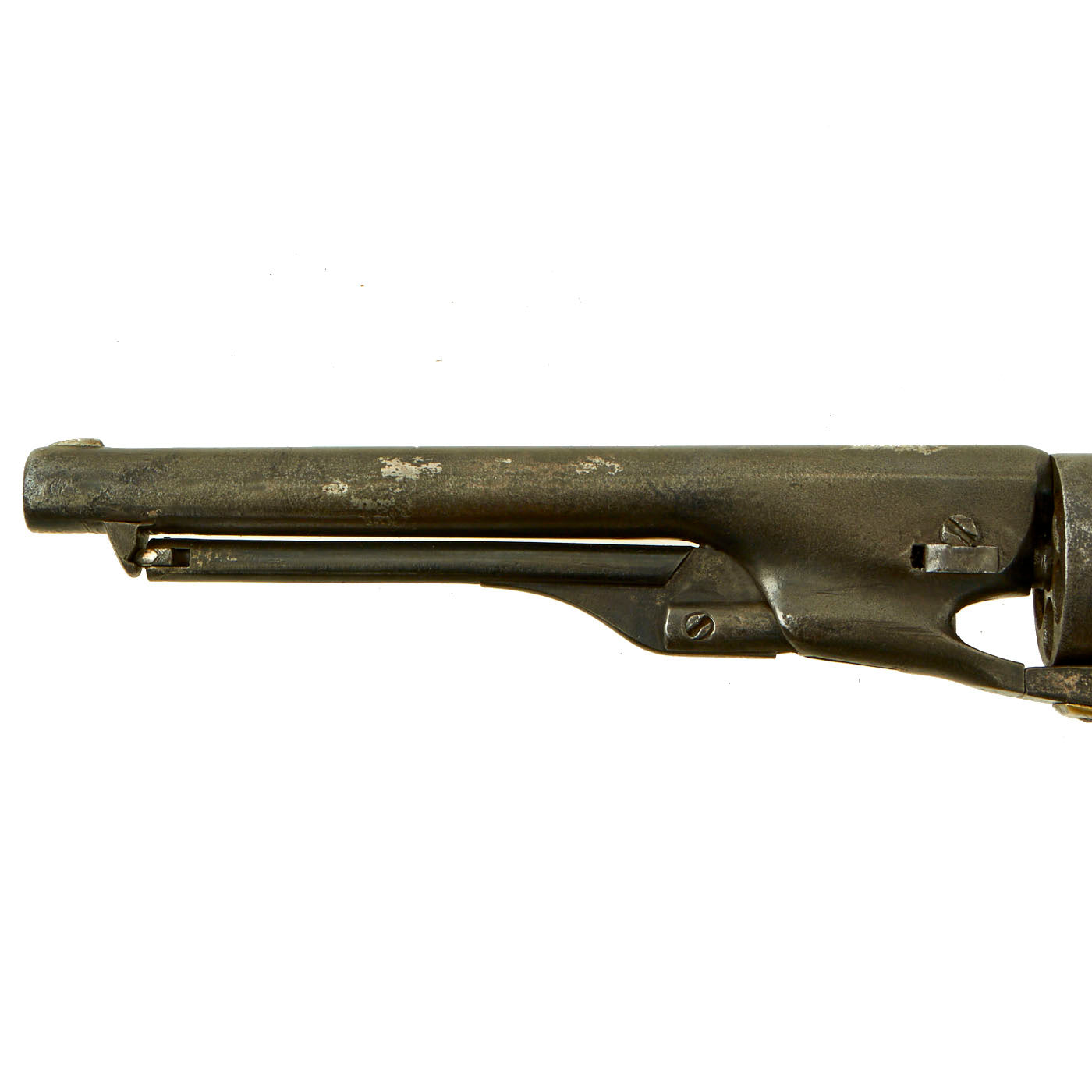 Original Item: Only One Available. This is a very interesting service used .44 caliber percussion, 6 shot round cylinder, 8" barrel Model 1860 Colt Army revolver, set up as a "Salesman Sample". Little is recorded of these revolvers, which were supplied upon request to retail Gunsmiths for use as client test pieces, so the retail buyer could satisfy himself that the 1860 Army Model was the ideal gun for him. Refurbished and deliberately re-numbered these were intended to save wear on brand new retail inventory. This example appears well used and maybe was once nickel plated now just about all gone, but is nevertheless a fine example of these Retail Trial revolvers.