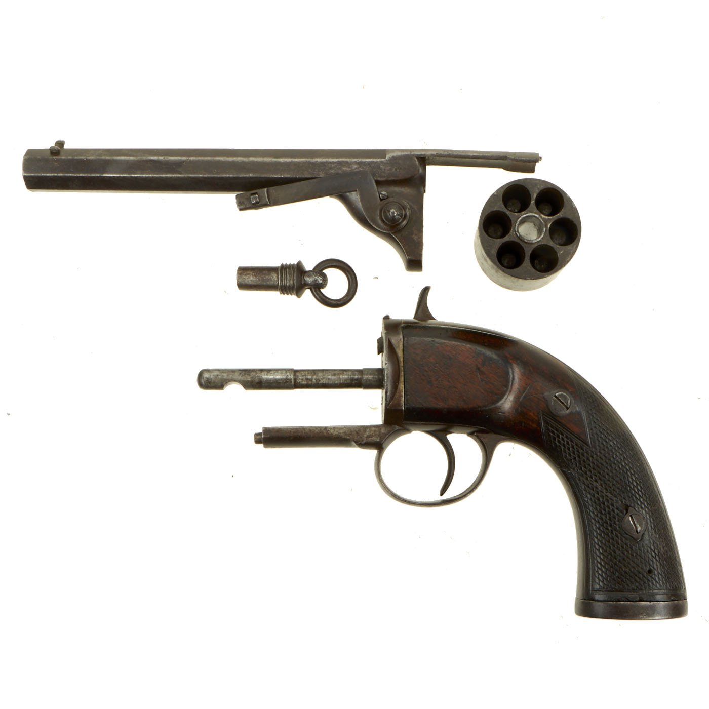 Original Item: Only One Available. Here we have a very rare example of a French Model 1854/55 Percussion revolver, produced by the legendary French maker, Louis-François Devisme. Born in 1806, Louis François-Devisme (pronounced (“De-Veme”) began his gunsmithing career in 1834 when he opened a shop on 36 Boulevarde des Italiens in Paris. Quickly establishing himself as a purveyor of high-grade goods, his business took off and, in relatively short order, he became one of the most renowned French makers of the mid-19th century.