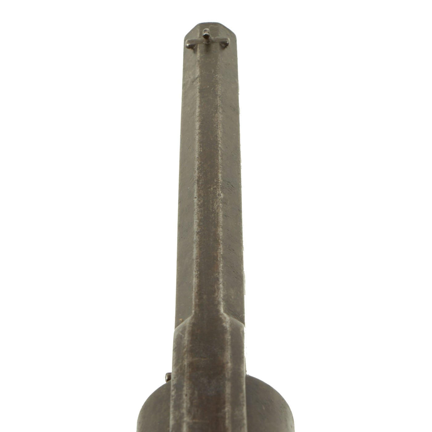 A lever on the left side of the revolver unlocks the barrel from the cylinder arbor pin, allowing removal of the barrel and cylinder. The cylinder chambers of the Devisme M1854/55 each have a "tige" (French for "rod") in the center, which is very similar to the "Pillar Breech" idea used in percussion firearms. The powder is poured around this, and a bullet placed on top. Then a unique loading tool in the butt of the pistol is used with a wooden hammer to cause the bullet bottom to expand around the rod, forming a better gas seal, and allowing it to engage the rifling more effectively. After this the revolver is reassembled, and the tool threads back into the butt, where it doubles as a lanyard ring. A truly ingenious design.
