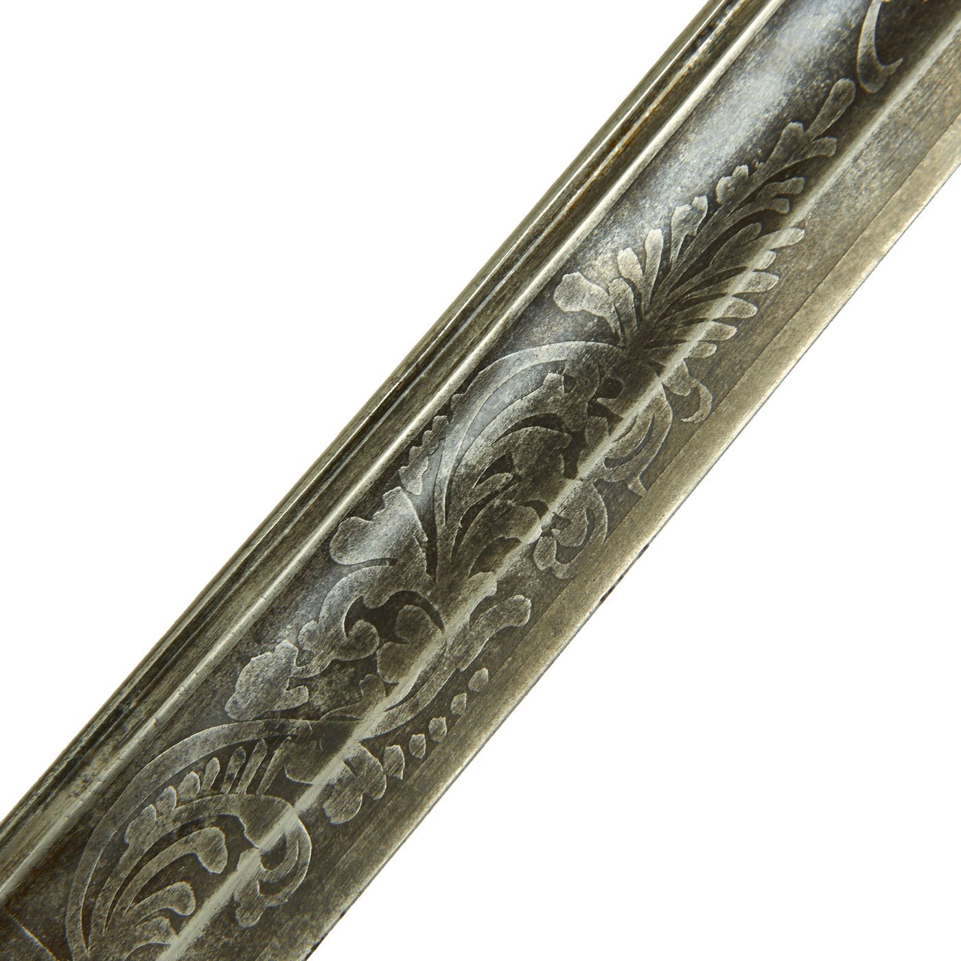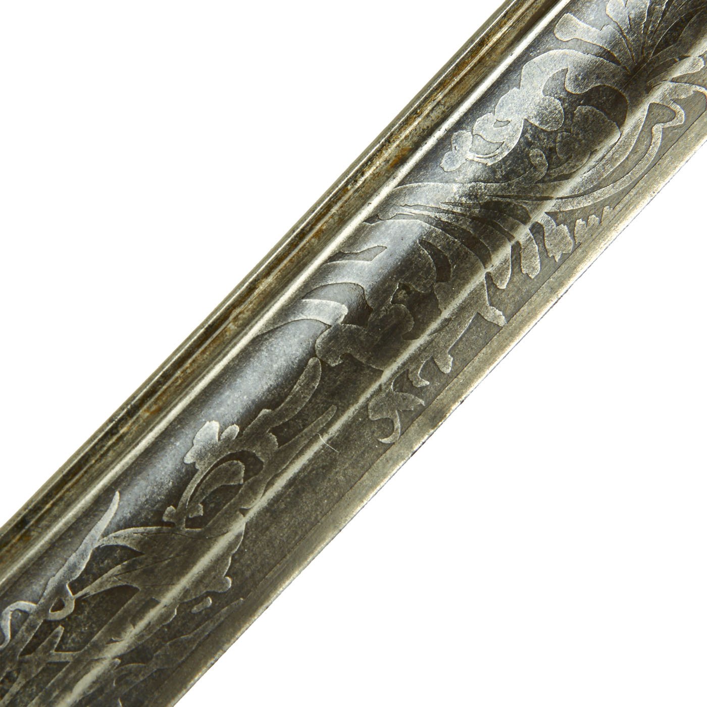 The sword is marked on the spine of the blade, within the etching: