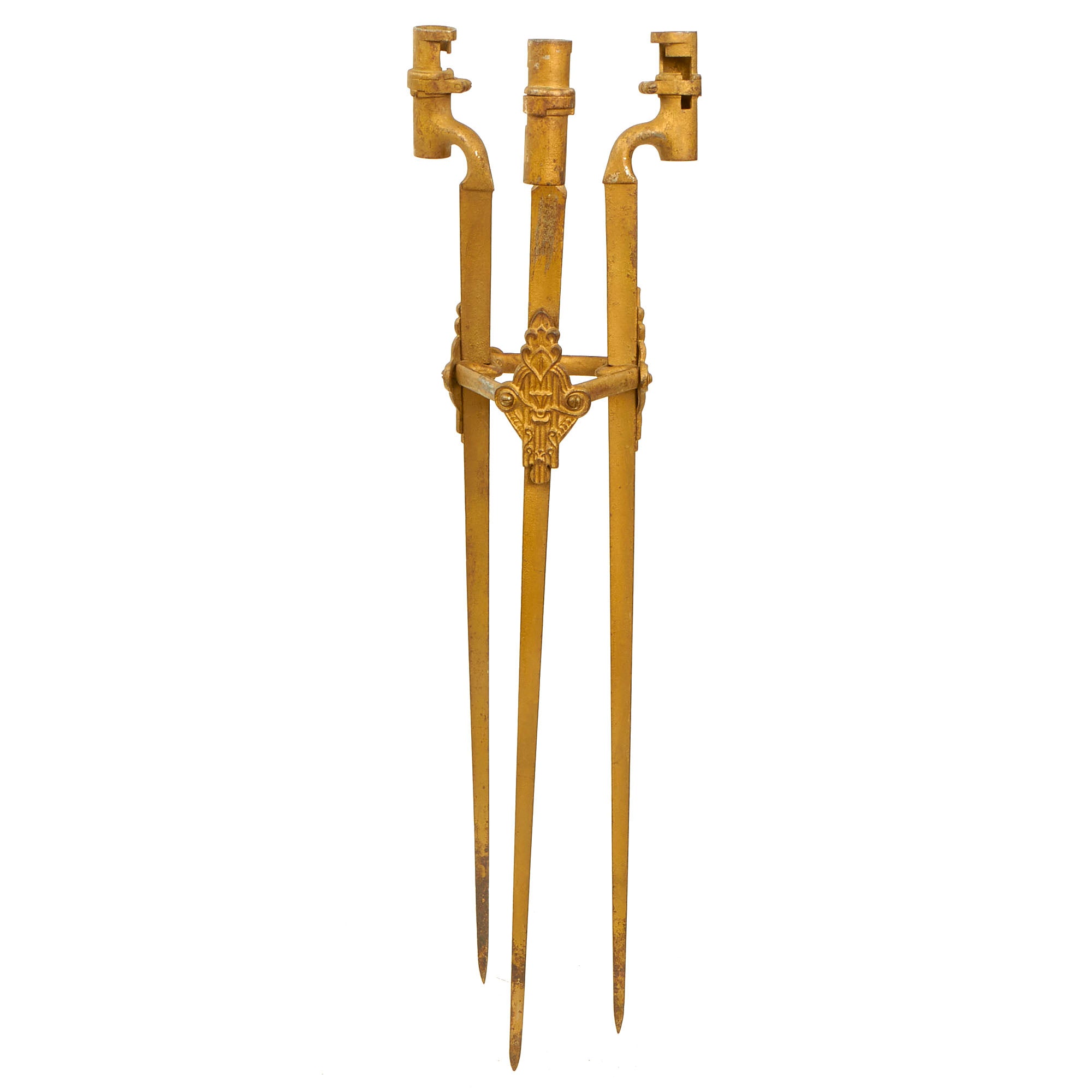 Original Item: Only One Available. These bayonets met their end as a result of dealers having overflowing stocks of a single item. In order to sell them, they had to get creative. This is a classic example of a dealer having way too many items in stock and trying to figure out a way to make them go away. Such was Francis Bannerman's & Co's. dilemma back in the day. While we do not know if this is from Bannerman, the same applies. The decor was made from 3 Pattern 1853 Enfield Socket Bayonet. Now we are honestly unsure as to what the decoration was used for but it does have an odd beauty about it.