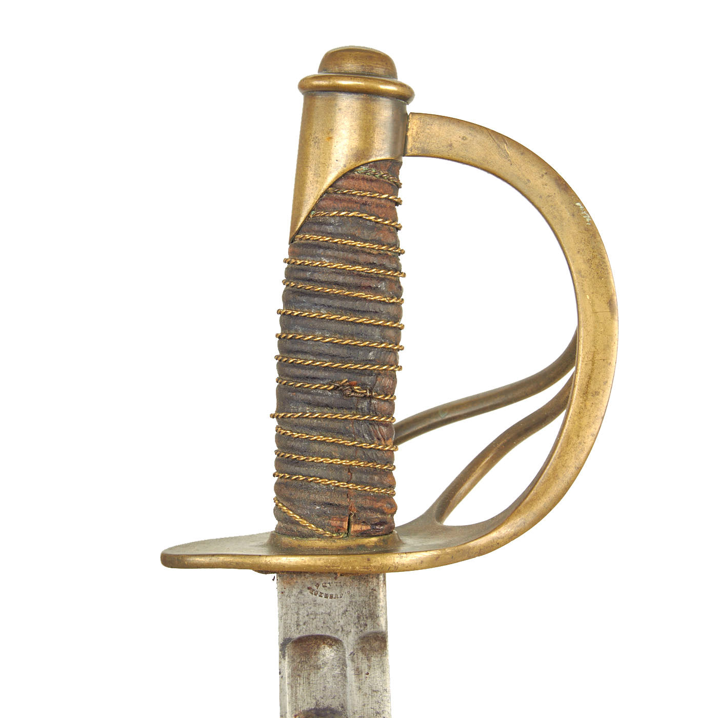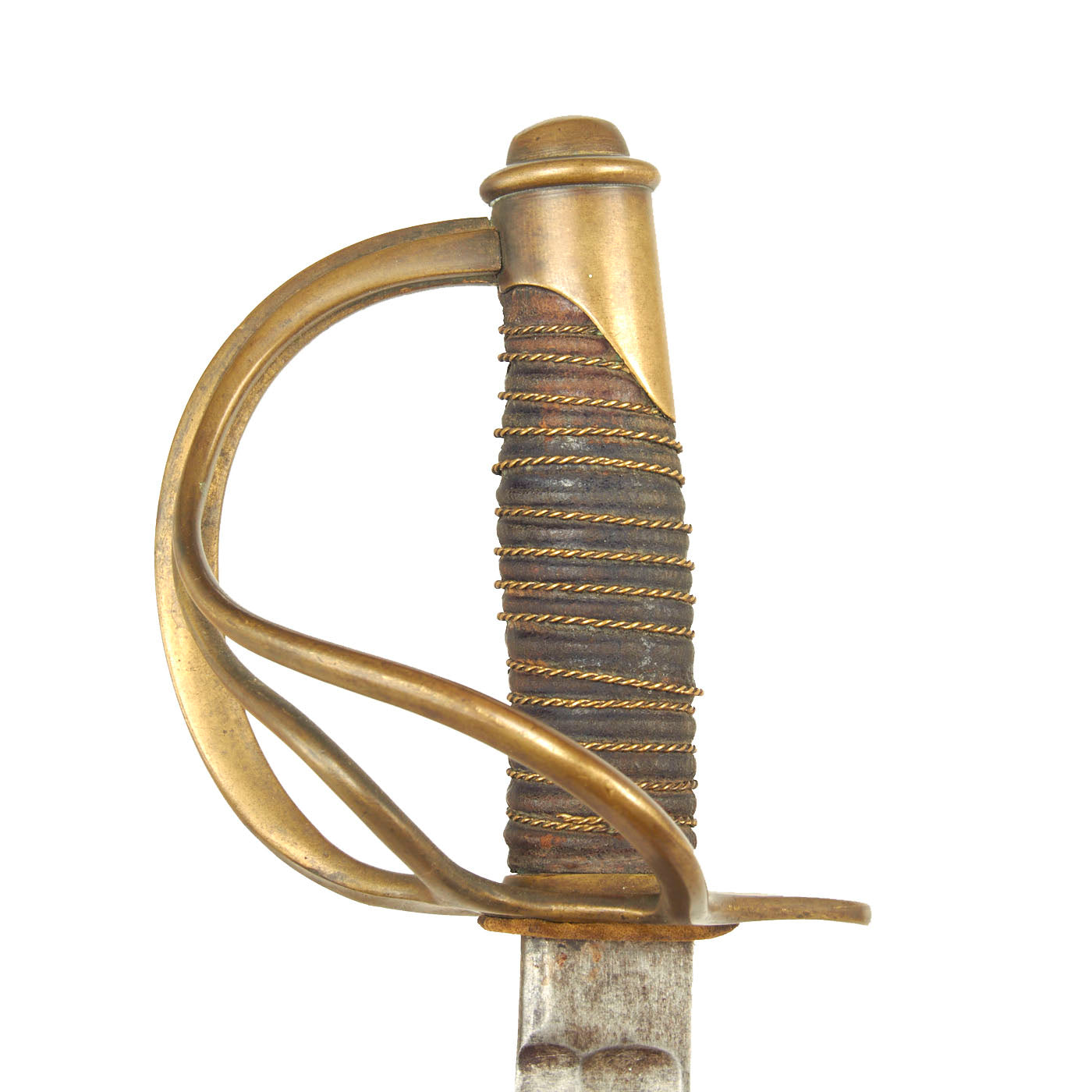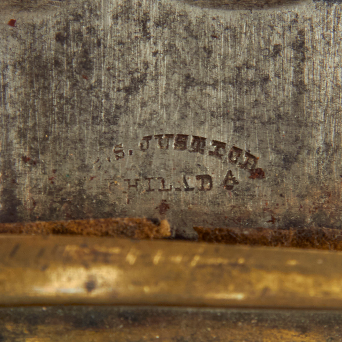 This heavy Cavalry Saber, known as "Old Wristbreaker" among troops, was designated the U.S. Model of 1840, and was the principal cavalry saber used until the Model of 1860 was introduced. As such it was widely used in the War between the States on both sides. Some examples were made in the United States, while many others were imported from Germany. This example is marked by U.S. Military Contractor P.S. Justice of Philadelphia, who also produced contract rifled muskets during the war. We assume that they produced the entire sword, but they may also have used unmarked German blades.