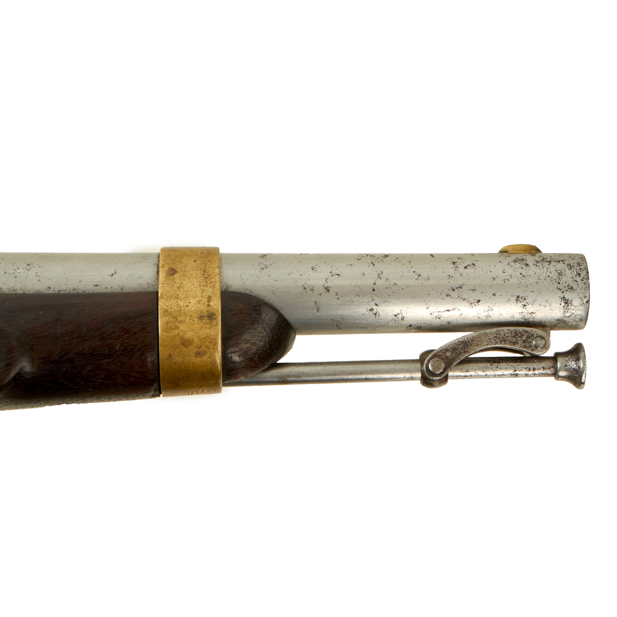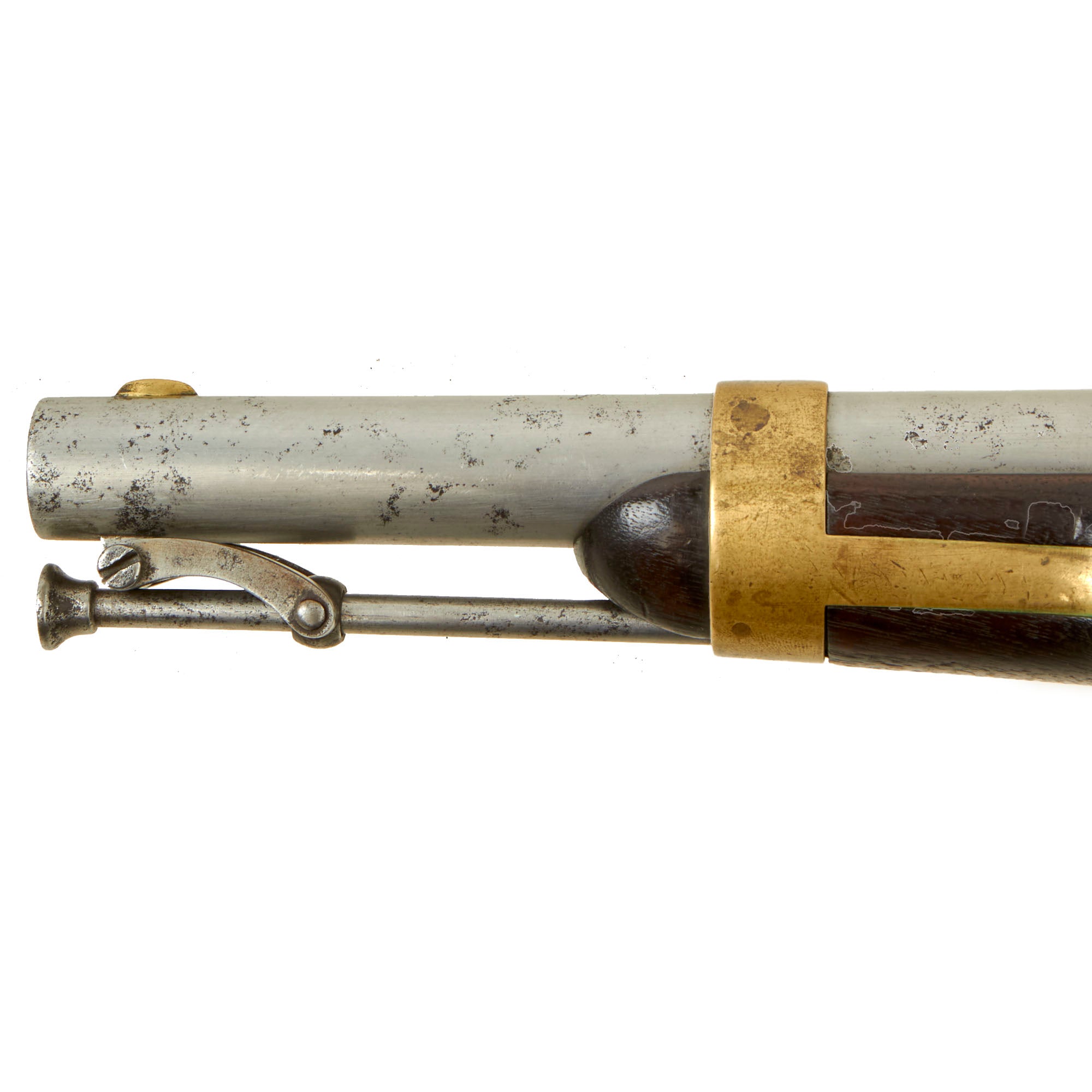 The lock is functional and holds correctly at half cock, firing at full, and the captured cleaning rod is fully functional as well. The percussion cap nipple appears to have been replaced, likely in the early 20th century. This Model was widely used in the U.S. / Mexican War and then in the U.S. Civil War.