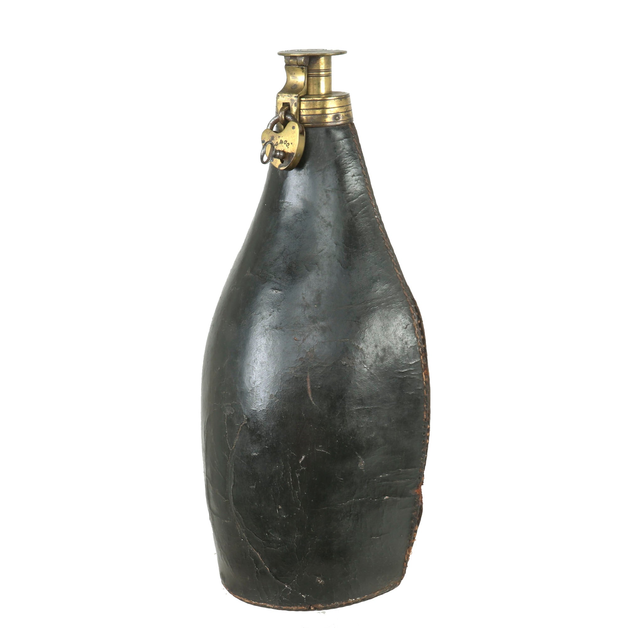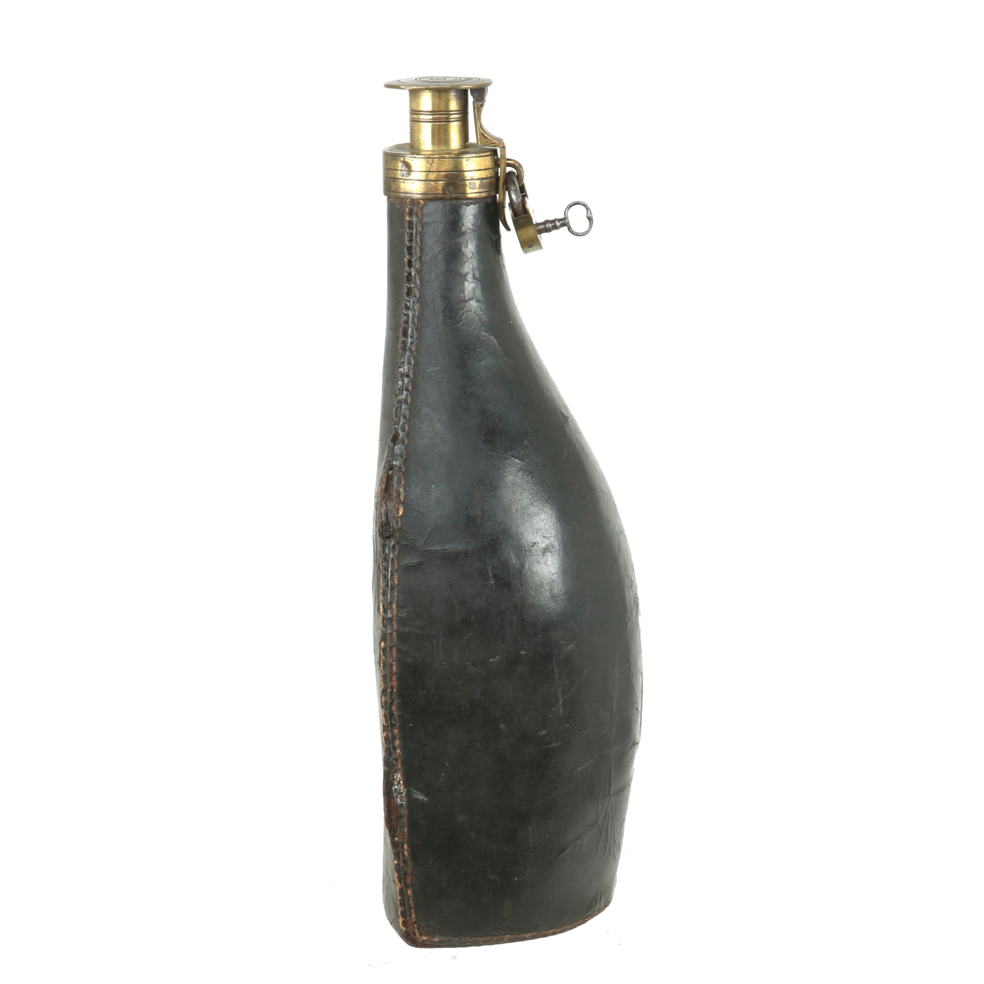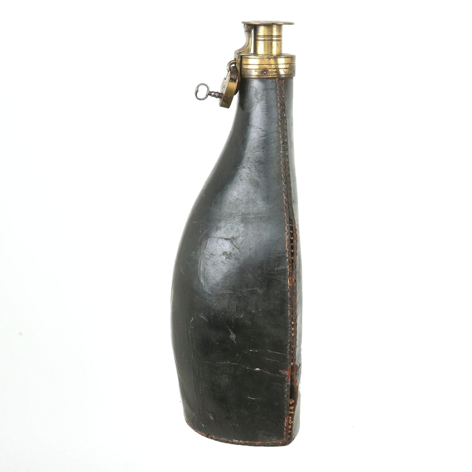 Original Item. One-of-a-Kind. This is a very interesting leather powder flask dating to the period of the American Civil War, the spout of which actually has a lock & key to prevent the draining of the flask. This is the first example of a powder flask we’ve ever seen with a system like this, and we were unable to find any similar examples in our research.