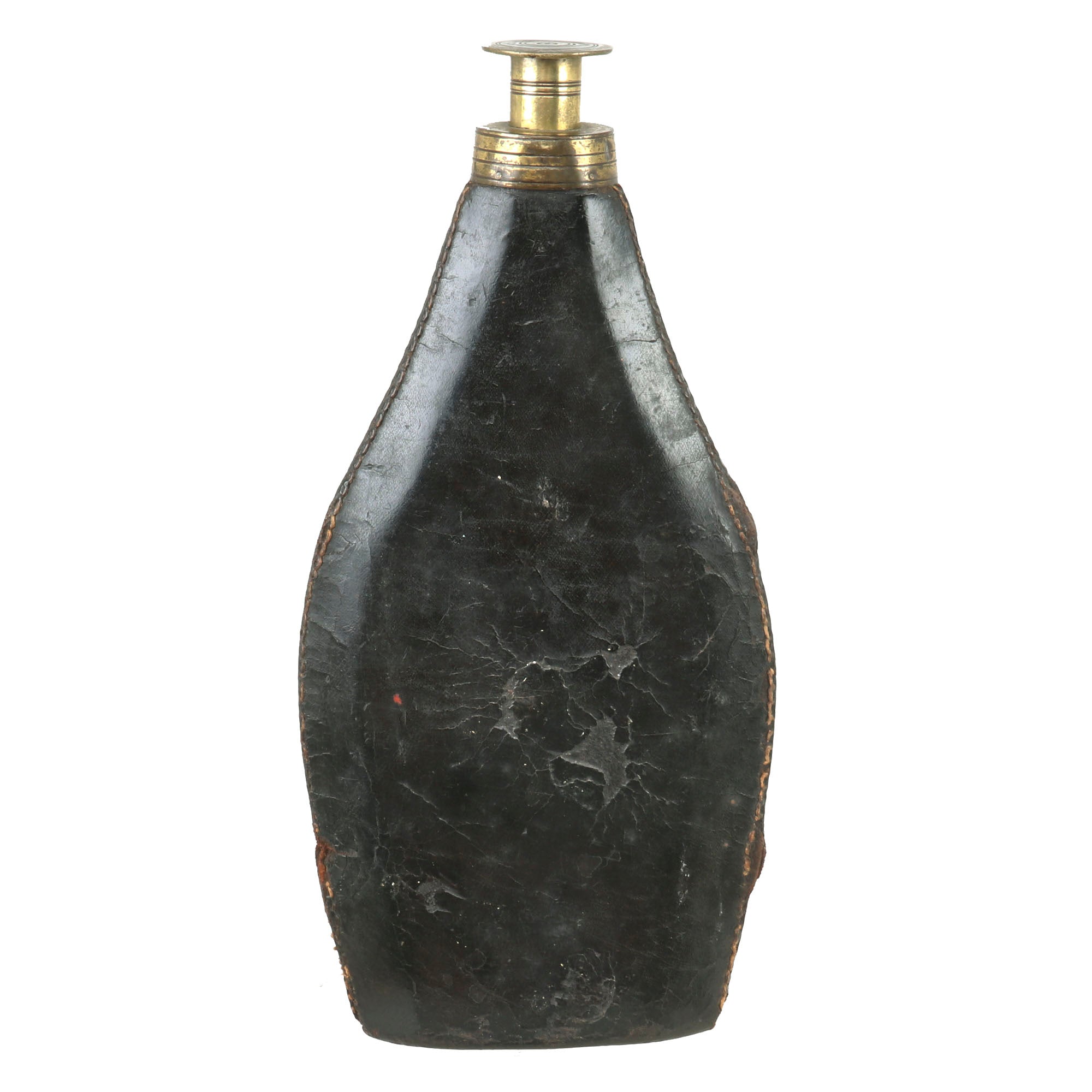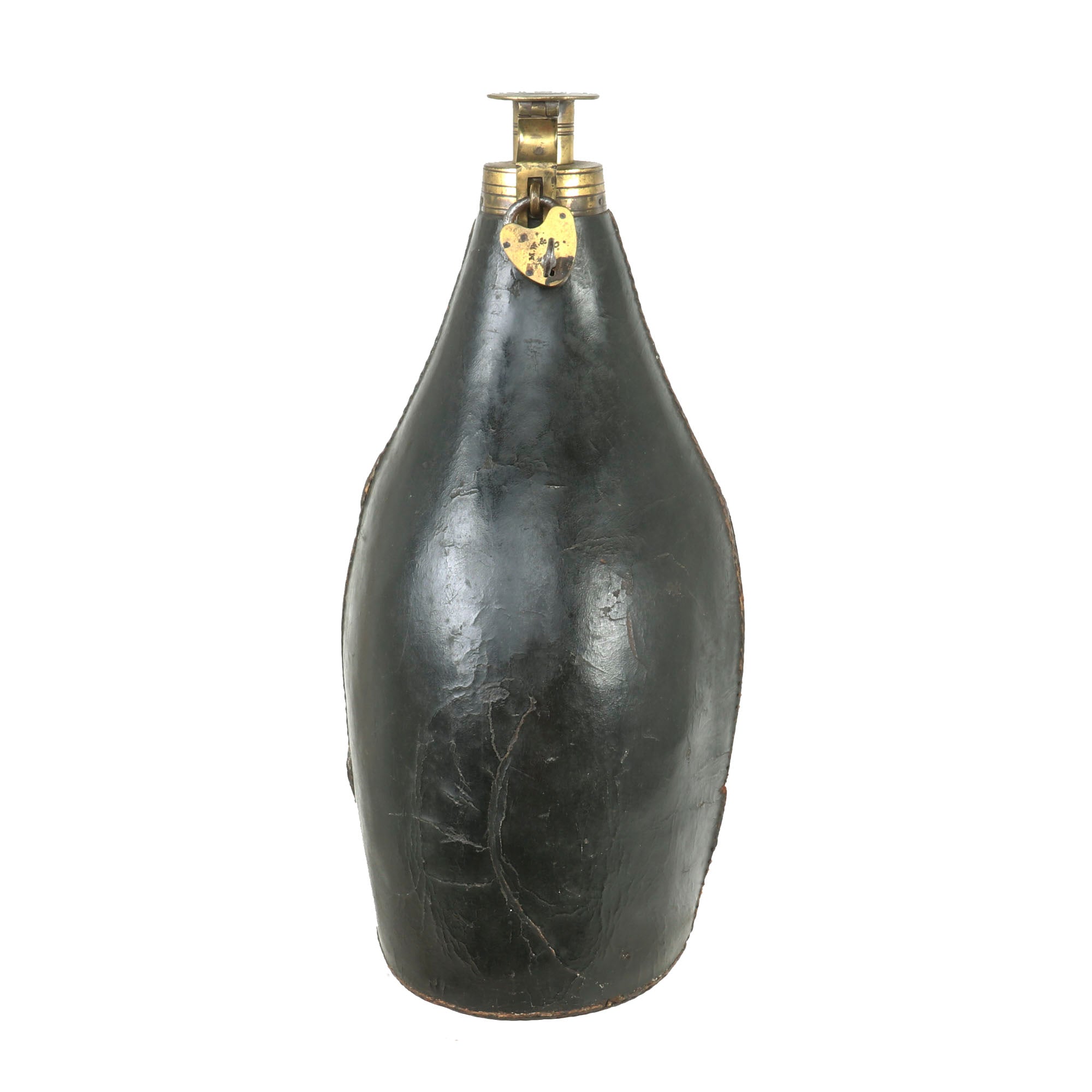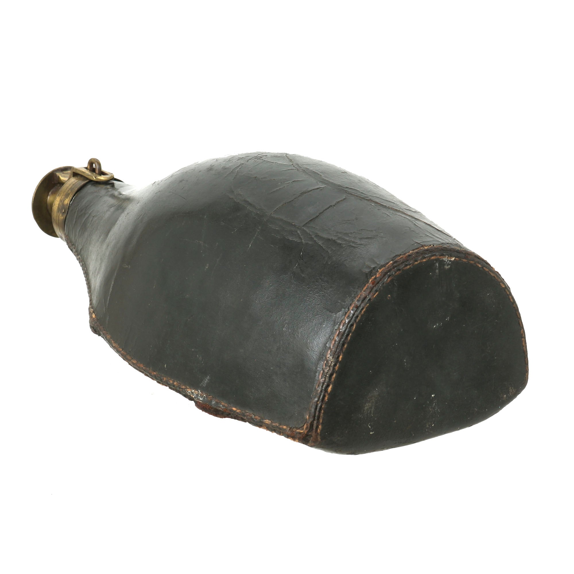 Original Item. One-of-a-Kind. This is a very interesting leather powder flask dating to the period of the American Civil War, the spout of which actually has a lock & key to prevent the draining of the flask. This is the first example of a powder flask we’ve ever seen with a system like this, and we were unable to find any similar examples in our research.