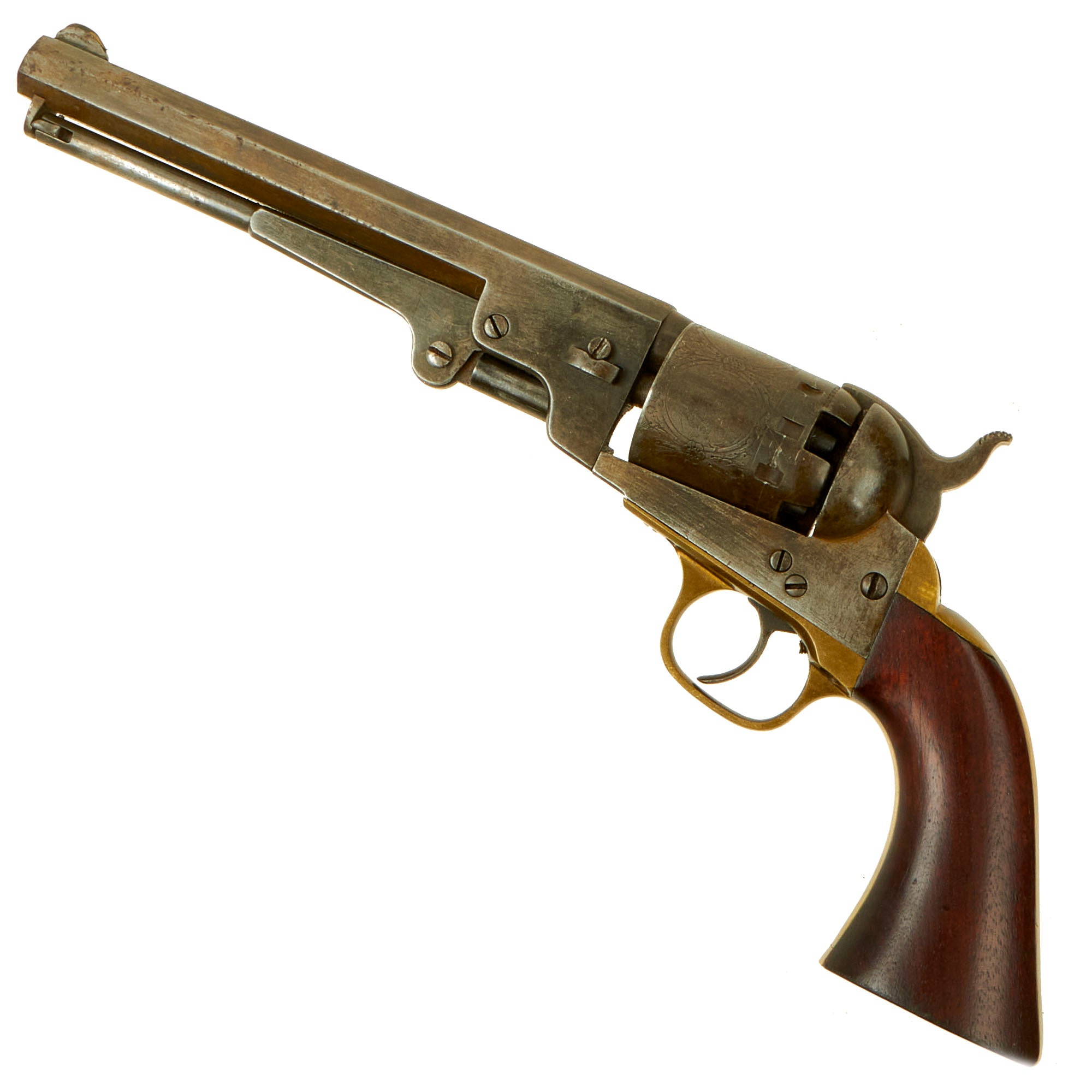 Original Item: Only One Available. This is a very nice service used condition Civil War revolver, made by the MANHATTAN FIREARMS COMPANY of NEWARK, N.J.. The company was originally founded in 1856, mainly to make Colt-style revolvers once their patent ran out in 1857. This revolver looks just like a Colt Navy but it has a five shot cylinder, instead of the Colt's six.