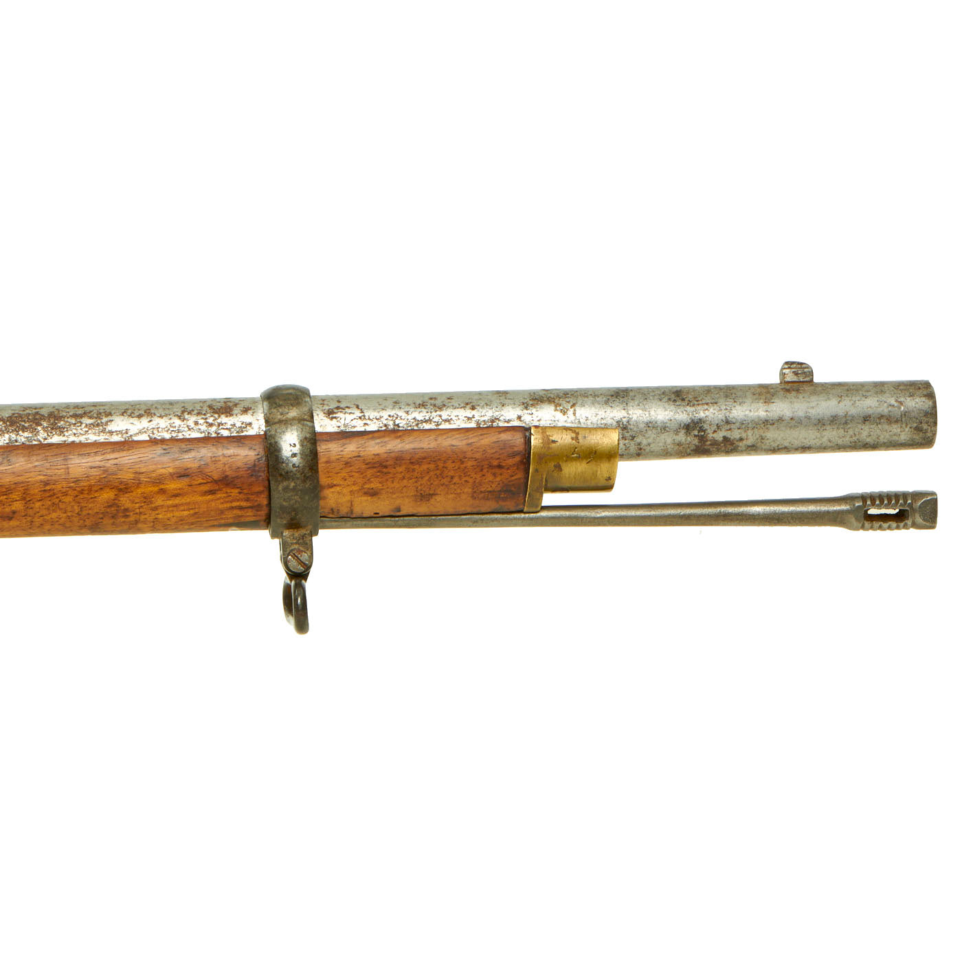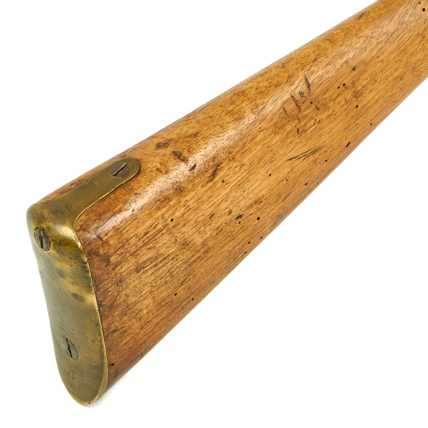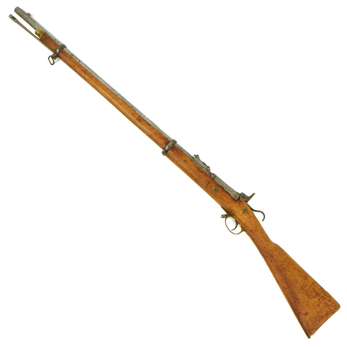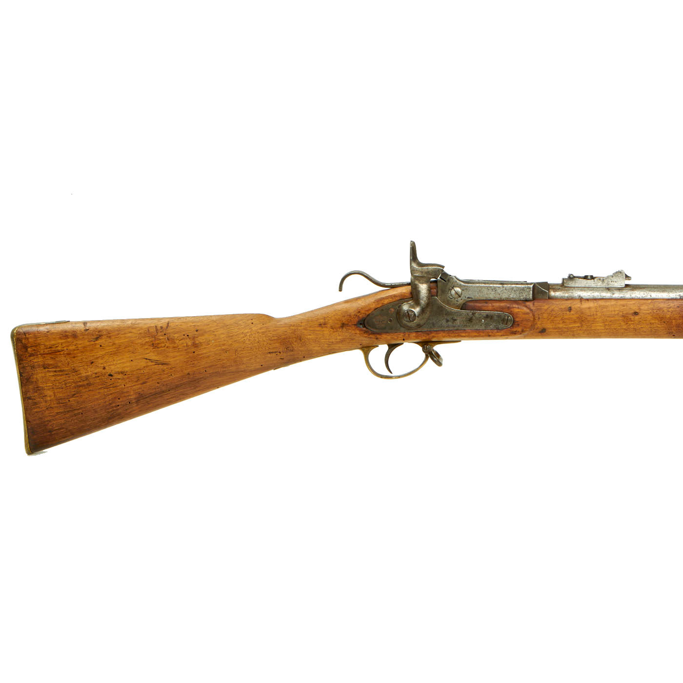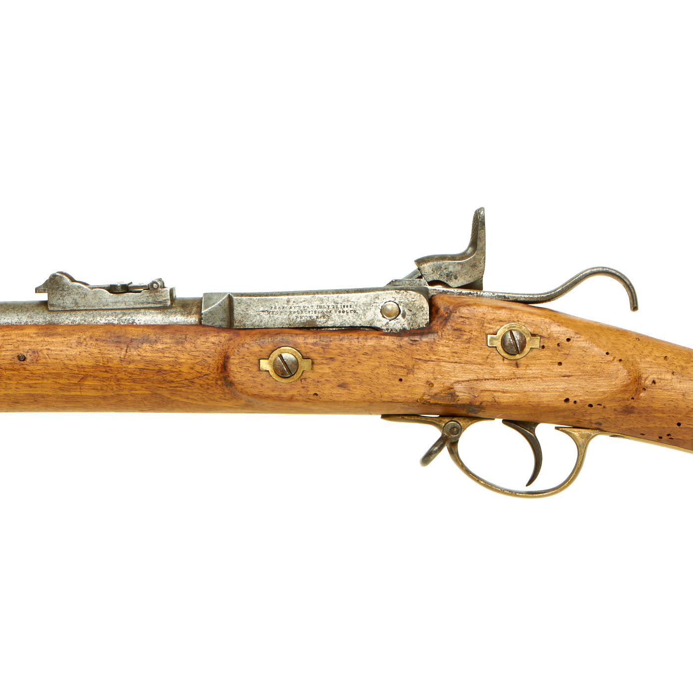 Original Item: Only One Available. Offered here is a very interesting Peabody Patent converted breech loading rifle, which began life as a muzzle-loading 3rd Model Pattern 1856 Enfield Short Rifle Musket. It was originally produced in England with brass butt plate, trigger guard and nose cap. It still has the correct two steel barrel bands held on with screw pressure, typical of the 3rd model. The screws are not recessed, as they would be on the "Baddeley" type bands used on the later 4th model.
