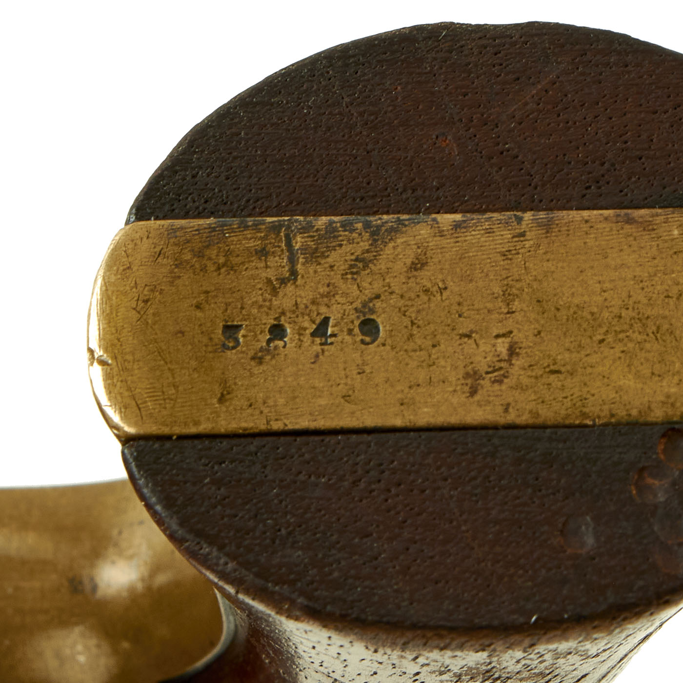 Overall condition of the revolver is just lovely, with a fantastic patina of age. The barrel and steel components still have some of the original blued finish, with the rest faded to a grayish patina. The brass frame lost almost all of the original nickel plating, and is now a lovely mustard color. The grip scales look great, though the right scale does have a repaired crack.