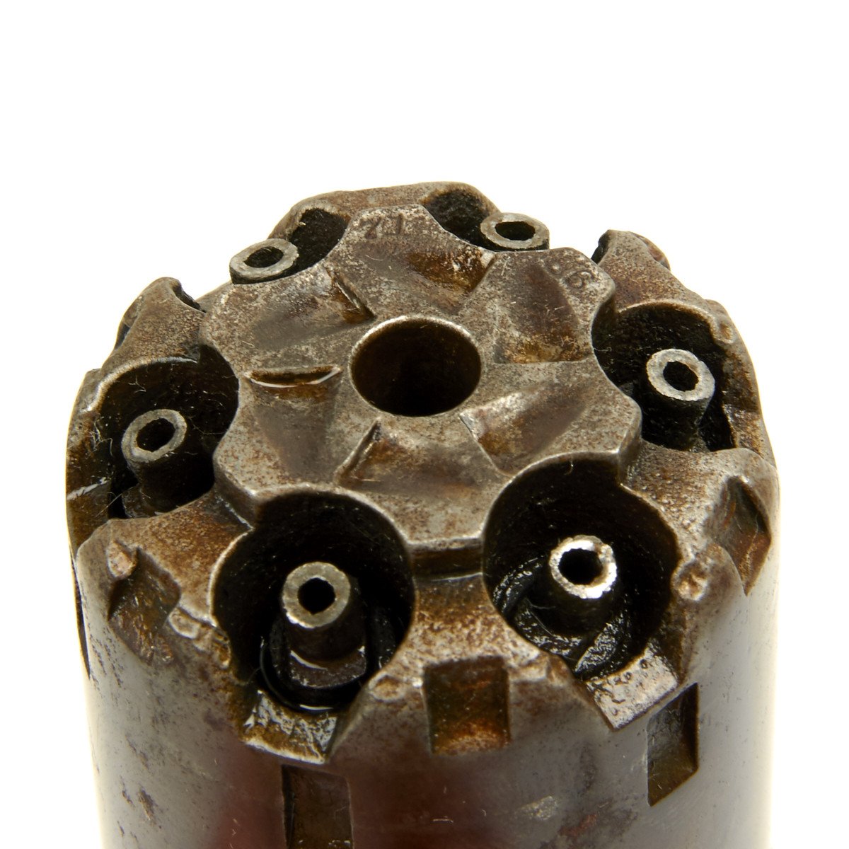 Overall condition is good with original finish and some minor pitting. Still bears original walnut grips that show government military cartouches, tight cylinder lock, strong smooth action, good bore and overall nice condition.