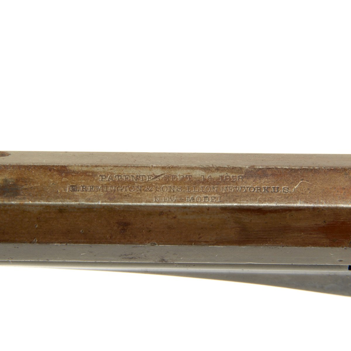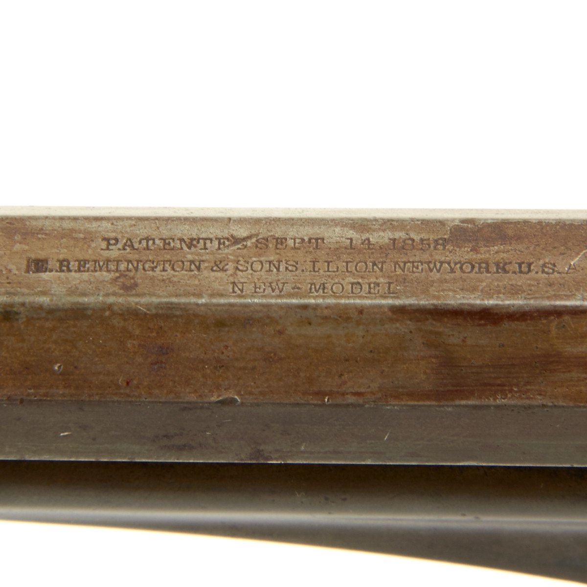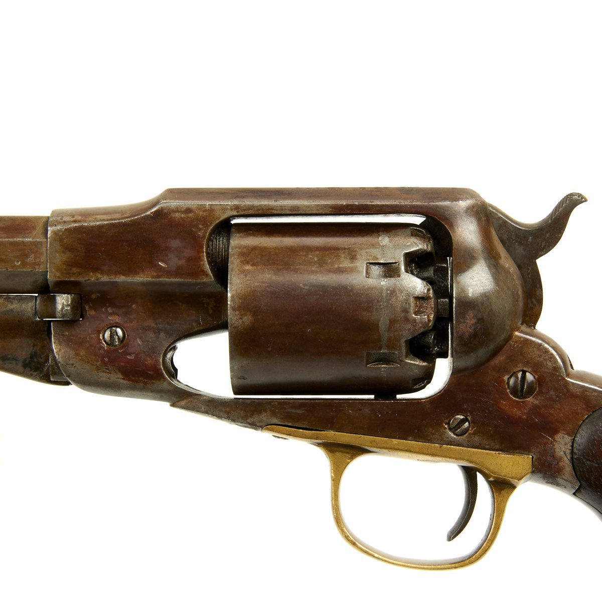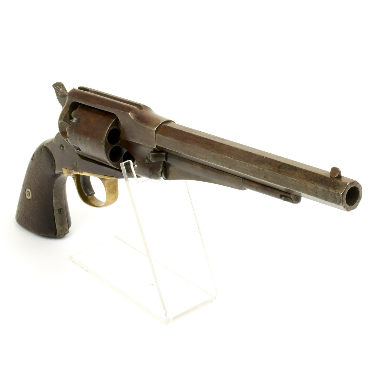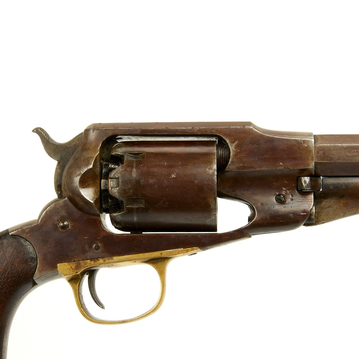 The Remington New Model 1863 Army Revolver represents Remington's highest production martial pistol. Approximately 126,000 were manufactured from 1863 to 1875. After Colt, it was the Northern government's most purchased and issued pistol. Serial numbers of the New Model Army continued from the Model 1861 Army. Reference sources estimate this change from between serial number 15000 (Flayderman) to 22000 (Reilly). This is probably due to a long transitional period in which there was a gradual change over of the design features between the two models. The earliest production models utilized the 1861 frames and had a somewhat longer grip. The stamping "New Model" on the barrel of the early models can also be noted to have been stamped with a separate die. Nearly 110, 000 New Models were purchased by the government during the Civil War, at prices between $10.82 and $15.50 each. These prices were lower than Colt's and by mid-1863, Colt was eliminated from the government contract business. The State of New Jersey also purchased several thousand for Civil War issue.