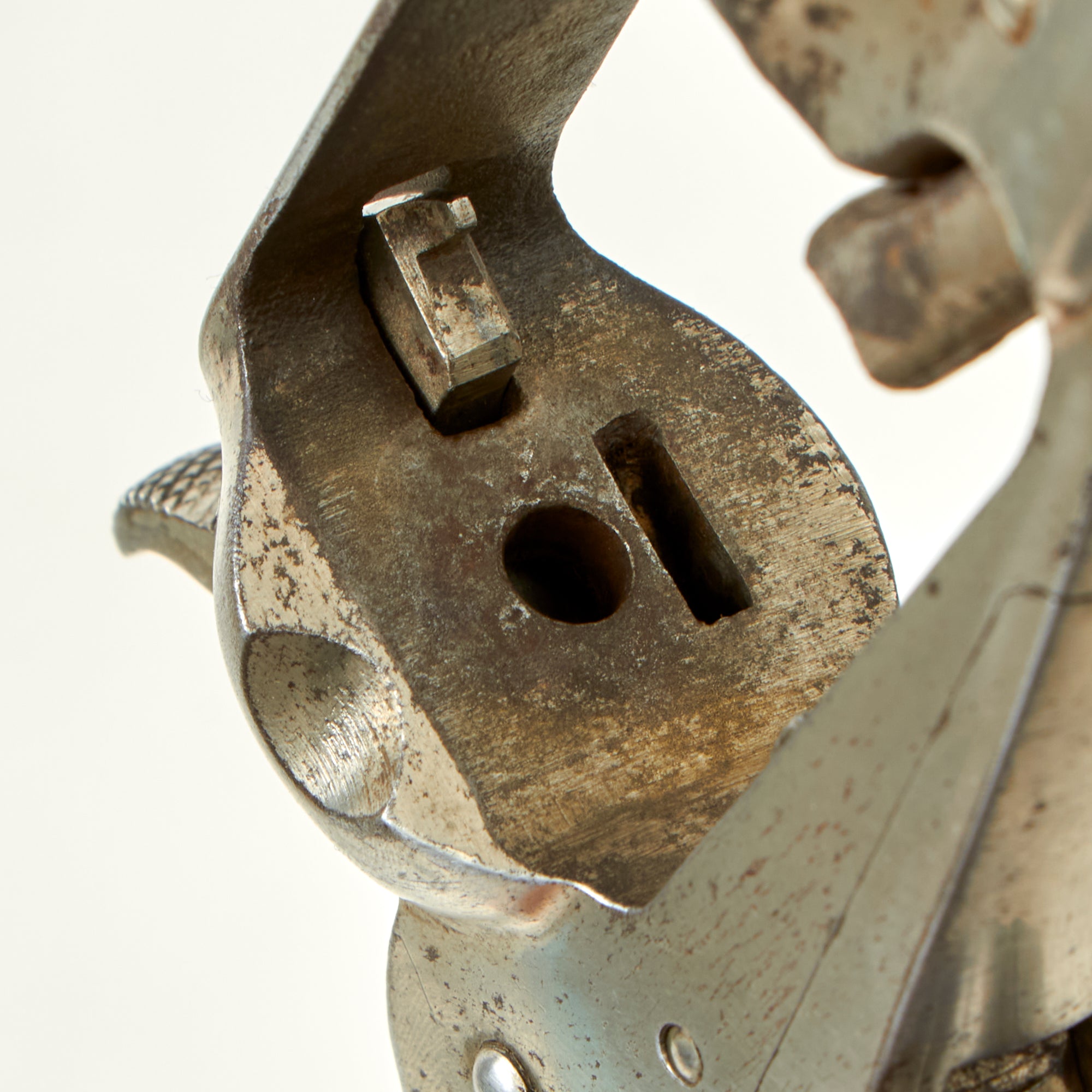 The revolver functions great, with good indexing and a solid cylinder lockup. It does not exhibit any of the finicky behavior we often see with revolvers of this age. The bore is in very good condition, with clear lands and grooves and a partly bright finish. There is definitely some past fouling and oxidation, as expected from a revolver that saw use as both a percussion and cartridge arm during the black powder rea.