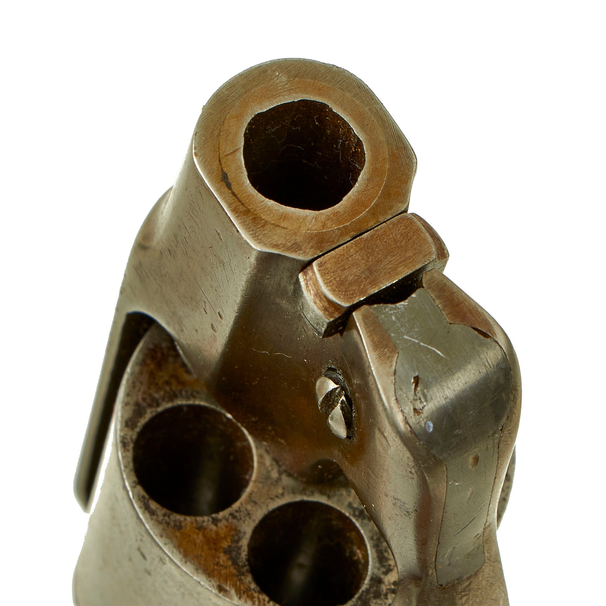 The revolver functions very well, with good indexing and a solid cylinder lockup. The trigger is however very sensitive, and can actually sometimes let go without pressing it. The bore, short as it is, still shows some rifling, but also oxidation.