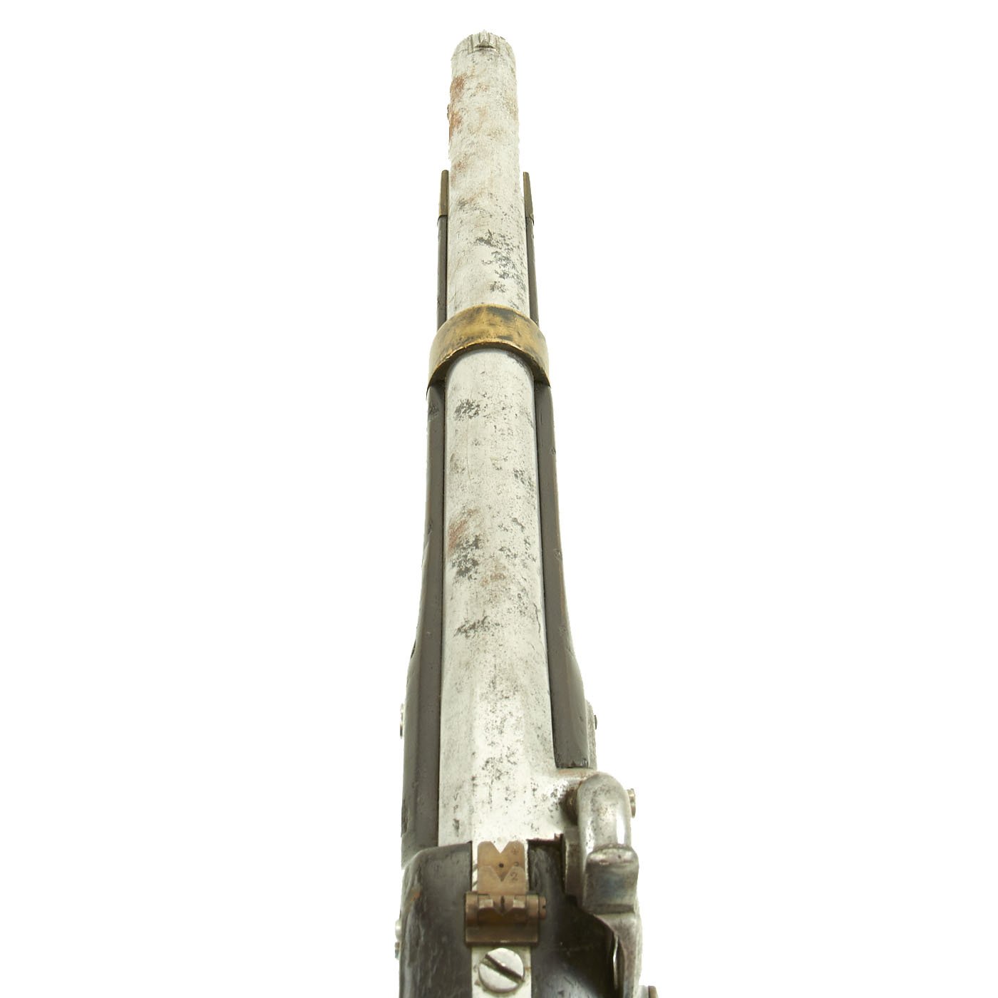 It was lighter because this pistol-carbine was built to use the newly designed smaller Minié bullet. It also was useful because normal rifle musket caps could be used on this firearm. Measuring 19" in overall length, the back strap is cut for separate shoulder stock, which is unfortunately absent.