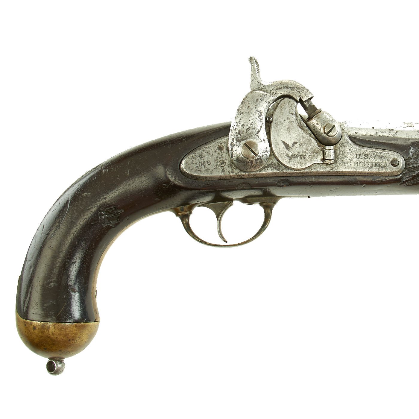Original Item: Only One Available. This U.S. Martial pistol is one of the most impressive of all! The Springfield Model 1855 Pistol-Carbine was the last single shot pistol to be produced for the U.S. military. More than 4,000 were made, and at the time, it was the smallest .58 caliber pistol used in the army. It was based around the same Maynard "Tape Primer" system used on the M1855 musket, which kept a coiled tape containing primers, which were fed out when the hammer was cocked.