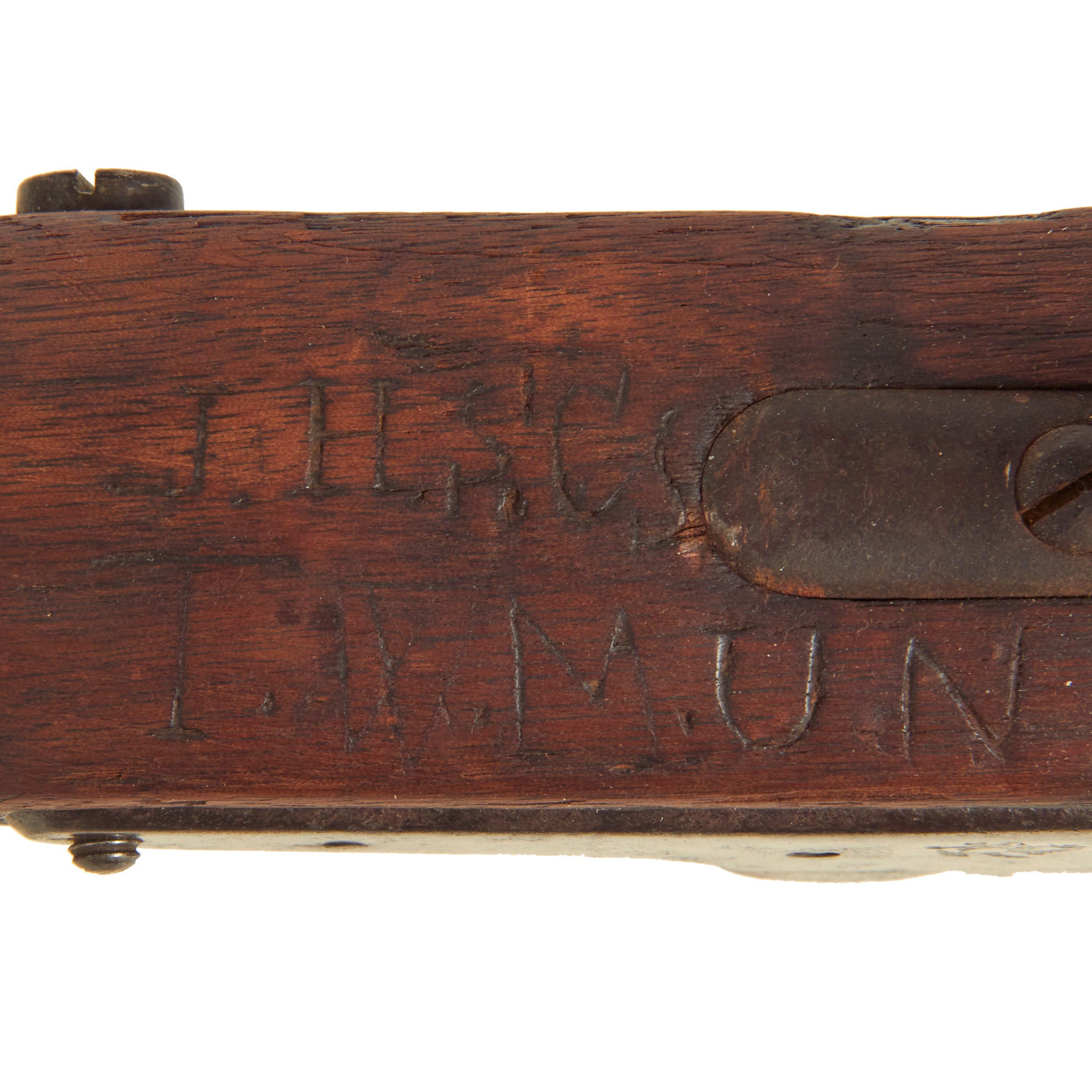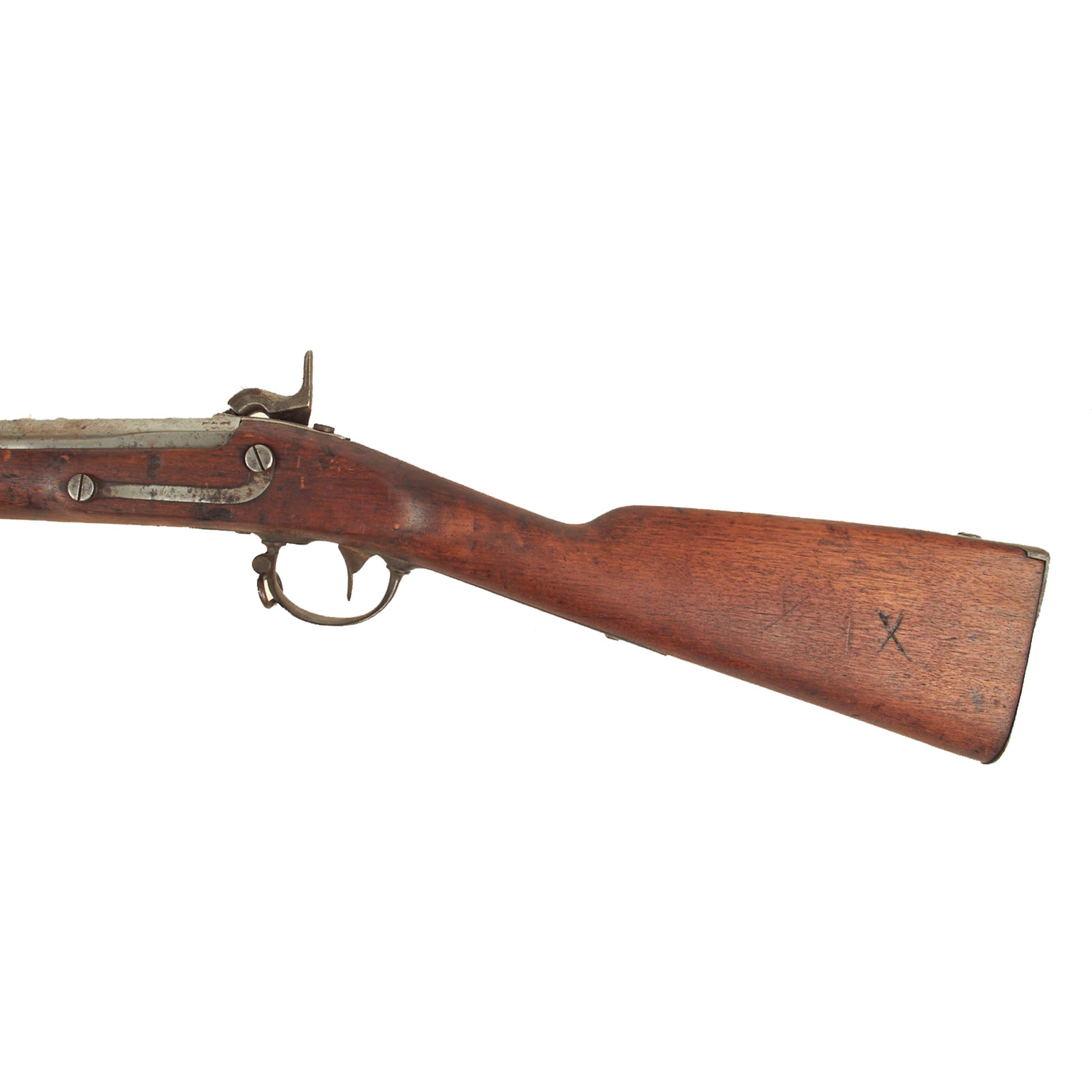 - There are some letters / abbreviations written into the stock on the bottom side in front of the trigger guard, a possible research possibility.