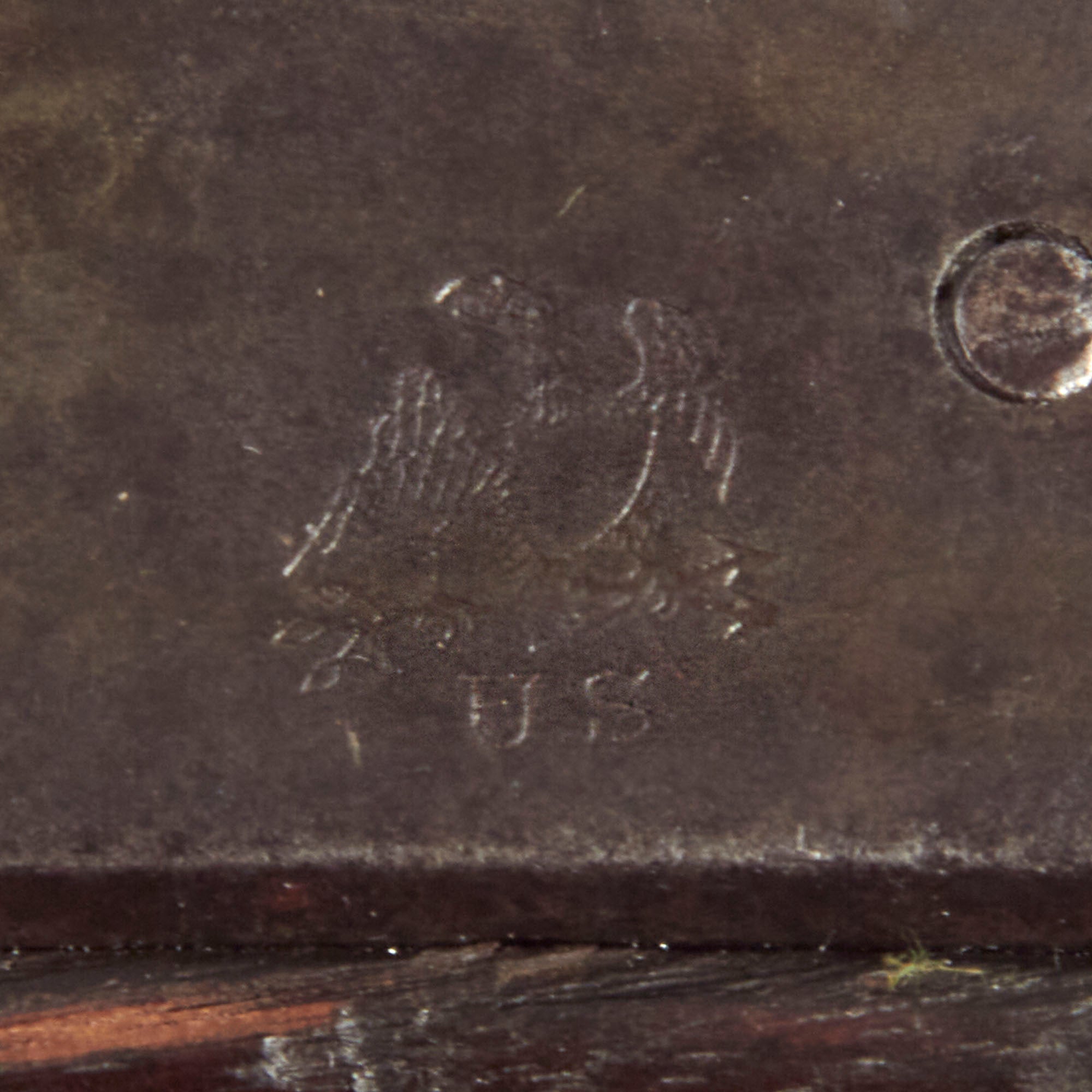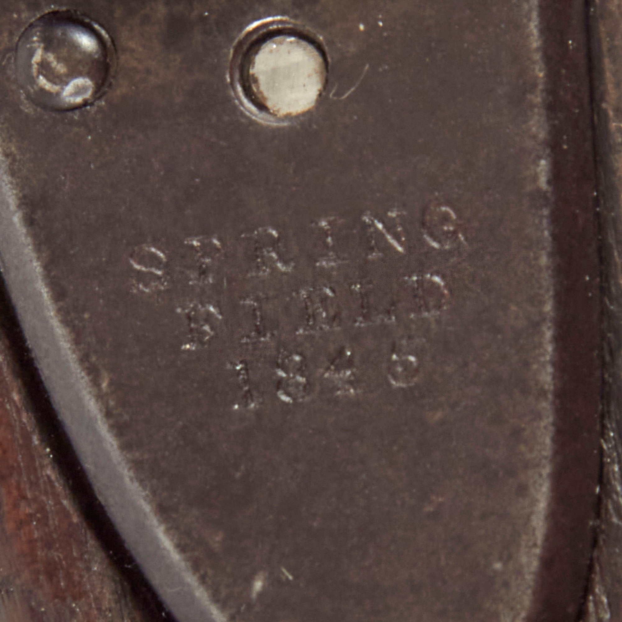 The Models 1840 & 1842 were made with thicker barrel walls, with the intention that they could be rifled later, however this example is still in the original smoothbore configuration. It is marked with an "American Eagle" over US, and the lock plate tail is clearly marked SPRING / FIELD / 1845. Many of these muskets were produced under contract, however this example was made at the United States Armory and Arsenal at Springfield itself. The rifle side plate is thin and not bulged, as typical of the Model 1842 Musket. Previous iterations had had a more pronounced side plate with a bulge in the middle. The barrel nocks form still has V / P / Eagle's Head proof marks visible, though the barrel tang date has been worn away.