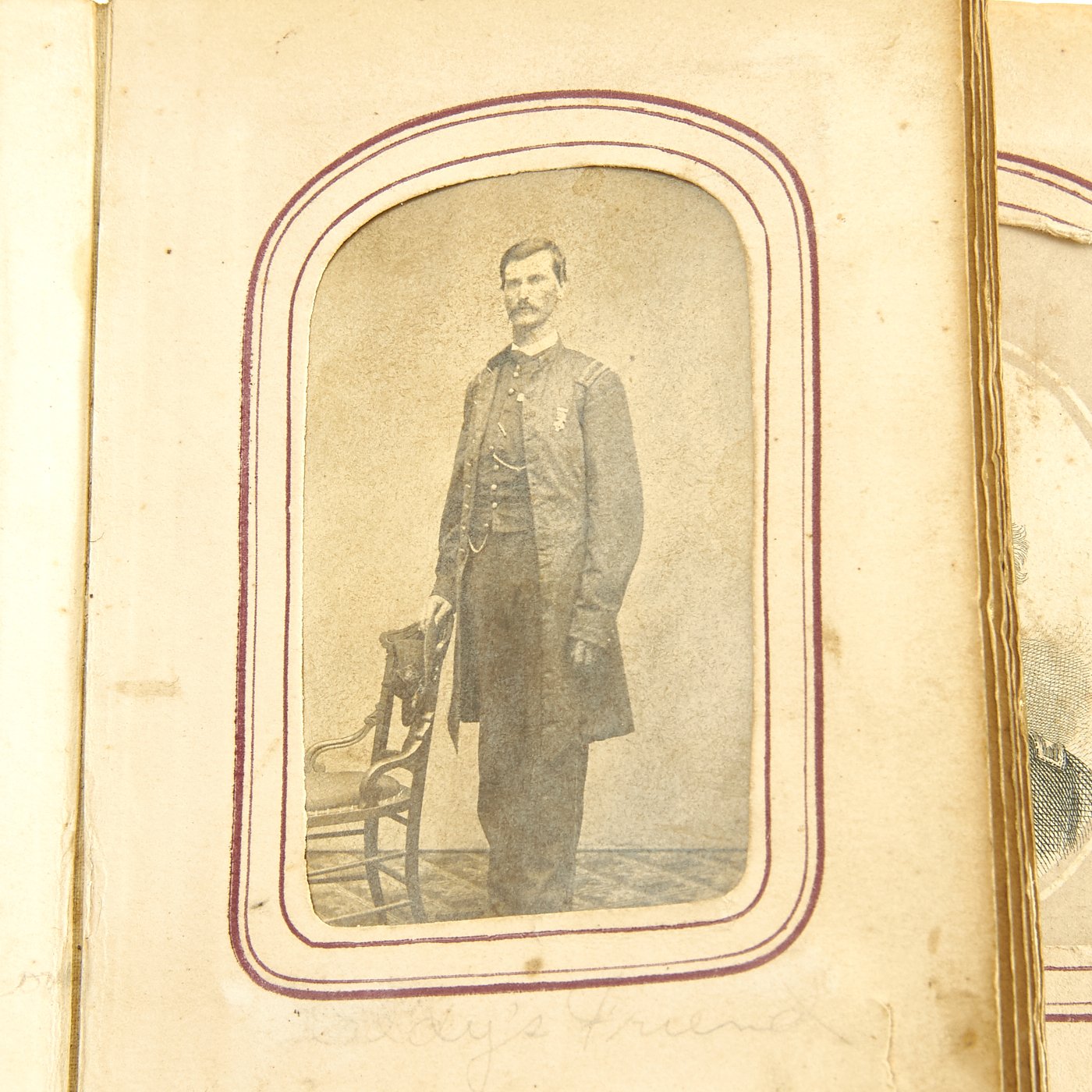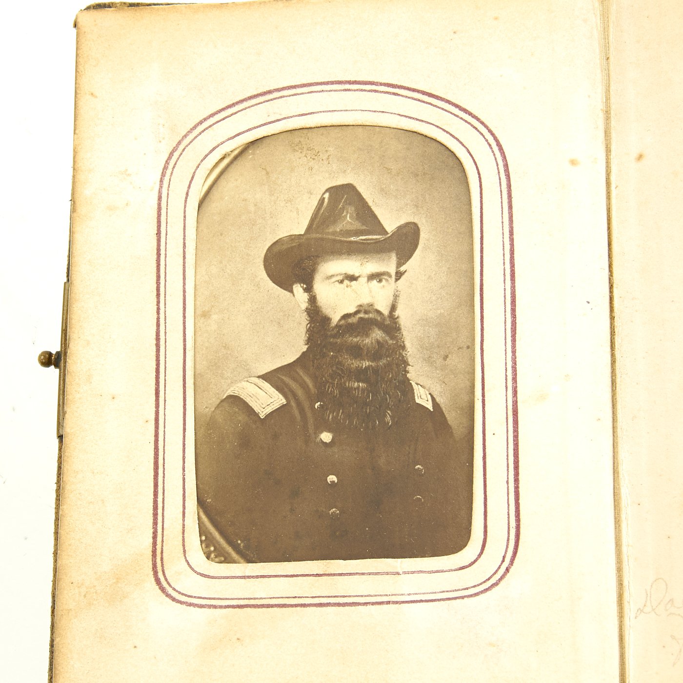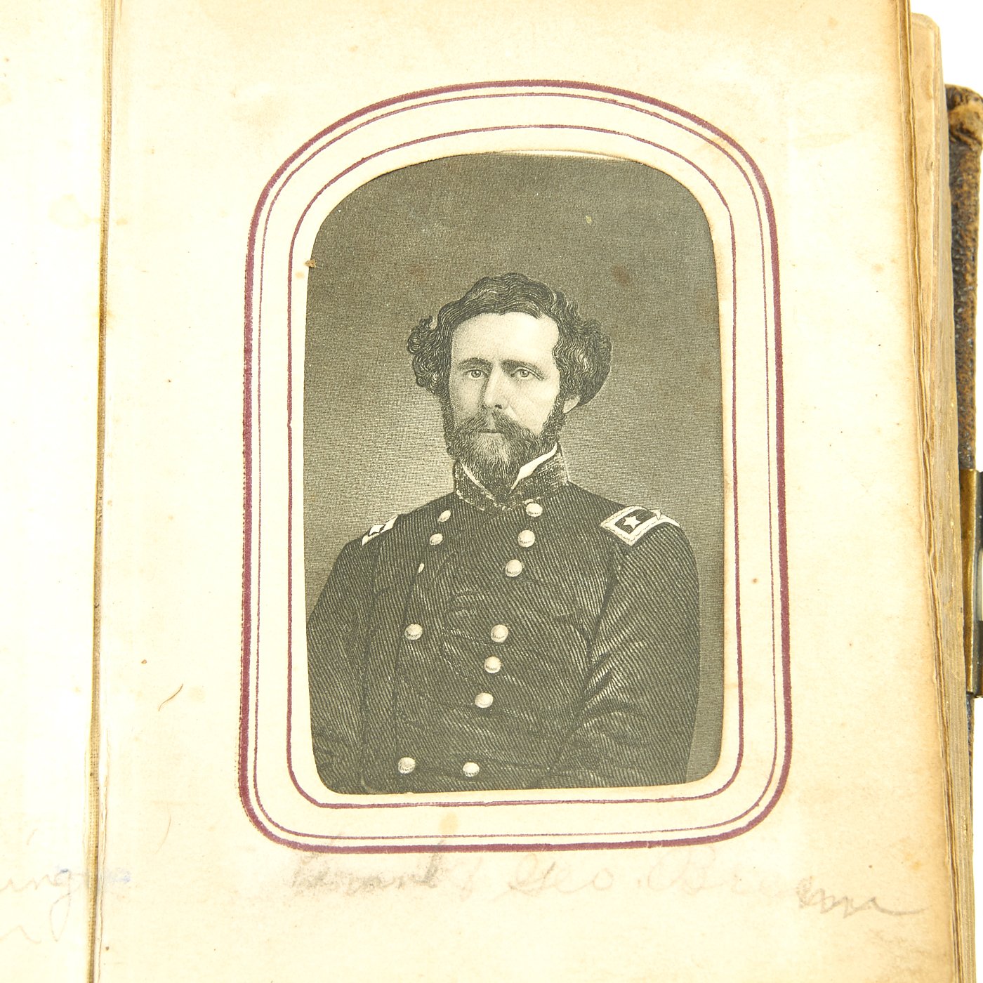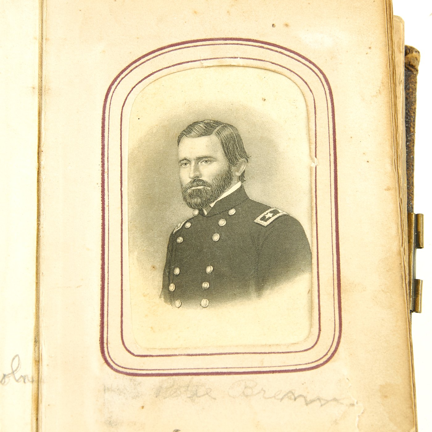- Original Item: Only One Available. This is a fascinating large photo album from the United States Civil War. It features approximately 50 1860s era photographs all with Photographic Studio information on the reverse sides. It features move the ten Union officers, NCOs and soldiers in uniform. There are hand written captions on the pages of many photographs with names, locations and relationships. Overall condition of the album is good, it is still holding together but the binding is worn and delicate. A fascinating step back in history to the greatest conflict in the American past.
