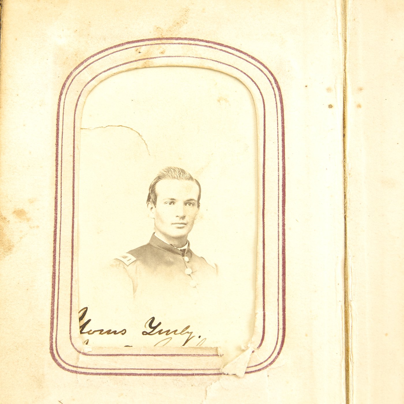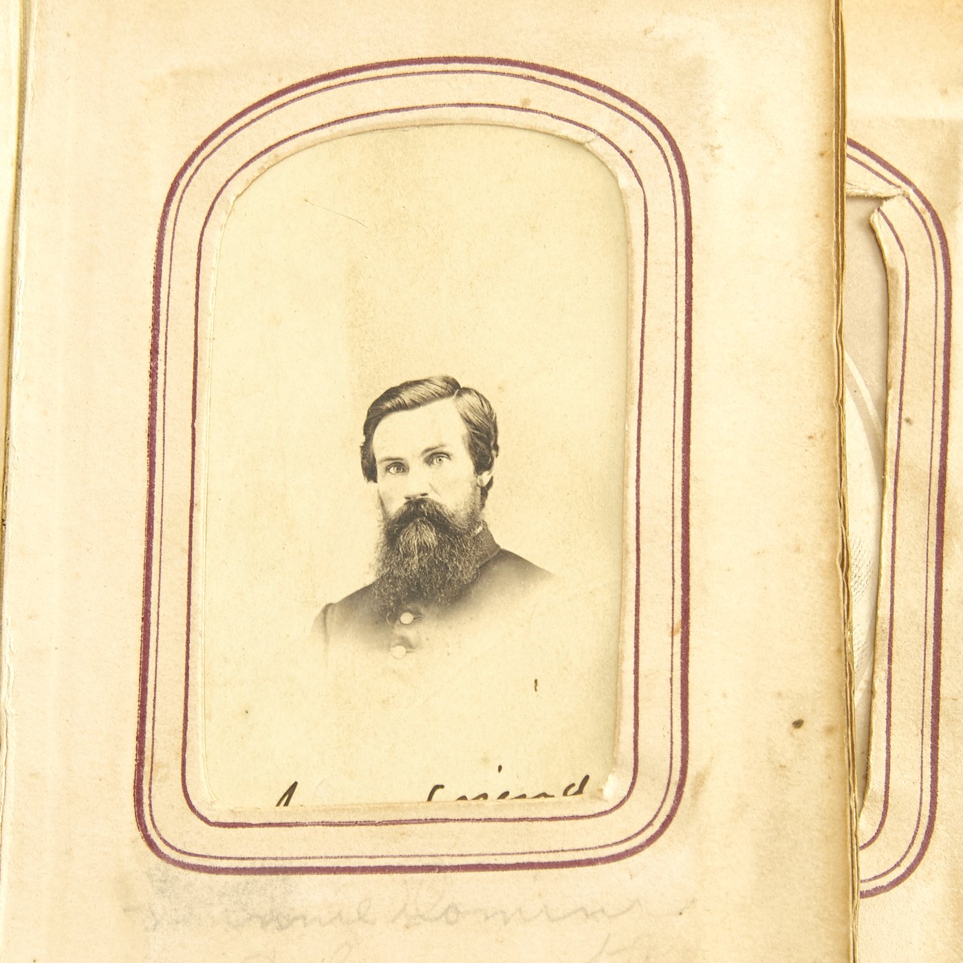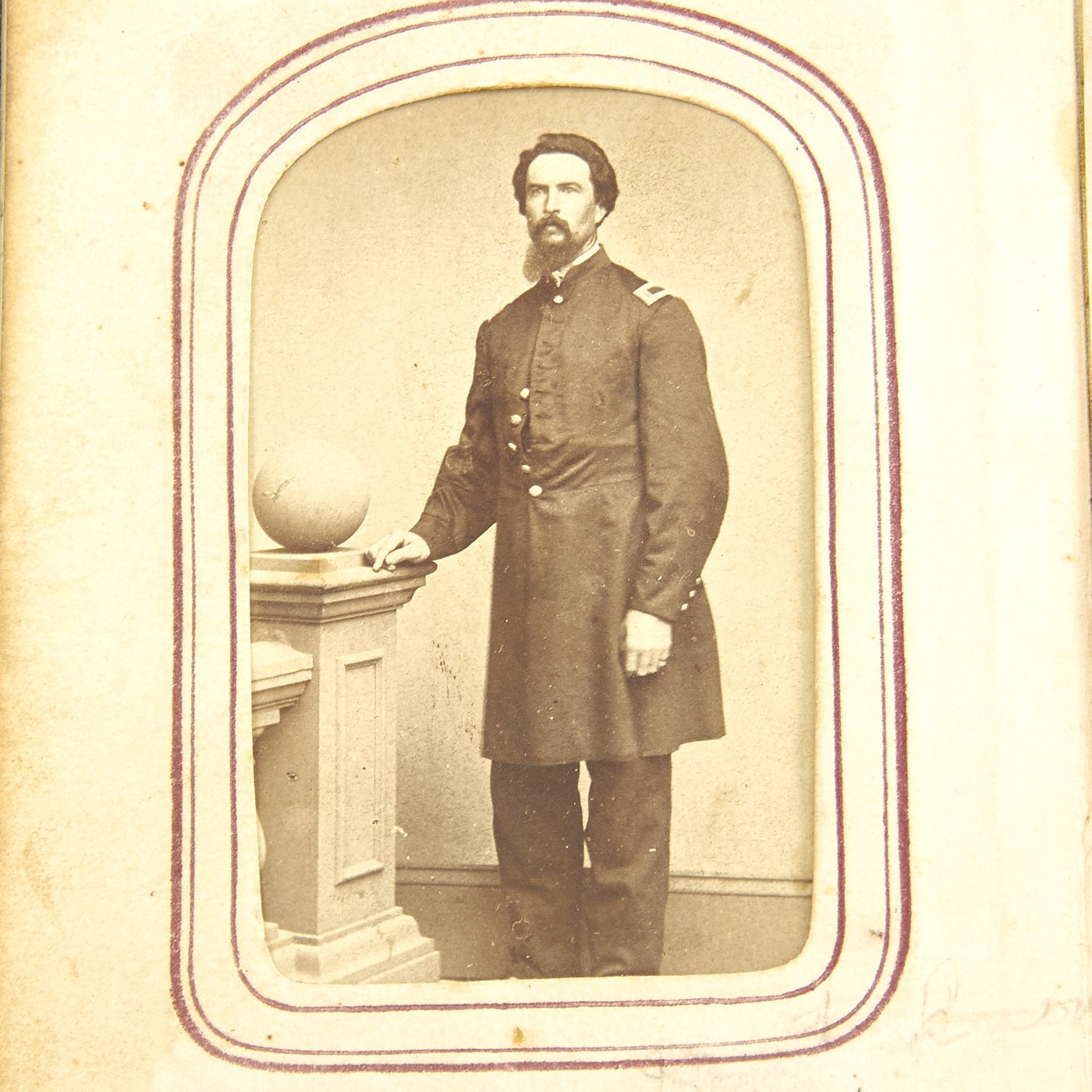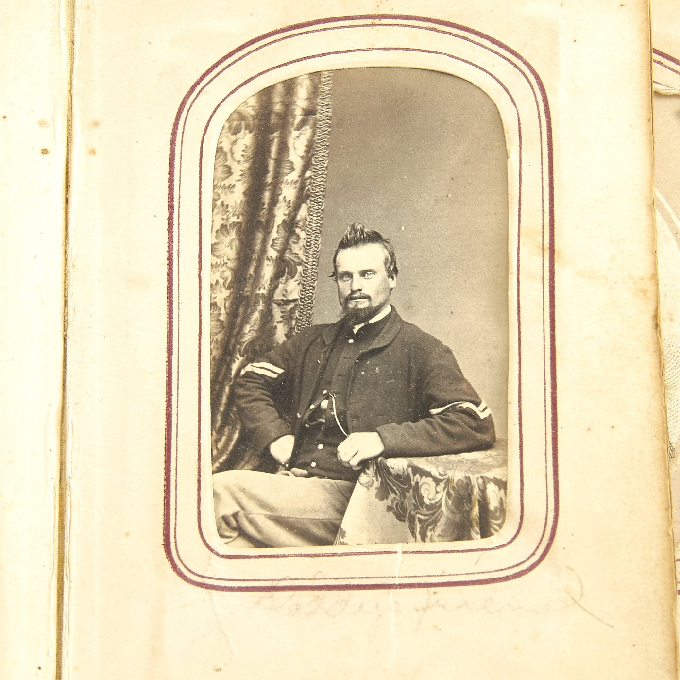 - Original Item: Only One Available. This is a fascinating large photo album from the United States Civil War. It features approximately 50 1860s era photographs all with Photographic Studio information on the reverse sides. It features move the ten Union officers, NCOs and soldiers in uniform. There are hand written captions on the pages of many photographs with names, locations and relationships. Overall condition of the album is good, it is still holding together but the binding is worn and delicate. A fascinating step back in history to the greatest conflict in the American past.