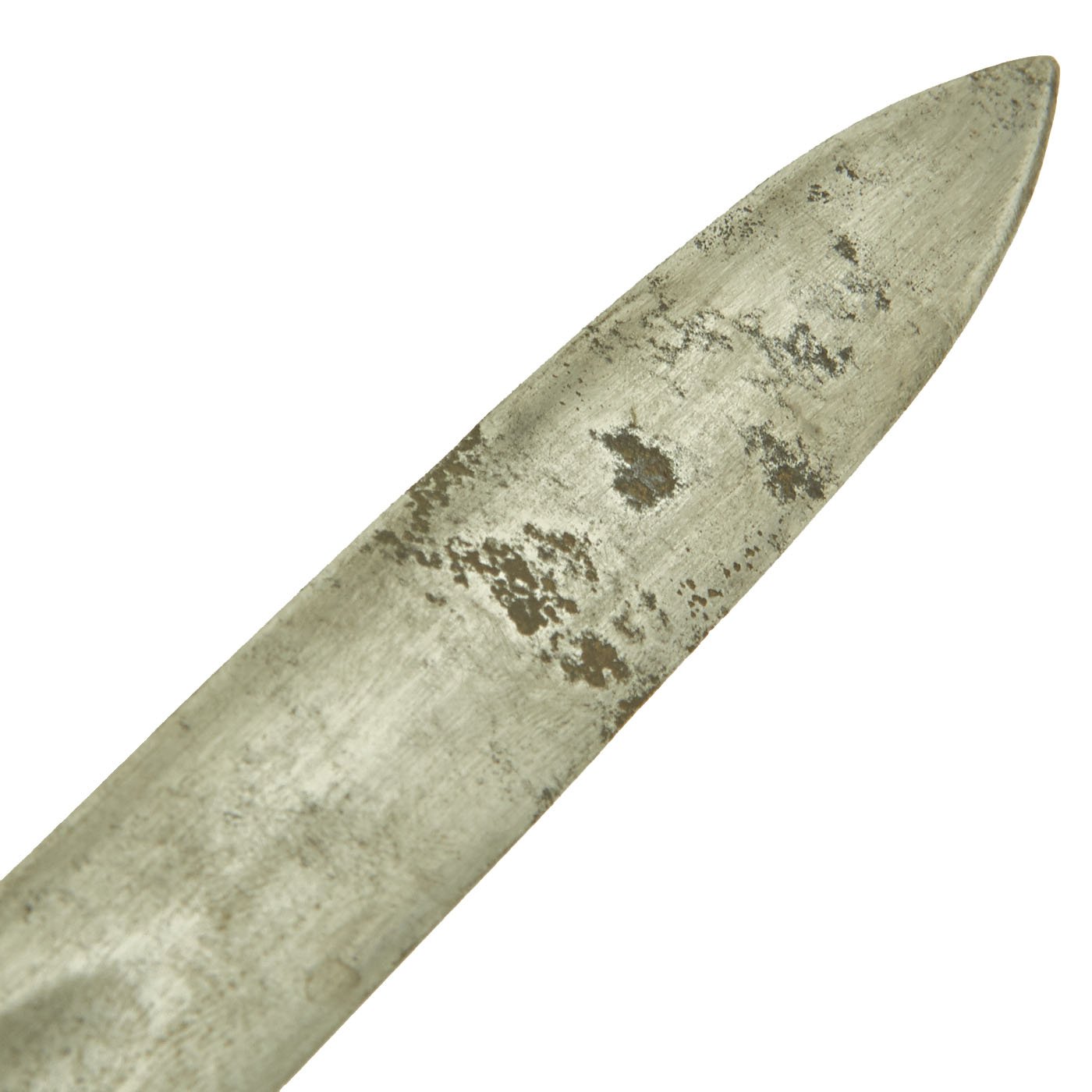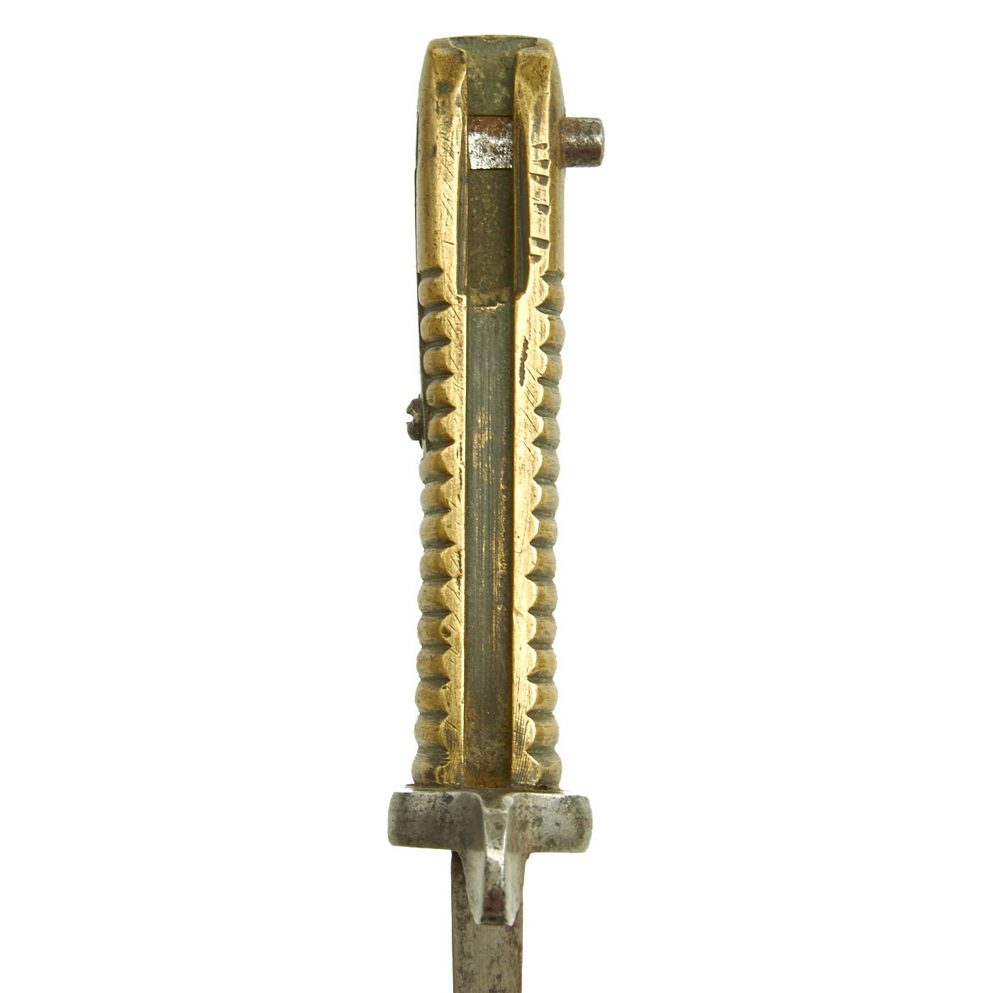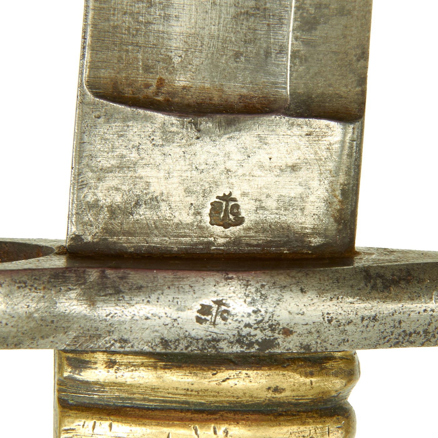 Unlike most that we have seen, our example still has the original full length 24" blade. Many of these were deliberately shortened to about 18" because it was claimed to be too unwieldy in combat, especially when attached to the rifle, but this example has not been. It is well marked and in very good condition, with an overall length of 29 inches.