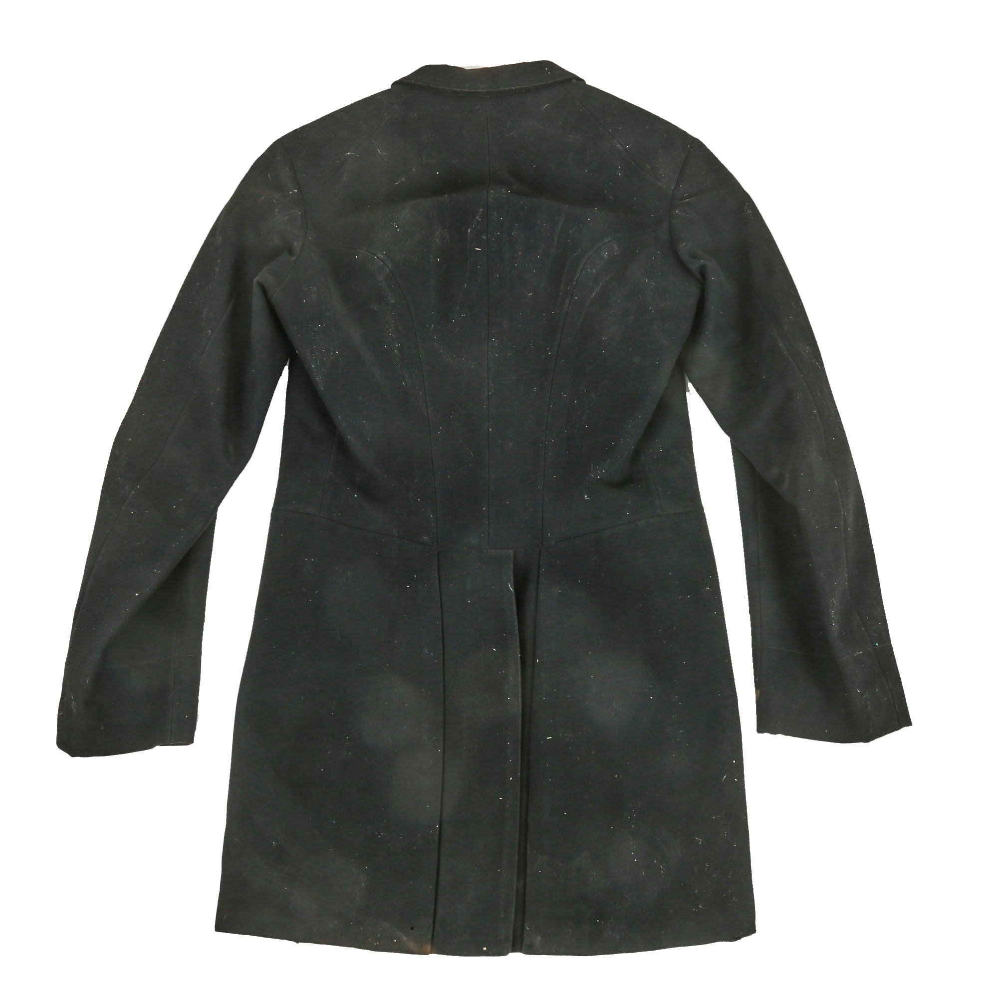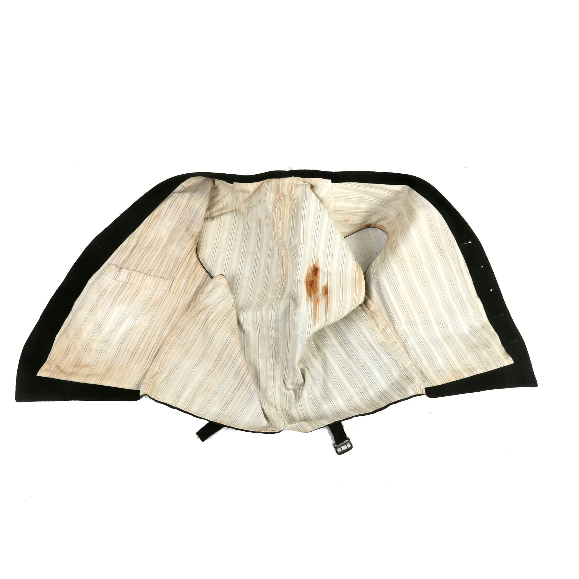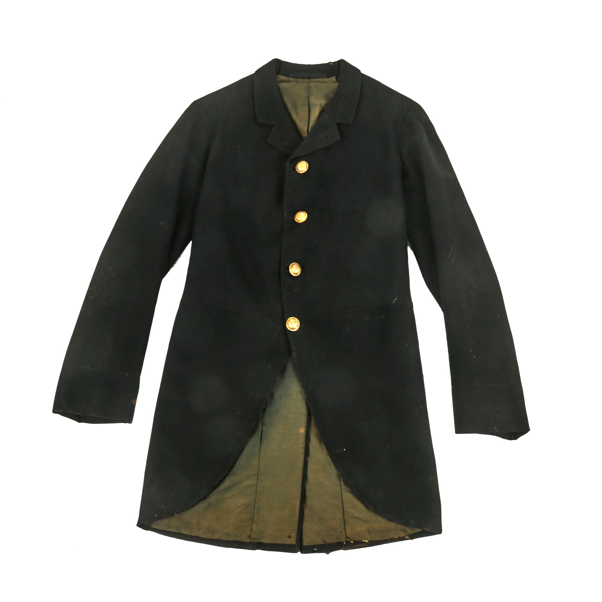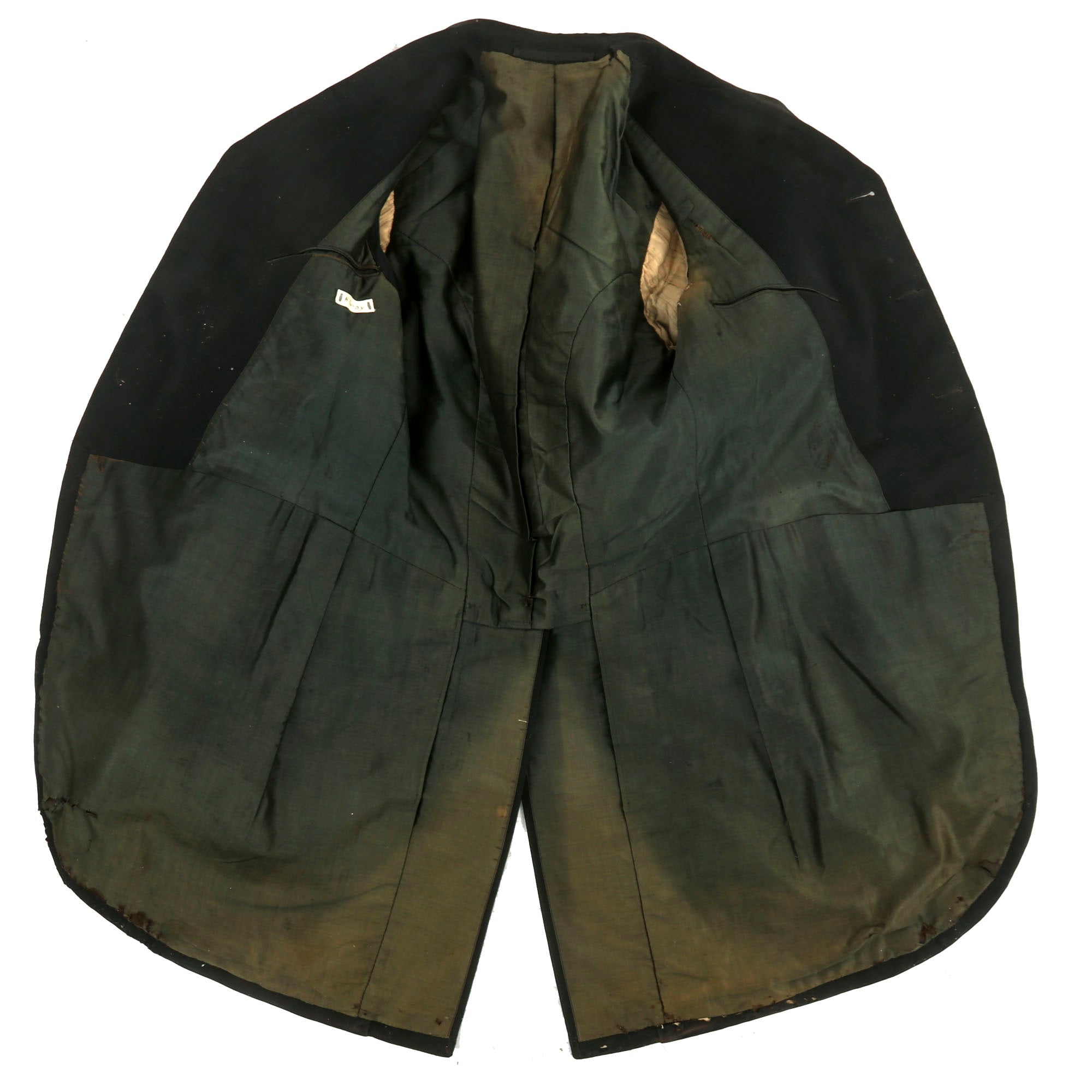 The jacket has four large GAR buttons to the front, with a heavily sweat-stained interior lining. There is a small tag reading H. DERBY which is how we identified the jacket. The jacket is in good shape overall and shows heavy period usage by the Civil War veteran.