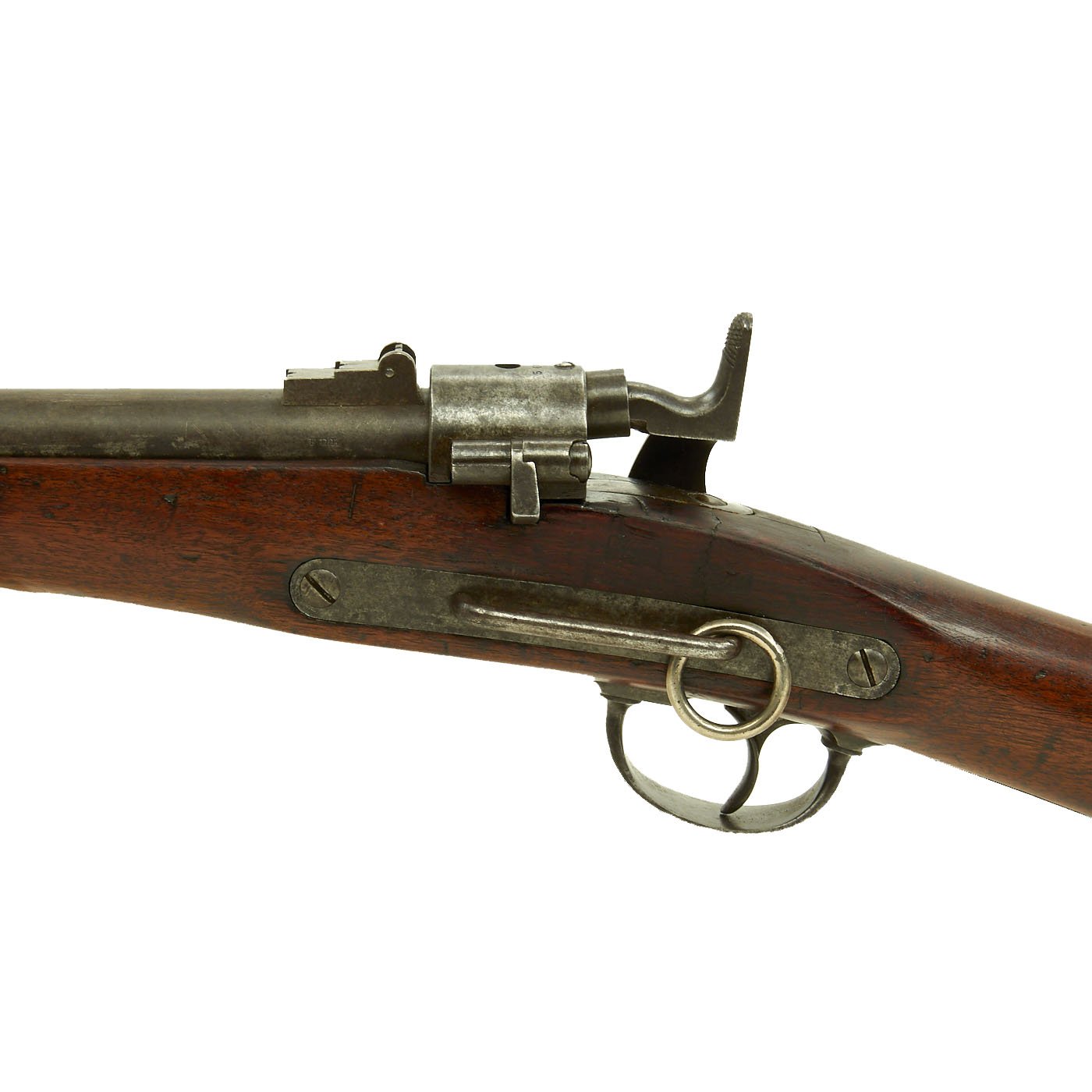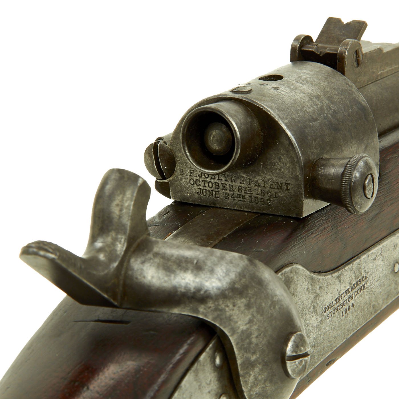 Original Item: One Only. This is a real find, and is the first example of Joslyn System firearm that we have had! Benjamin Franklin Joslyn was known as one of the most interesting gun designers during the U.S. Civil War, and he developed a series of breech-loading firearms, which were incremental improvements over each previous design. One of the last of these was the Model 1864 Carbine, which had all of the improvements developed over the years.