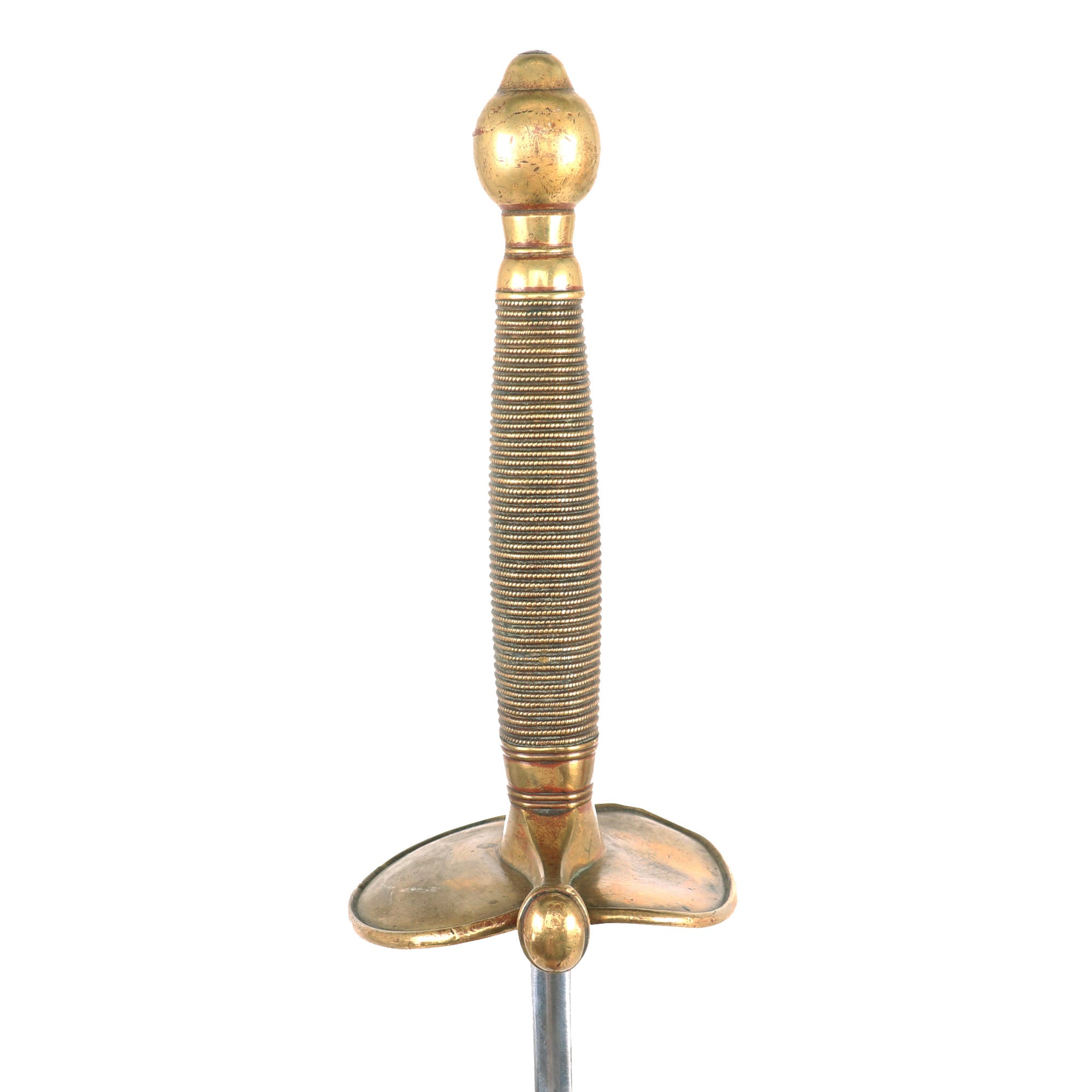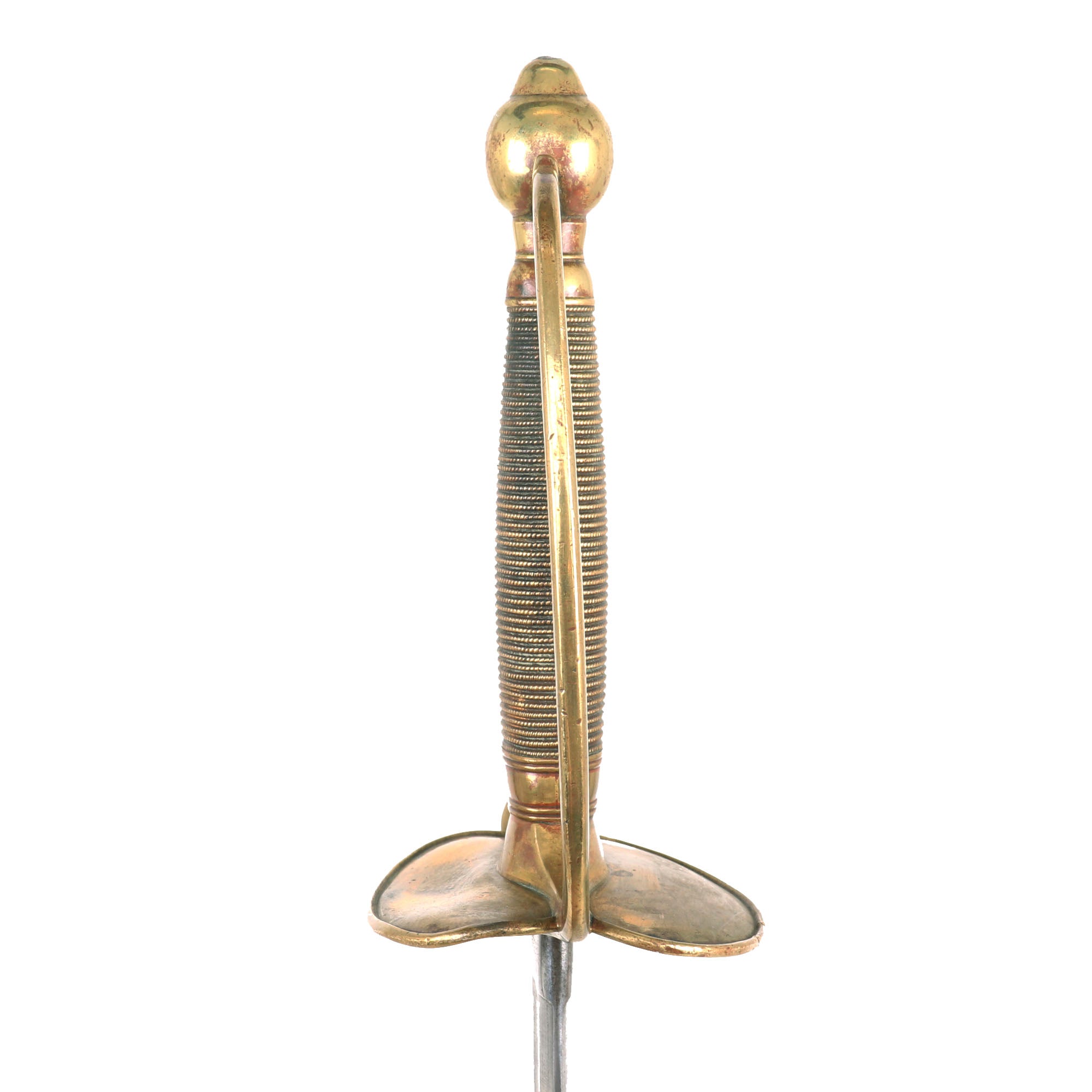 The Model 1840 noncommissioned officers' sword was adopted in 1840. Based primarily on a sword used by the French Army, the model 1840 NCO proved somewhat heavy hilted and ill balanced. For over 70 years, it was widely used by the Army; today its usage is restricted to ceremonial occasions. The sword had a 31-inch blade (some being slightly longer), a cast brass hilt resembling the more expensive wire-wrapped leather grips, and a leather scabbard rather than the steel used by cavalry troopers and officers. Although some makers, such as Emerson and Silver issued a steel scabbard rather than leather to protect from wear. Leather scabbards were phased out beginning in 1868.