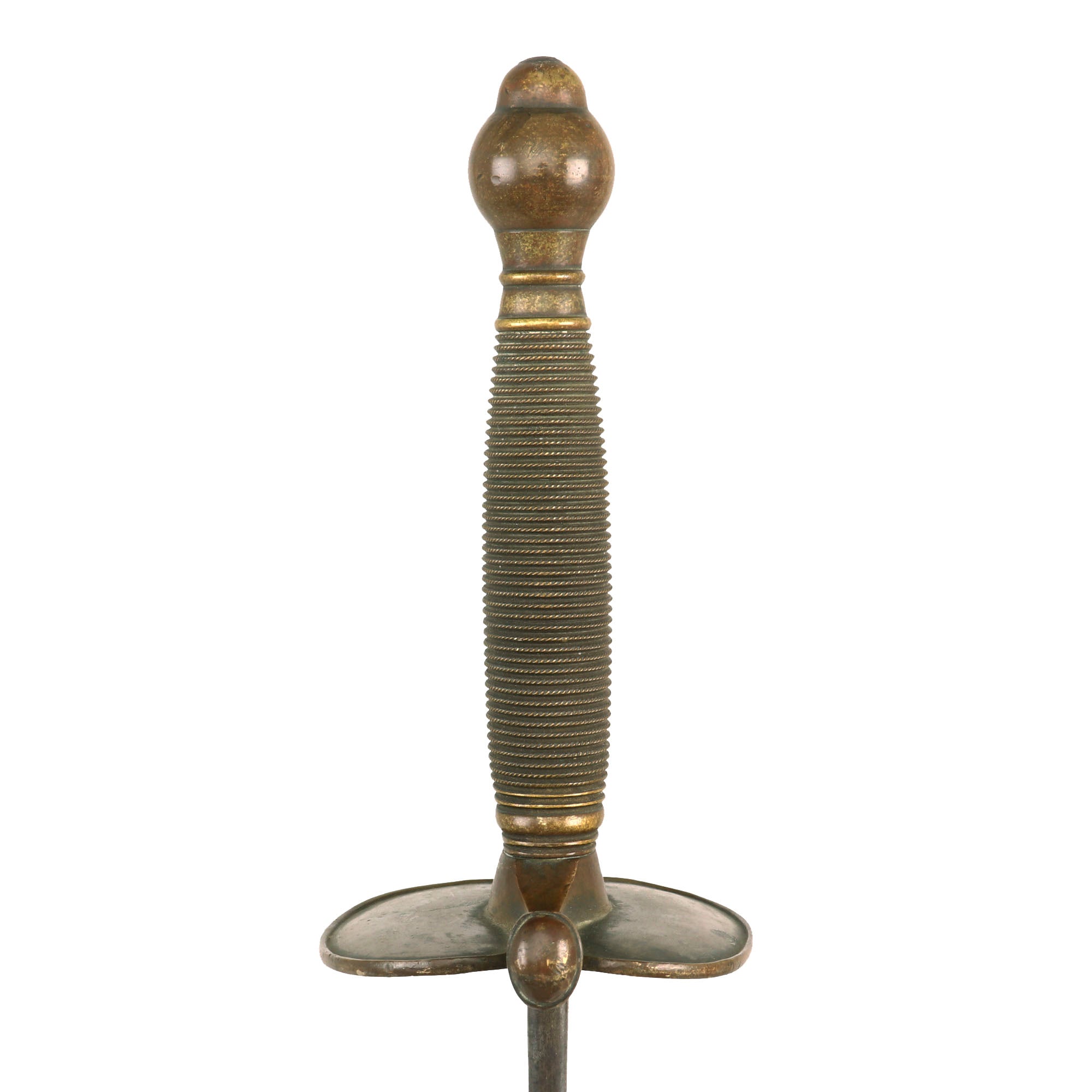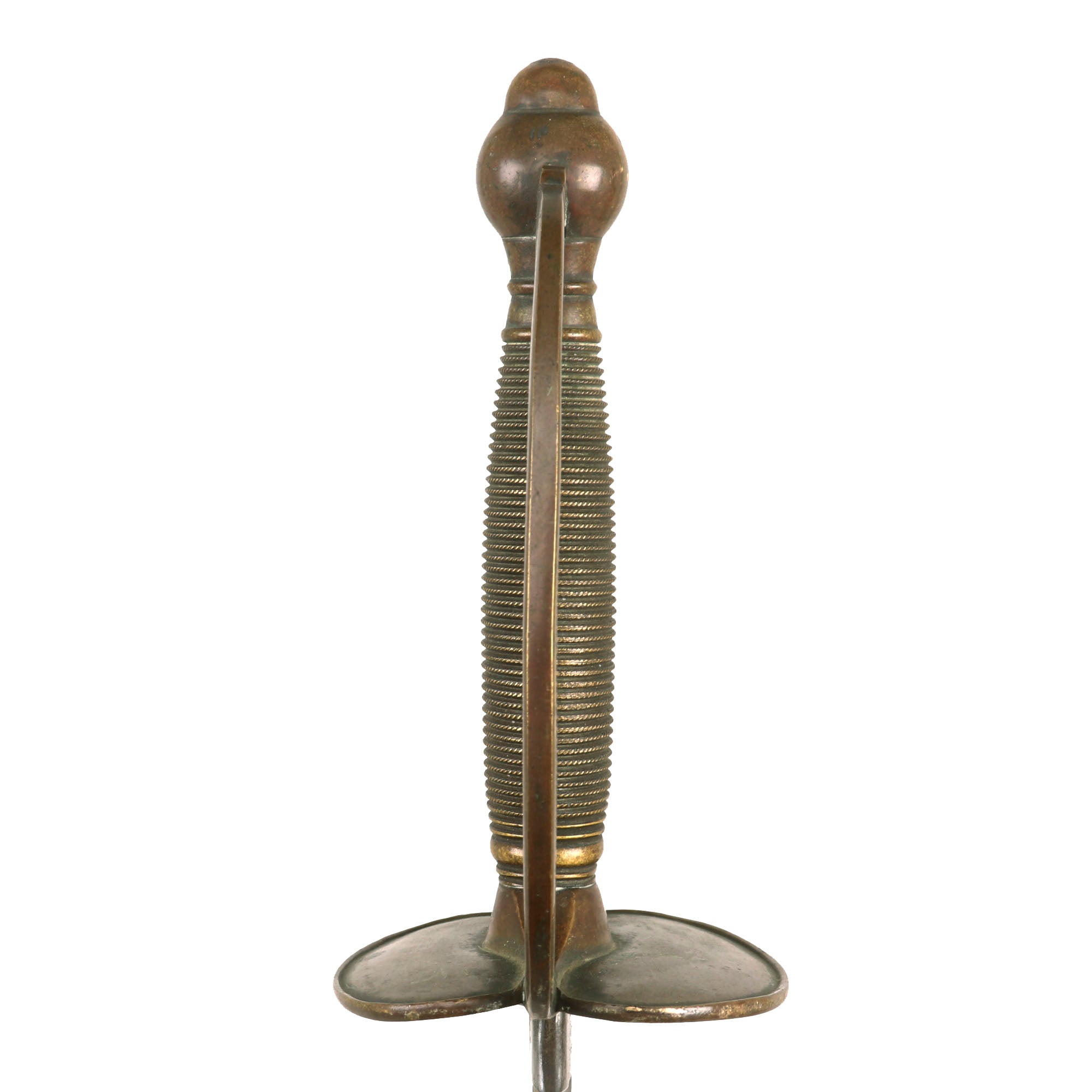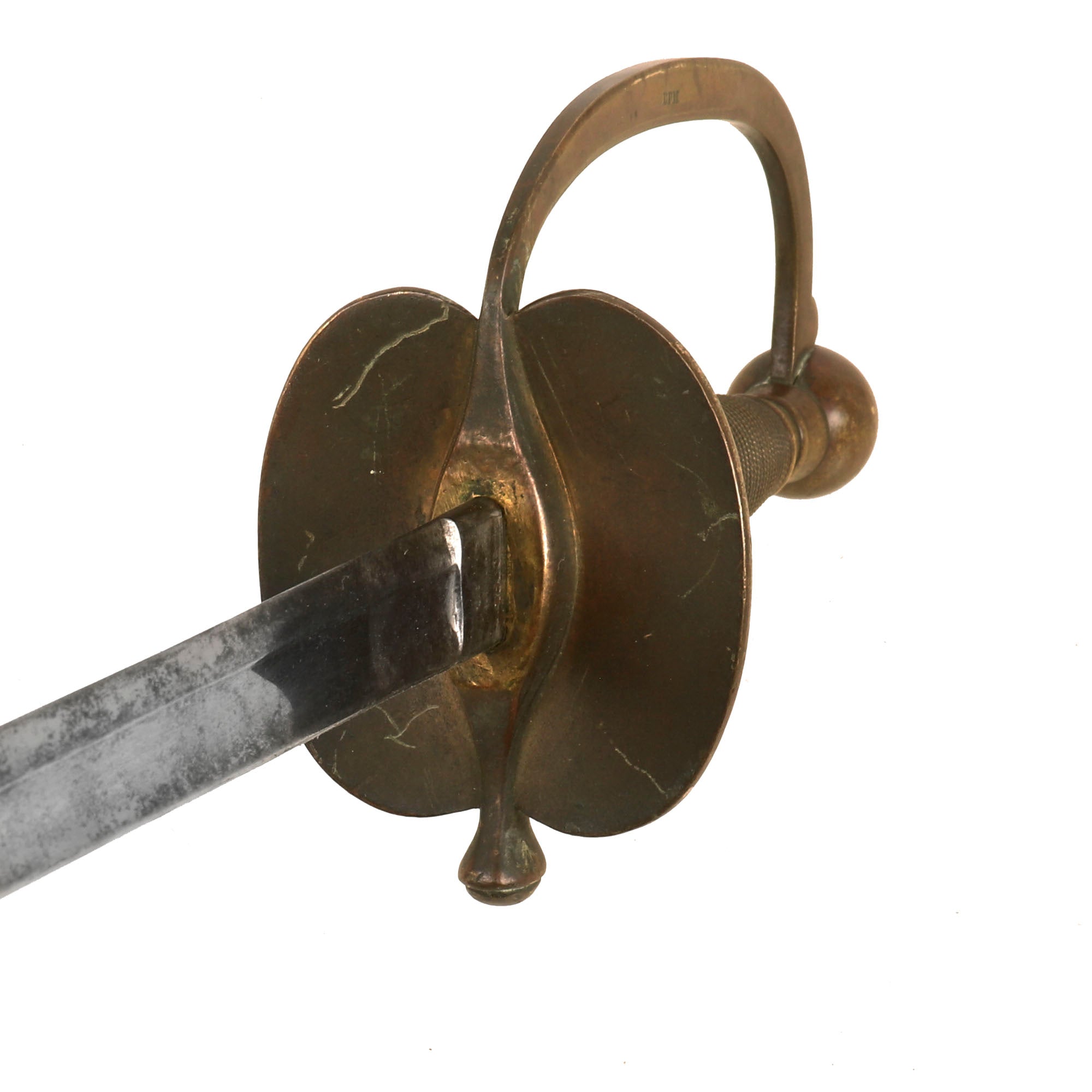 The sword is in good condition, with a lovely blade that has a good bit of wear and oxidation. The all brass handle has a lovely worn patina, with no damage or bending.