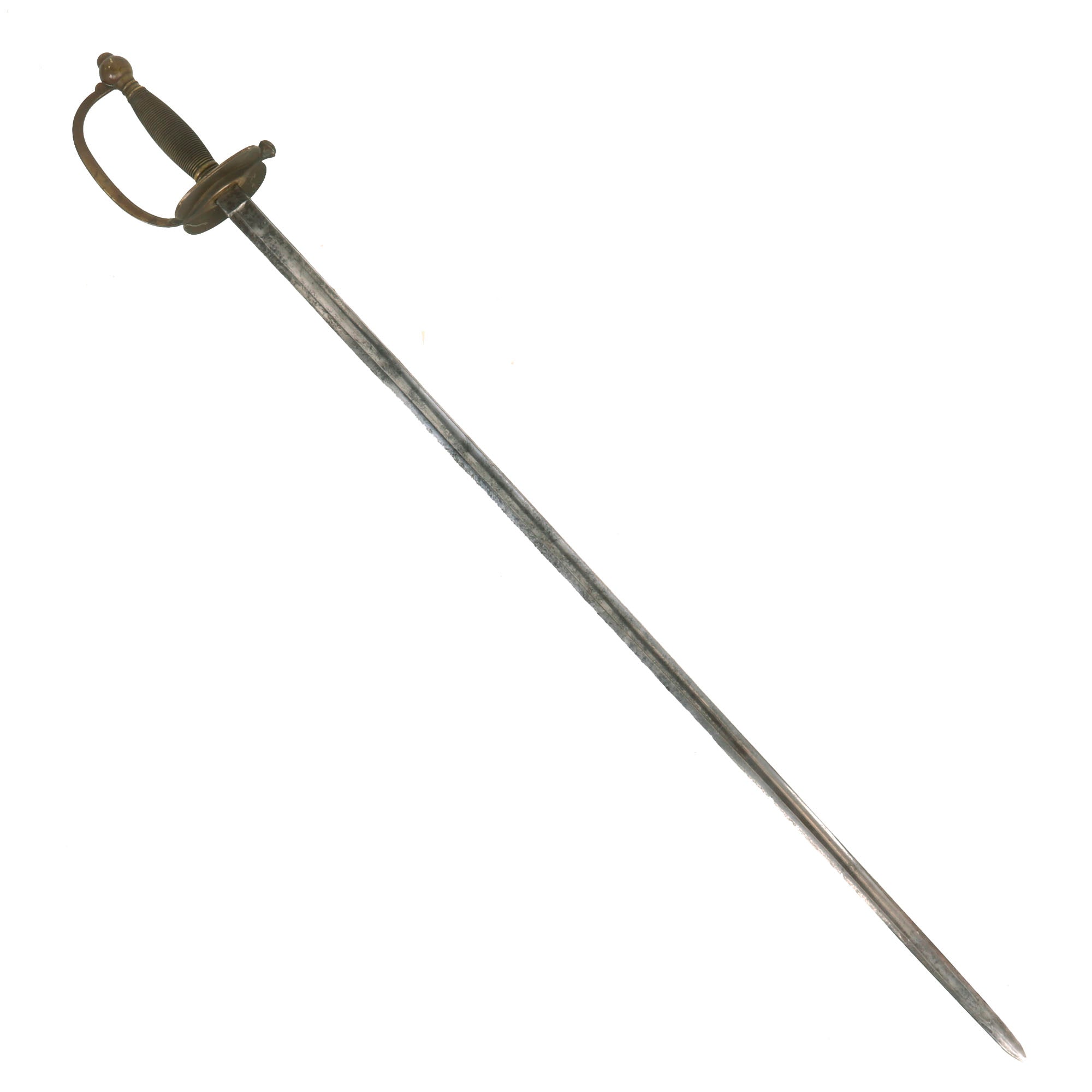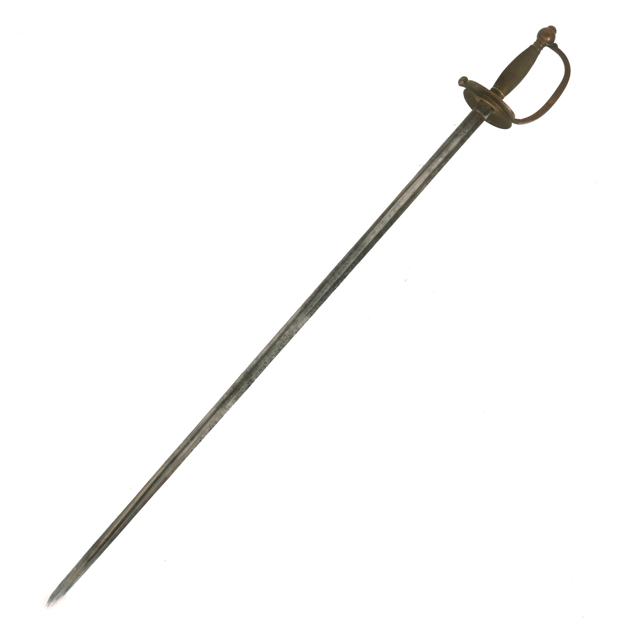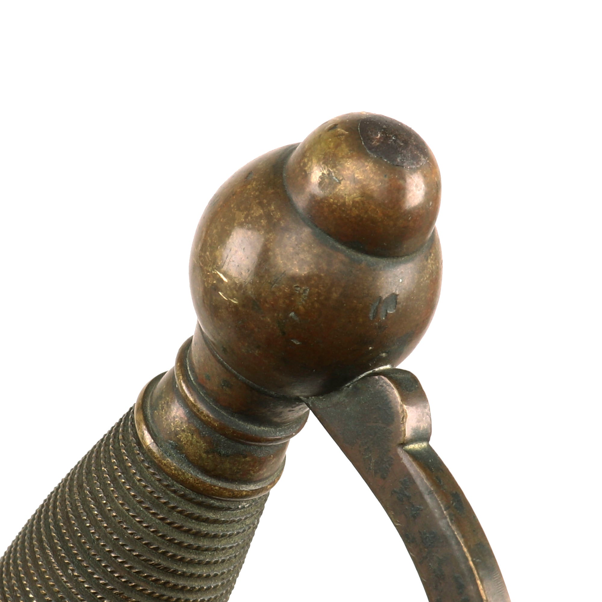The sword is in good condition, with a lovely blade that has a good bit of wear and oxidation. The all brass handle has a lovely worn patina, with no damage or bending.