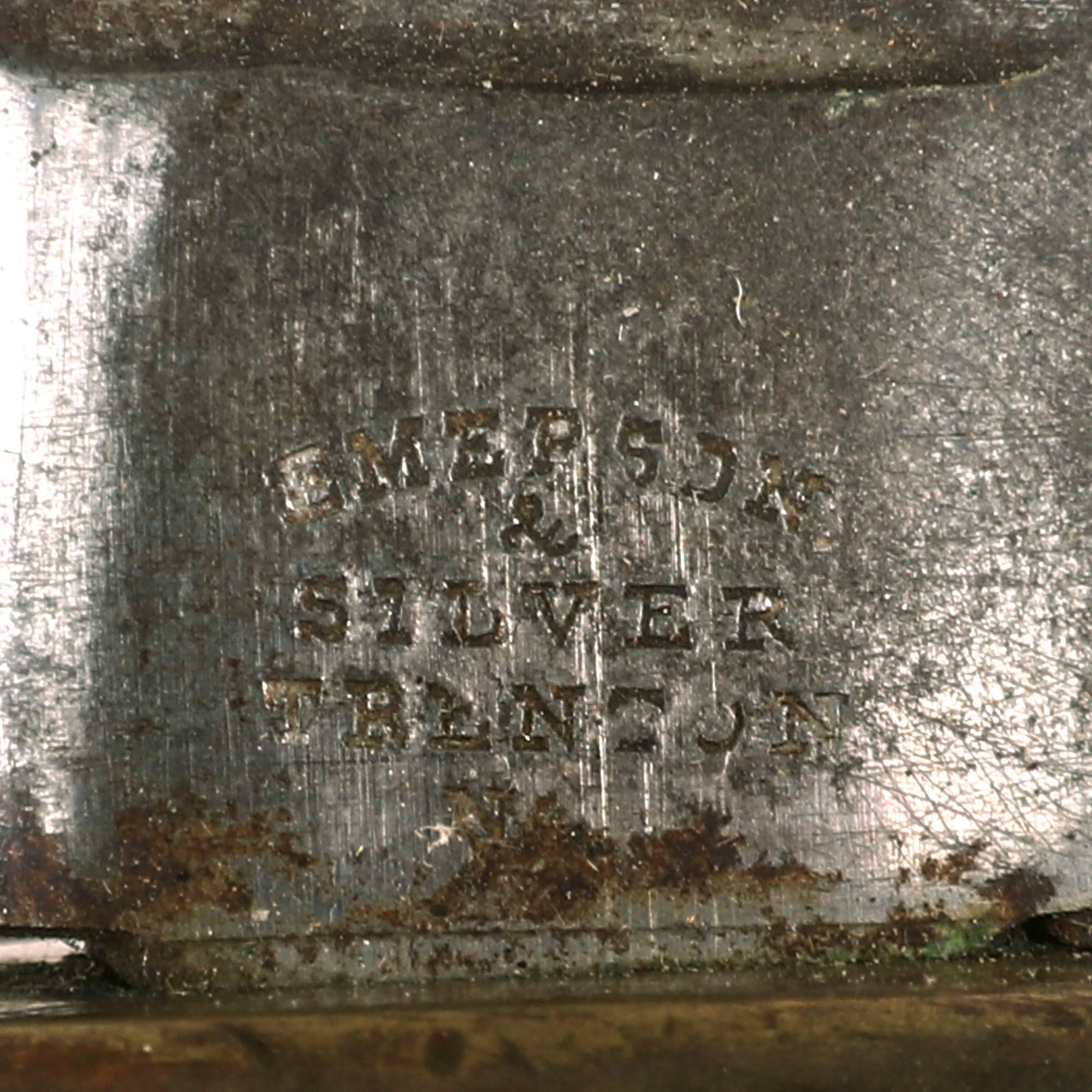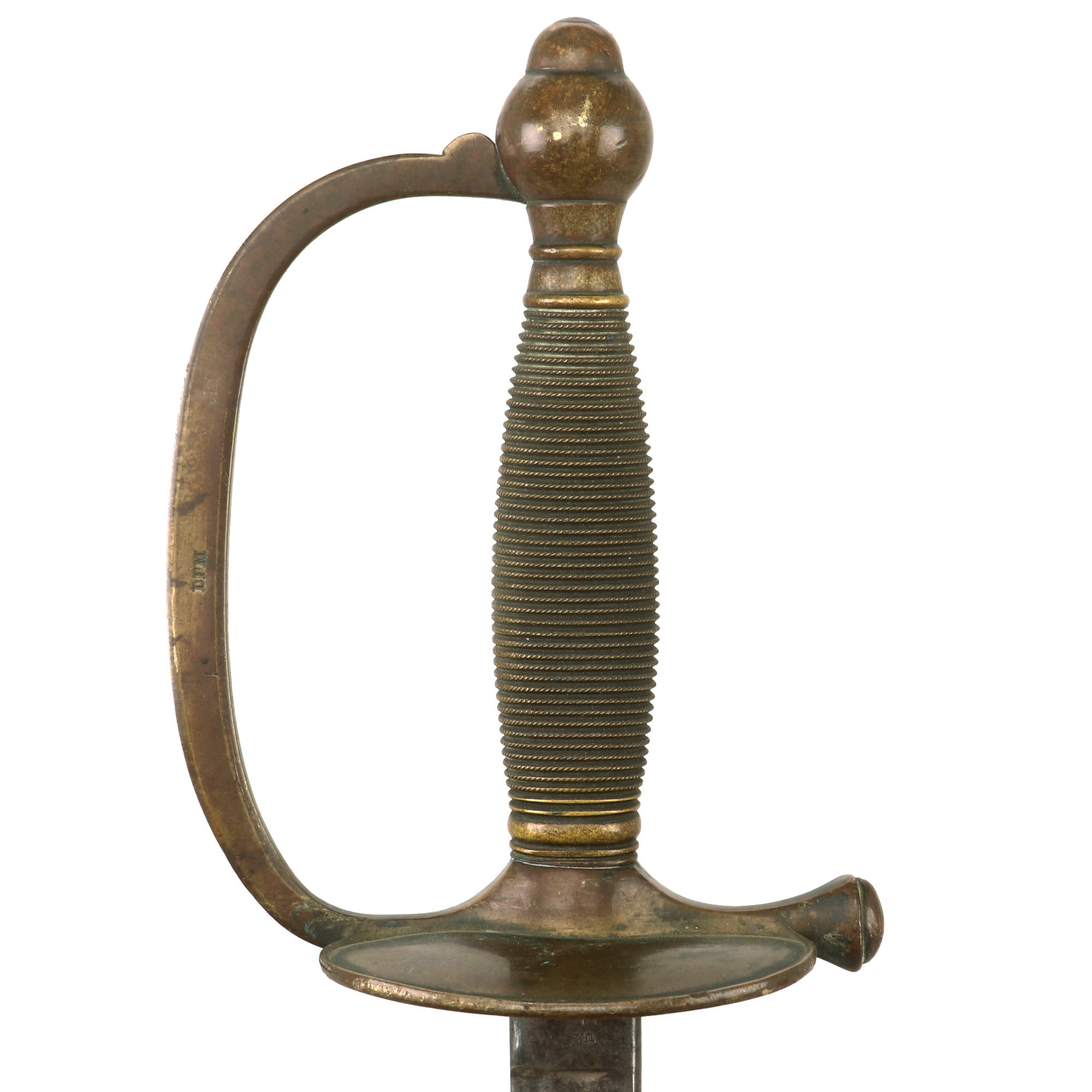 This marking indicates inspection by Dexter F. Mosman, who inspected swords at Emerson & Silver from 1862 to 1865, though his marking is only found on 1860 Cavalry Sabers in 1864. In 1863 he inspected both NCO swords such as this one, as well as Musician swords.