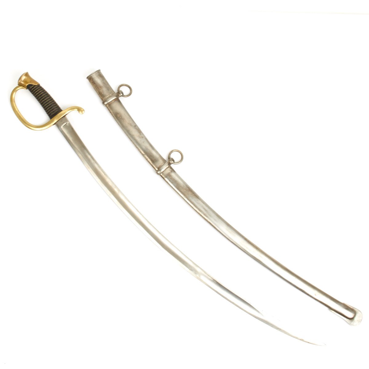 The so-called foot artillery manning the garrison guns were uniformed and equipped like their brothers in the infantry, including a useless heavy sidearm called a foot artillery short sword, which for a time in the 1830's was also regulation for infantrymen. The new horse, field, or mounted artillery were uniformed and armed like their counterparts in the cavalry or dragoons, which included these handsome, sturdy curved sabers patterned from a French design of the 1820's.