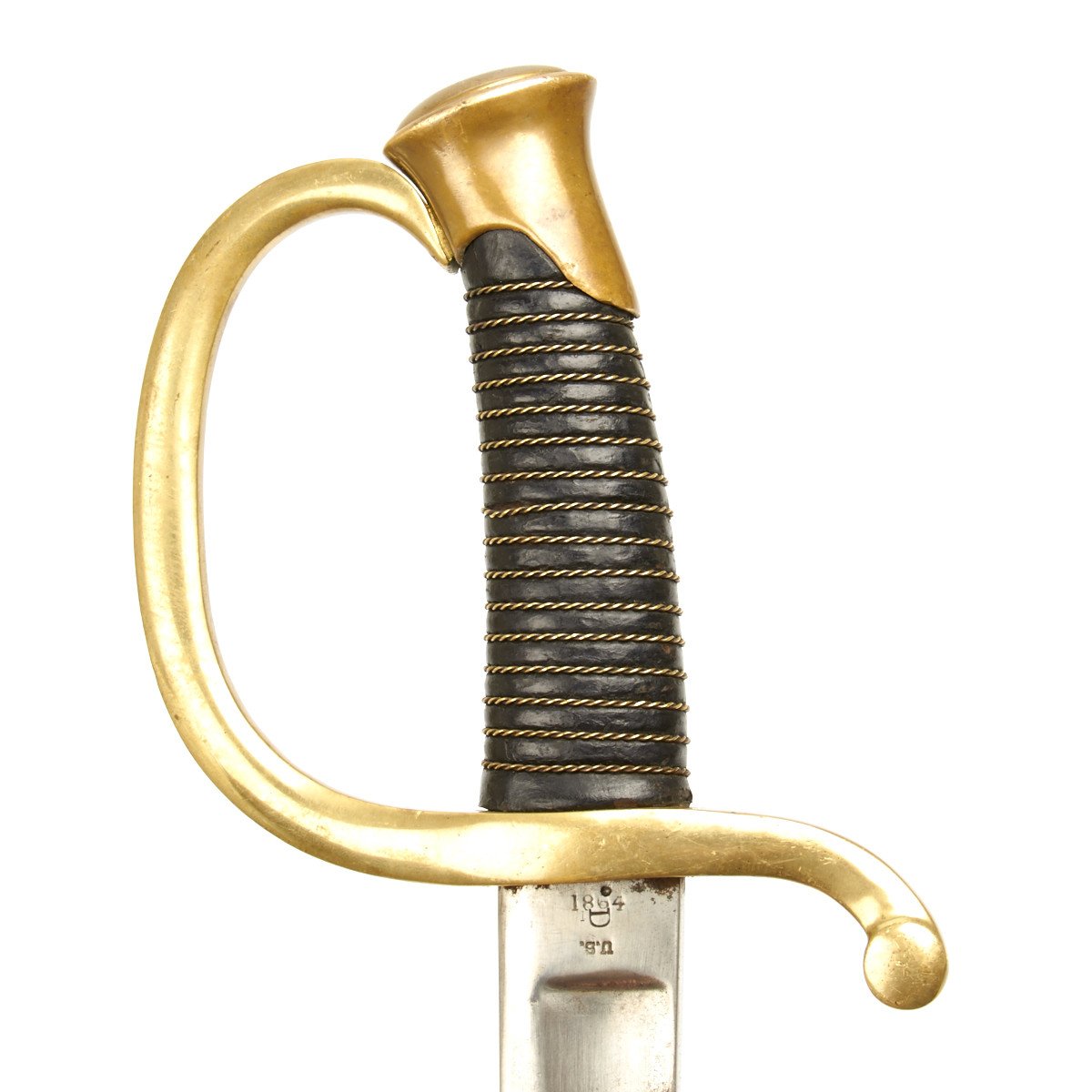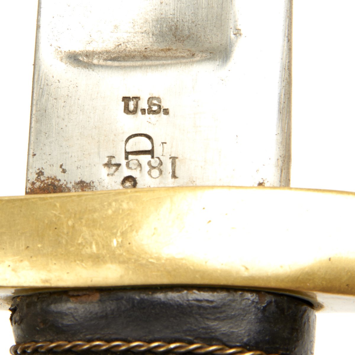 This American example is another produced by the redoubtable C. ROBY, W. CHELMSFORD, MASS., and is so marked, along with its date of manufacture, 1864, as seen below. Like with other swords and sabers, the blades were inspected first, and only after they had "passed" and been stamped with the initials of the inspecting official, then sent on to be hilted. On final acceptance, they then received the US and year of manufacture stampings, which on this example were each clearly applied separately unlike modern-day replicas and fakes.